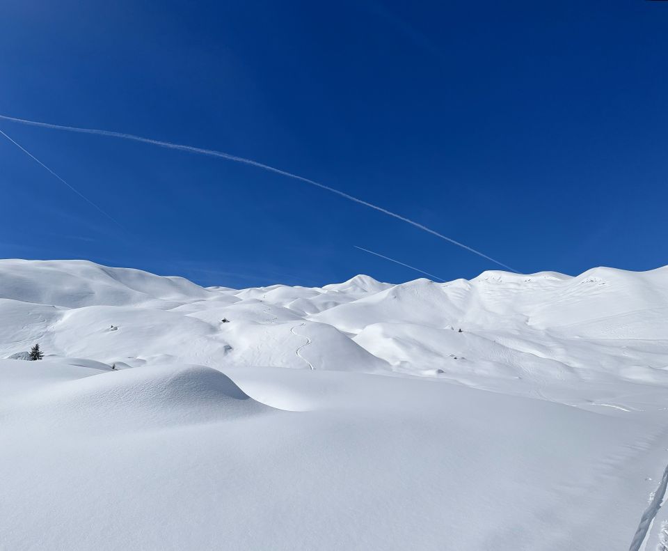 Schafberg und Rotspitz wurden auch gespurt . Noch genug Schnee im Gebiet , aber zu Warm .