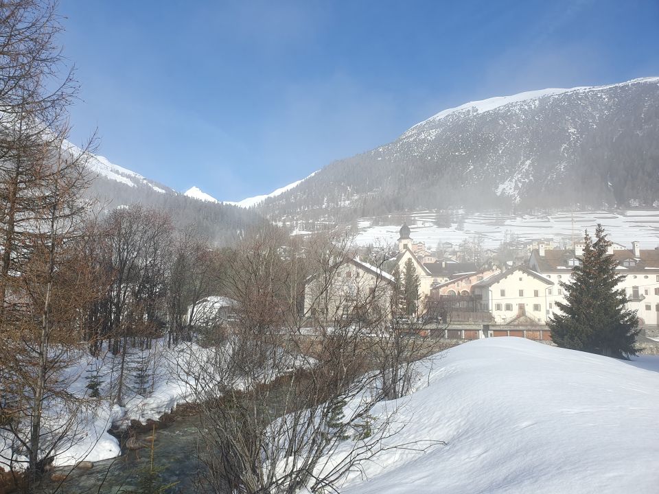 Ab Acla Chuoz habe ich die Schuhe gelockert, die Bindung auf Laufmodus umgestellt und dem wunderschönen Inn entlang bis zur vor dem Bahnhof Samedan auf Skis weitergelaufen. Hier wäre es kürzer, aber weniger schön gewesen, bei P1701 die Brücke zu nehmen und neben der Hauptstrasse nach Bever Bahnhof zu gehen.