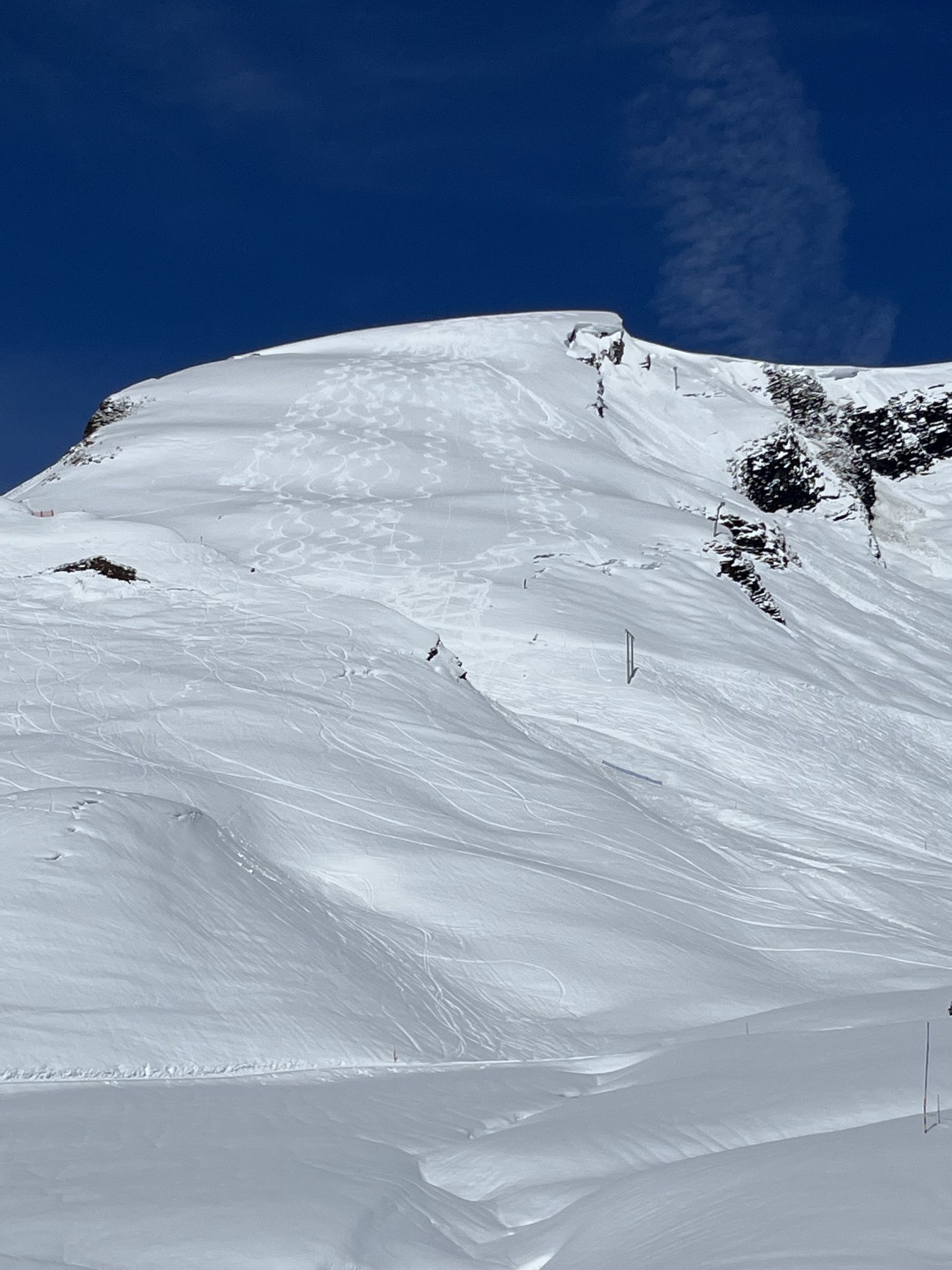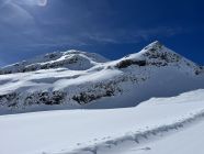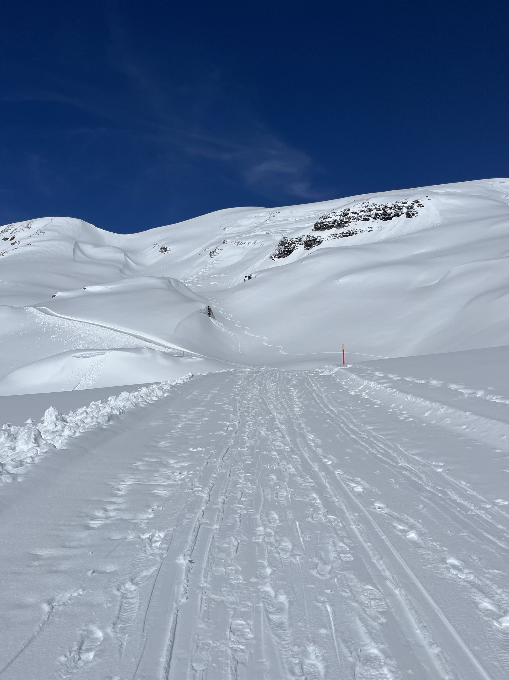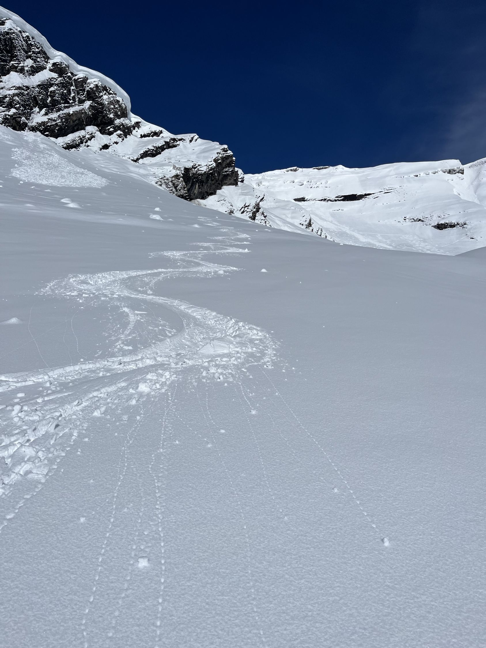Das Gebiet Richtung Faulhorn ist sehr gut eingeschneit. Neuschnee zwischen 10-20cm. Traversierend vom Oberjoch bis kurz vor die Bachalpseen ging prima. Grösstenteils Aufstieg über Schlittelweg mit wenigen Ausnahmen da kräftesparend.