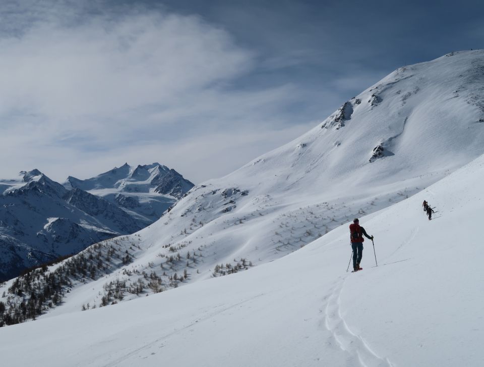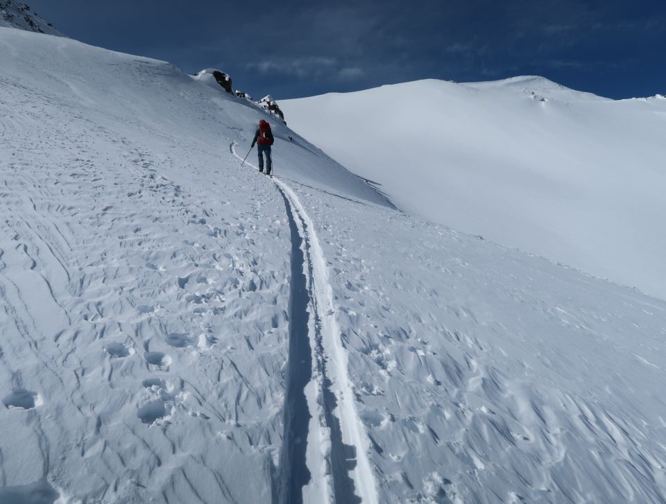 Sehr warm, im oberen Teil gut fahrbarer Pulverschnee mit Leichen Winddeckel, unterhalb 2500 m zunehmend nass