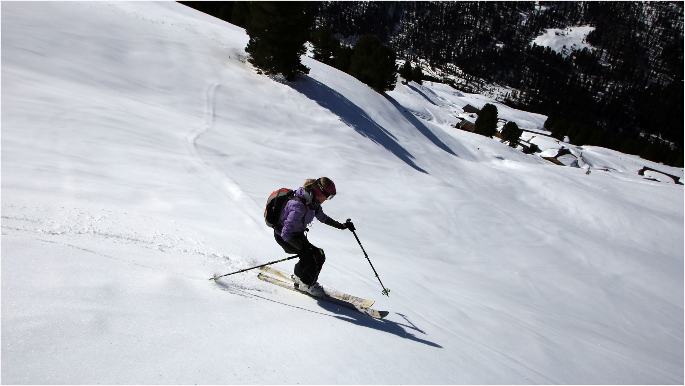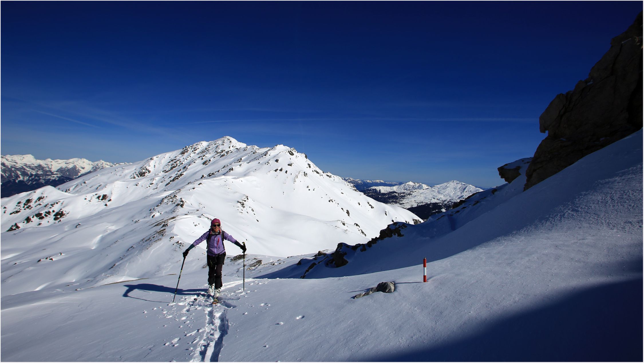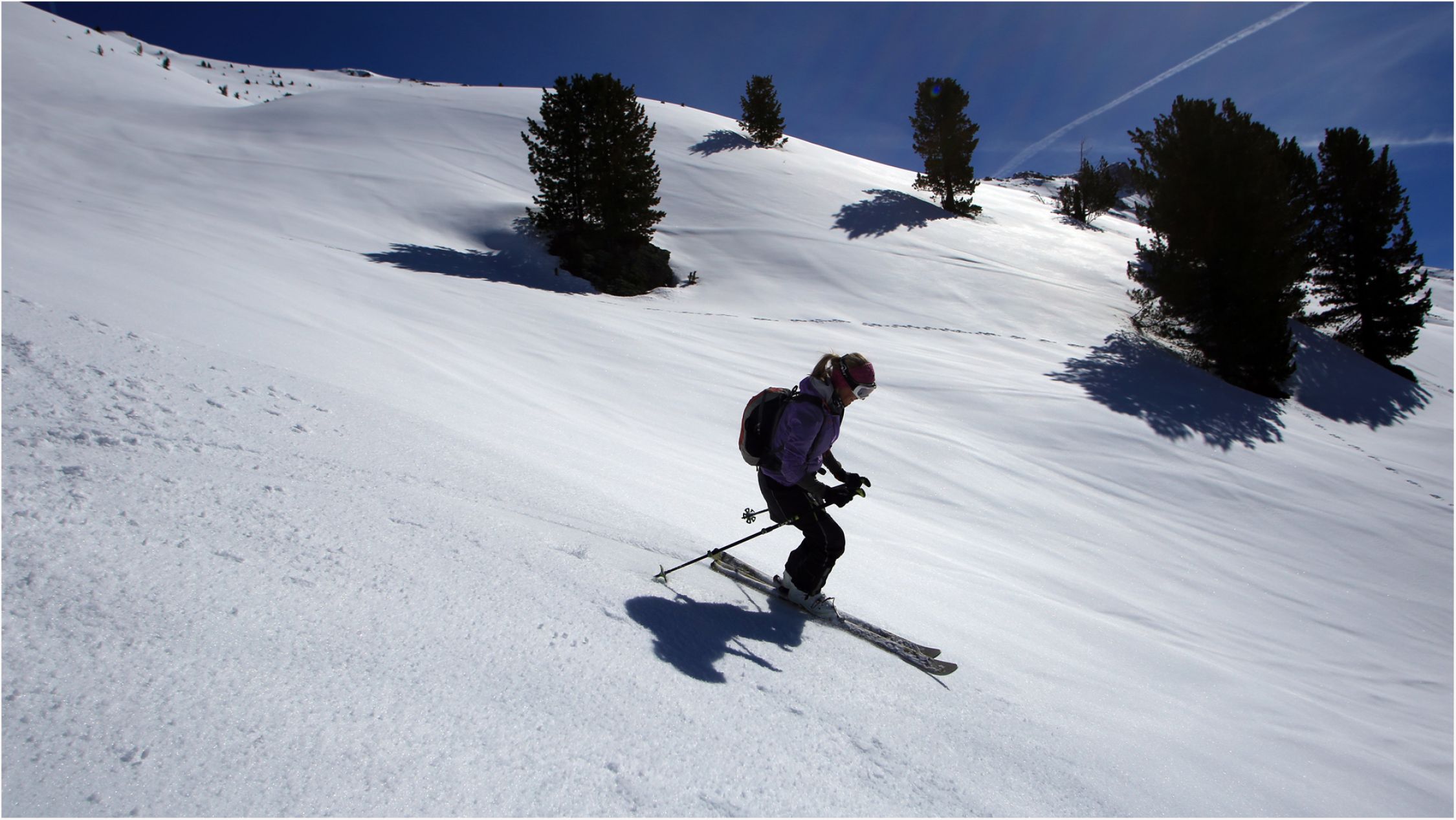 Bei der Abfahrt zum Schluss etwa 15 Minuten Ski tragen.
