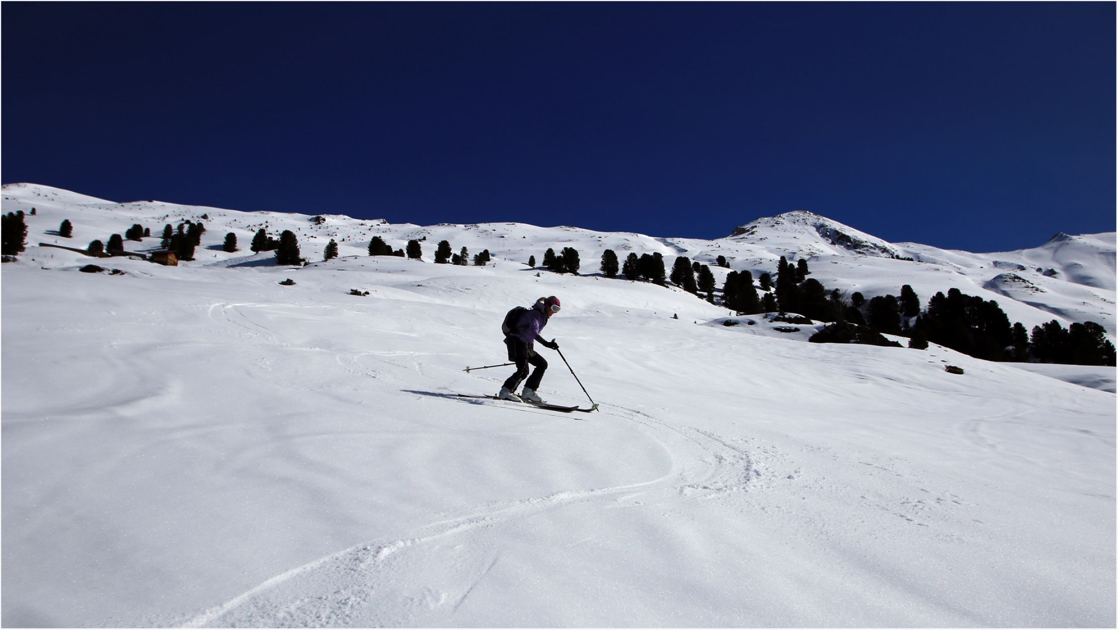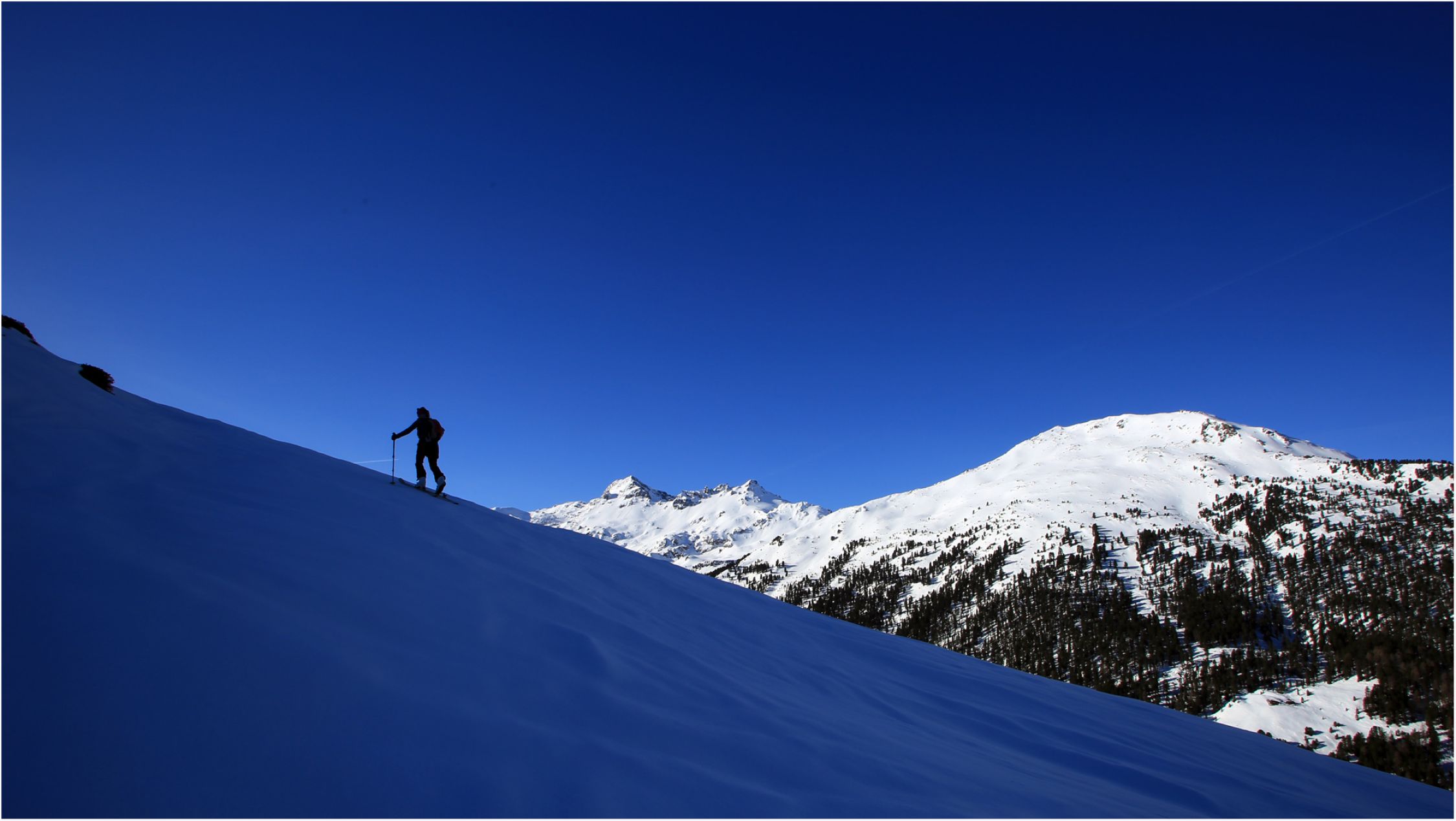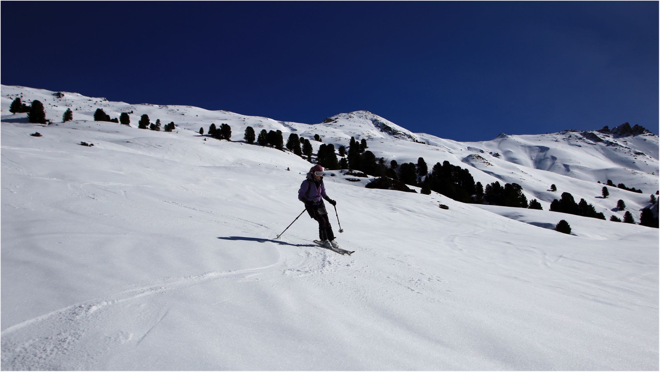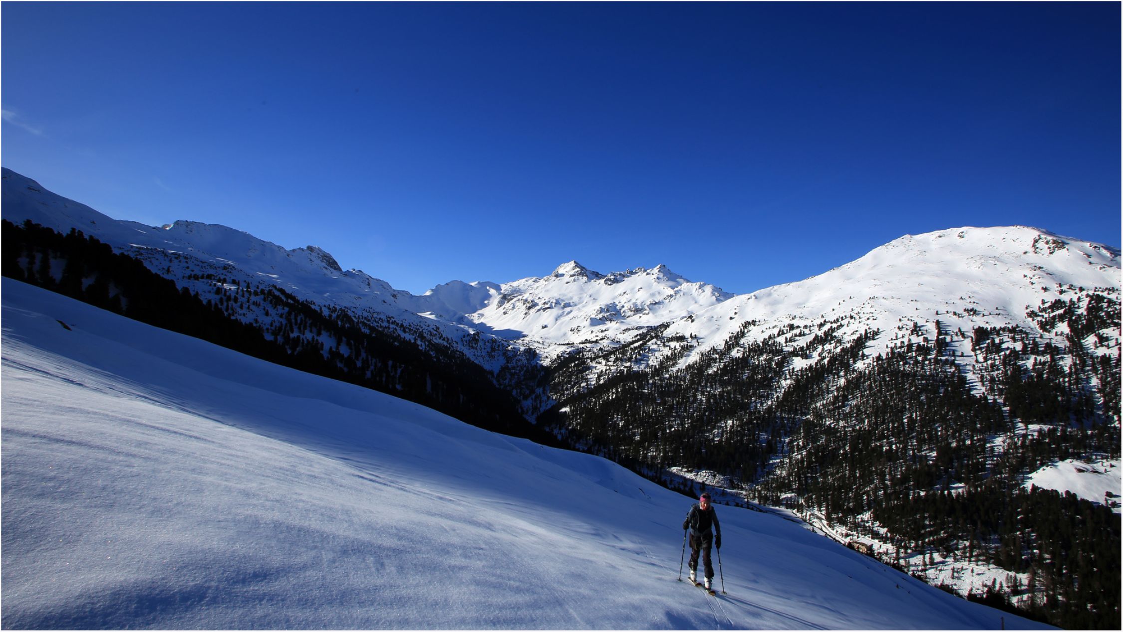 Bei der Abfahrt zum Schluss etwa 15 Minuten Ski tragen.