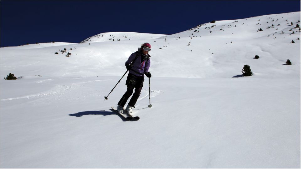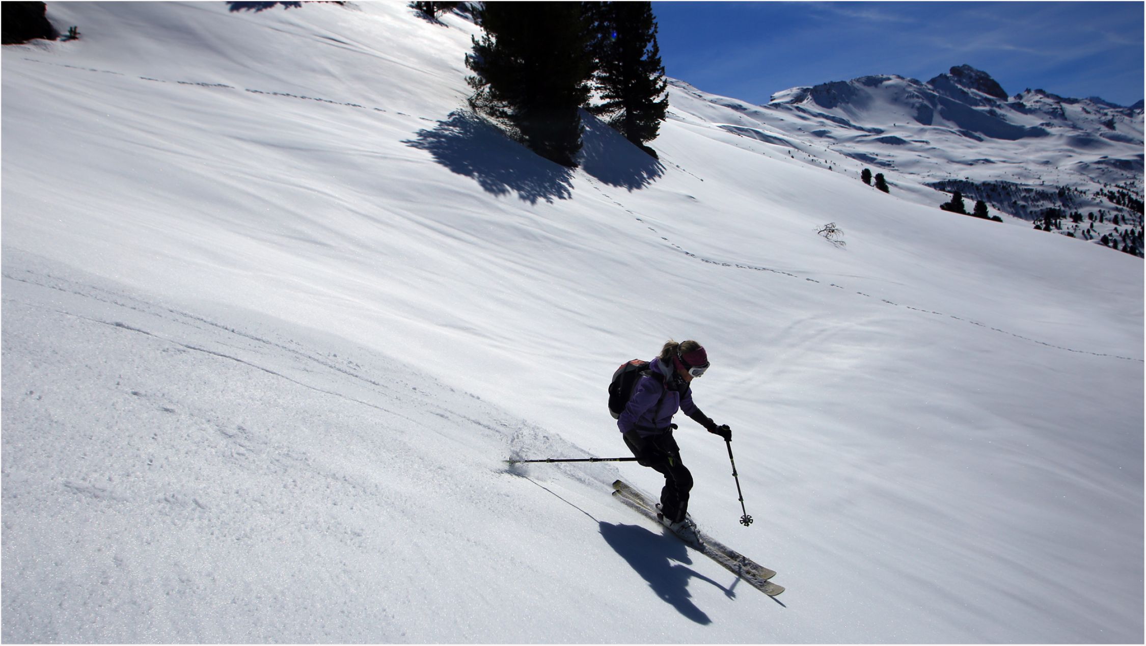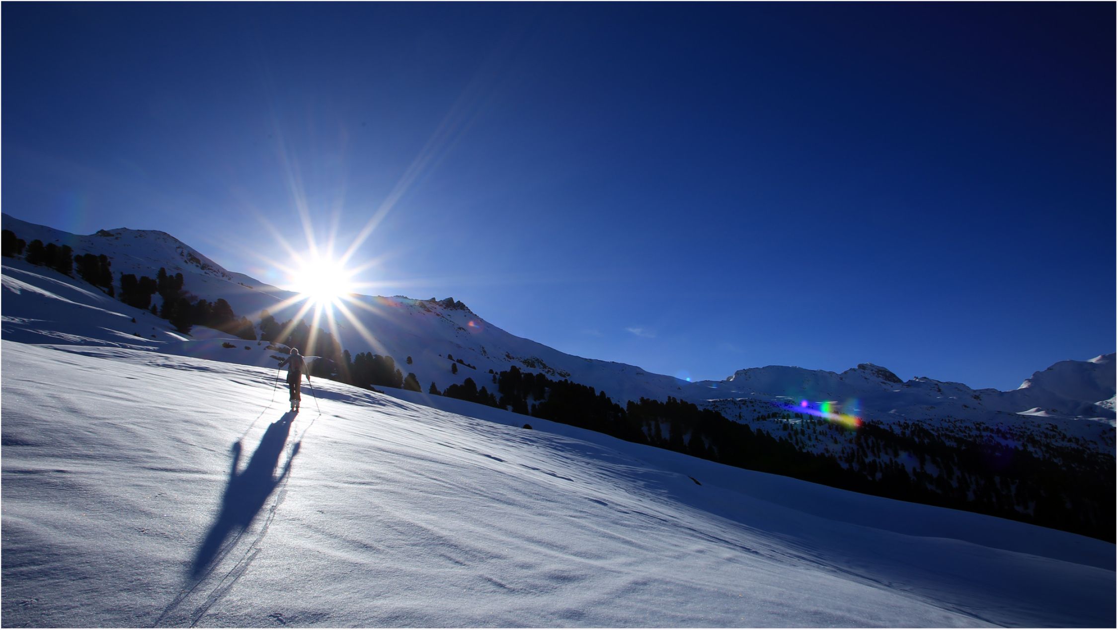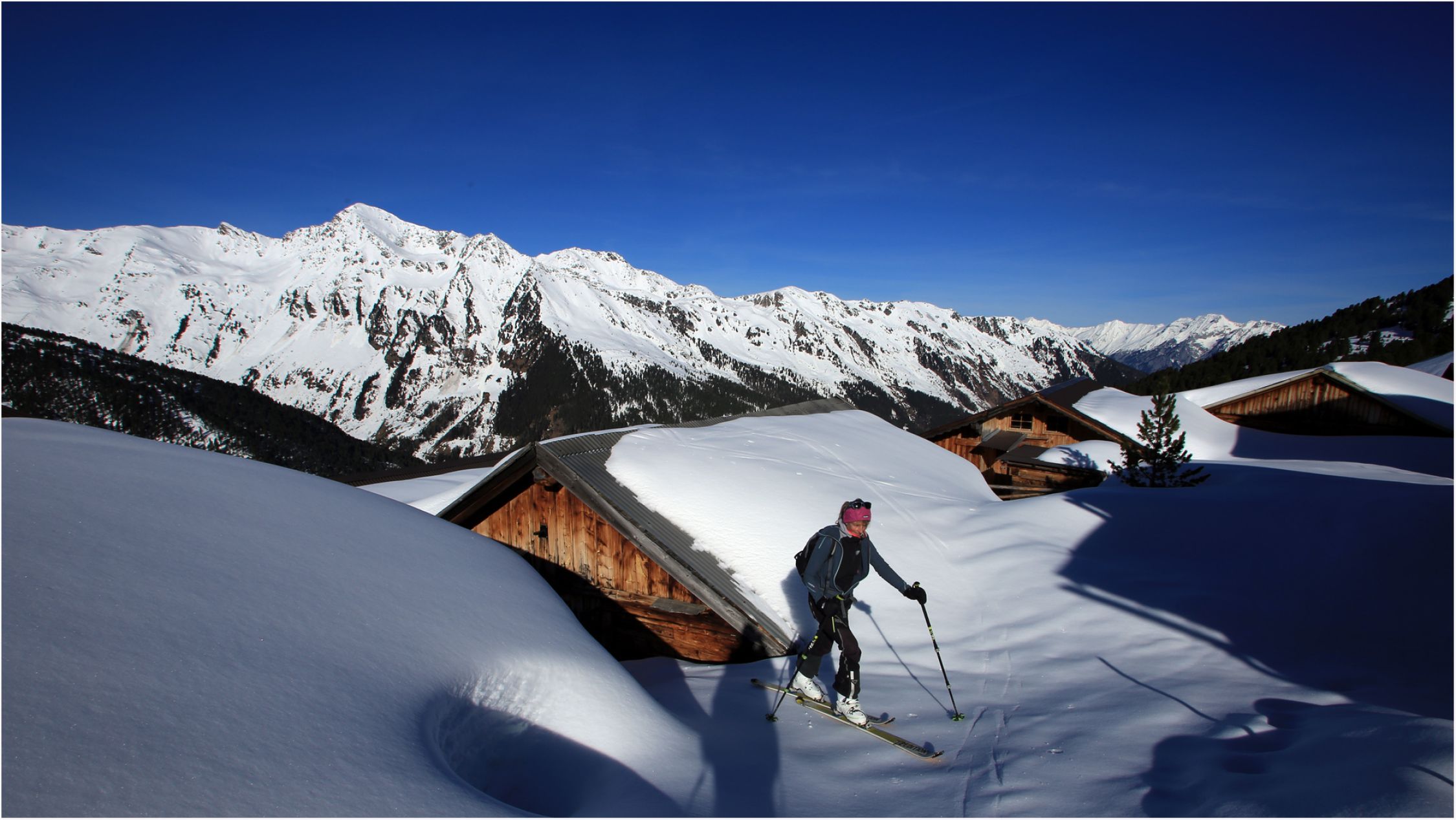 Bei der Abfahrt zum Schluss etwa 15 Minuten Ski tragen.