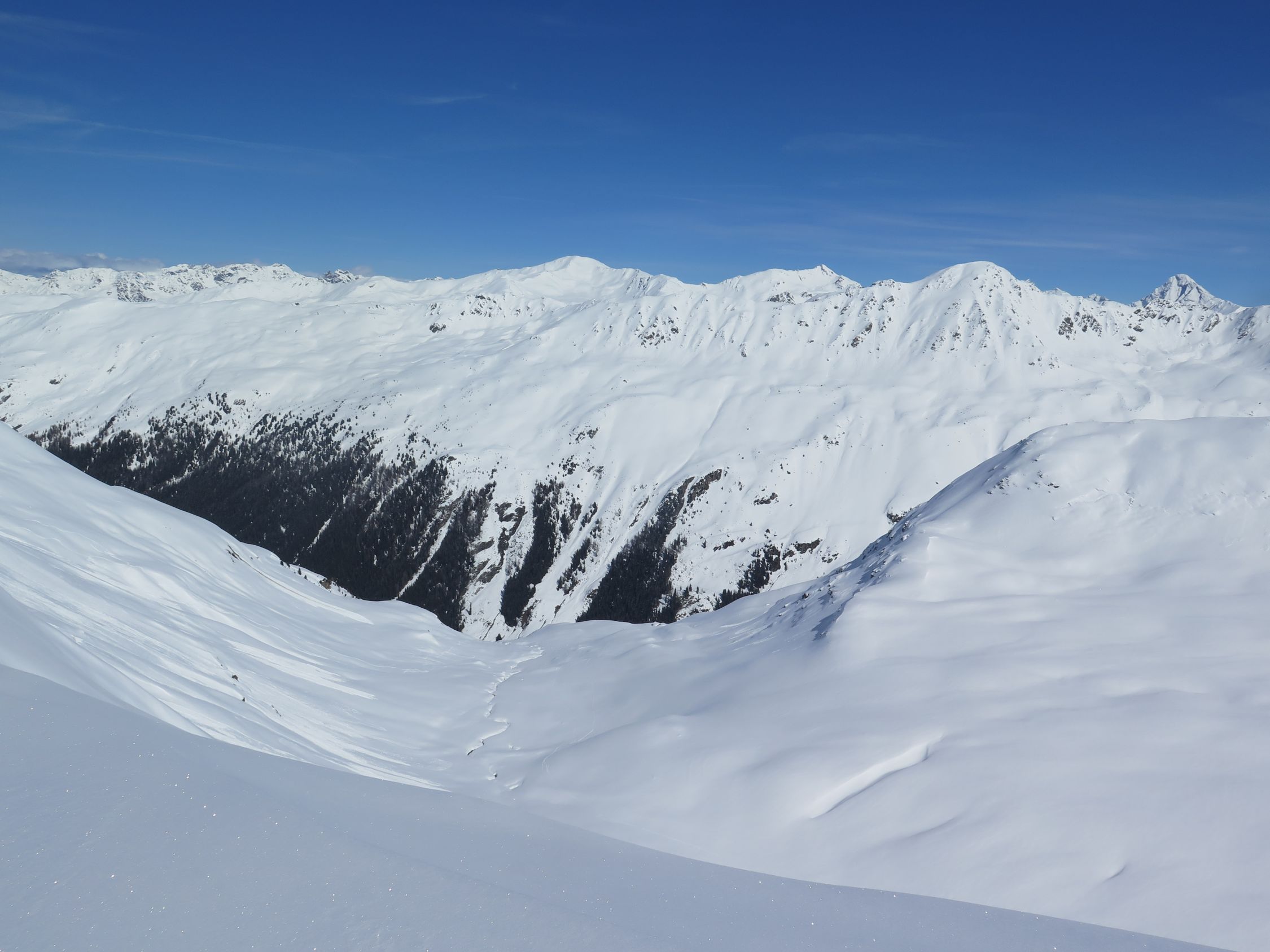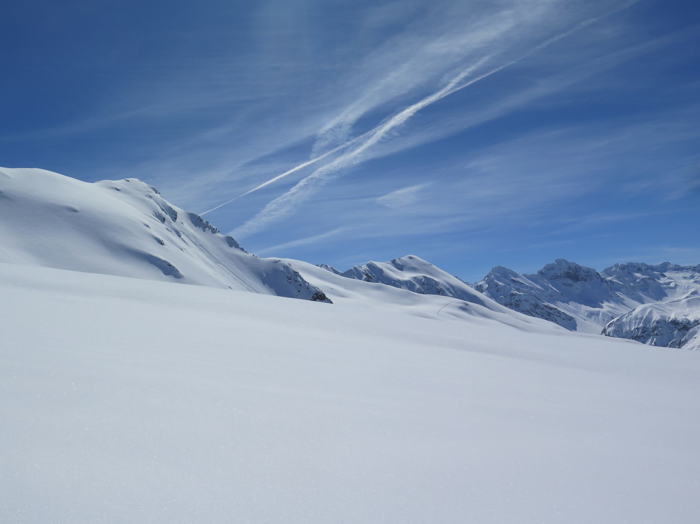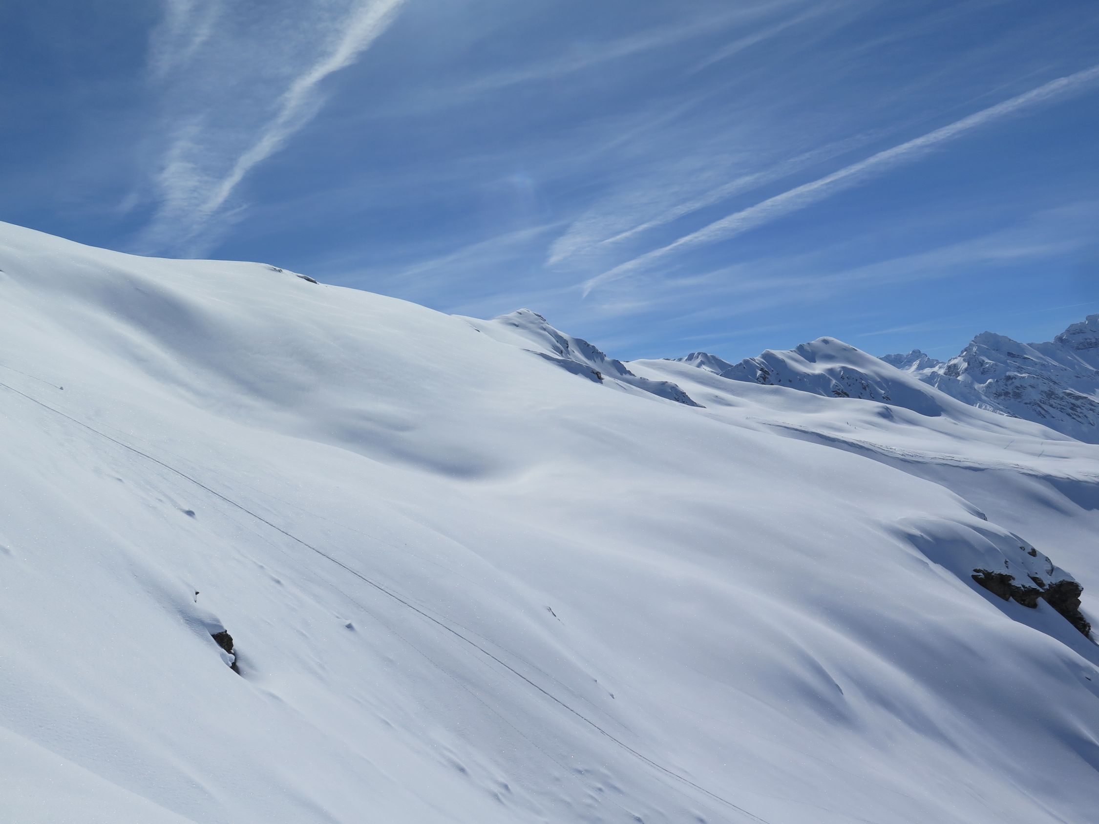 Sonne Pur und praktisch Windstill. Unterhalb ca. 1900 m.ü.m. wurde der Schnee schwerer.