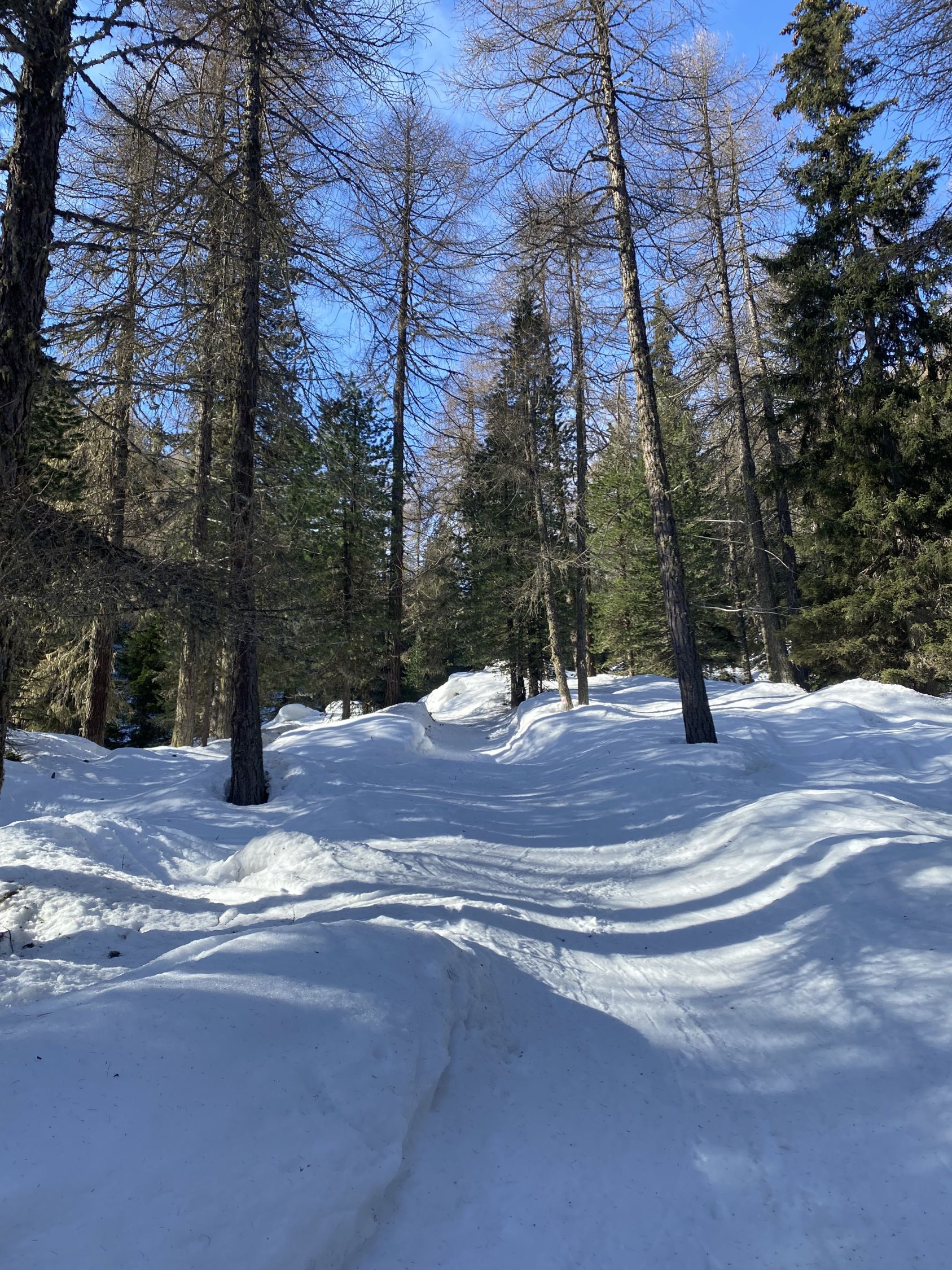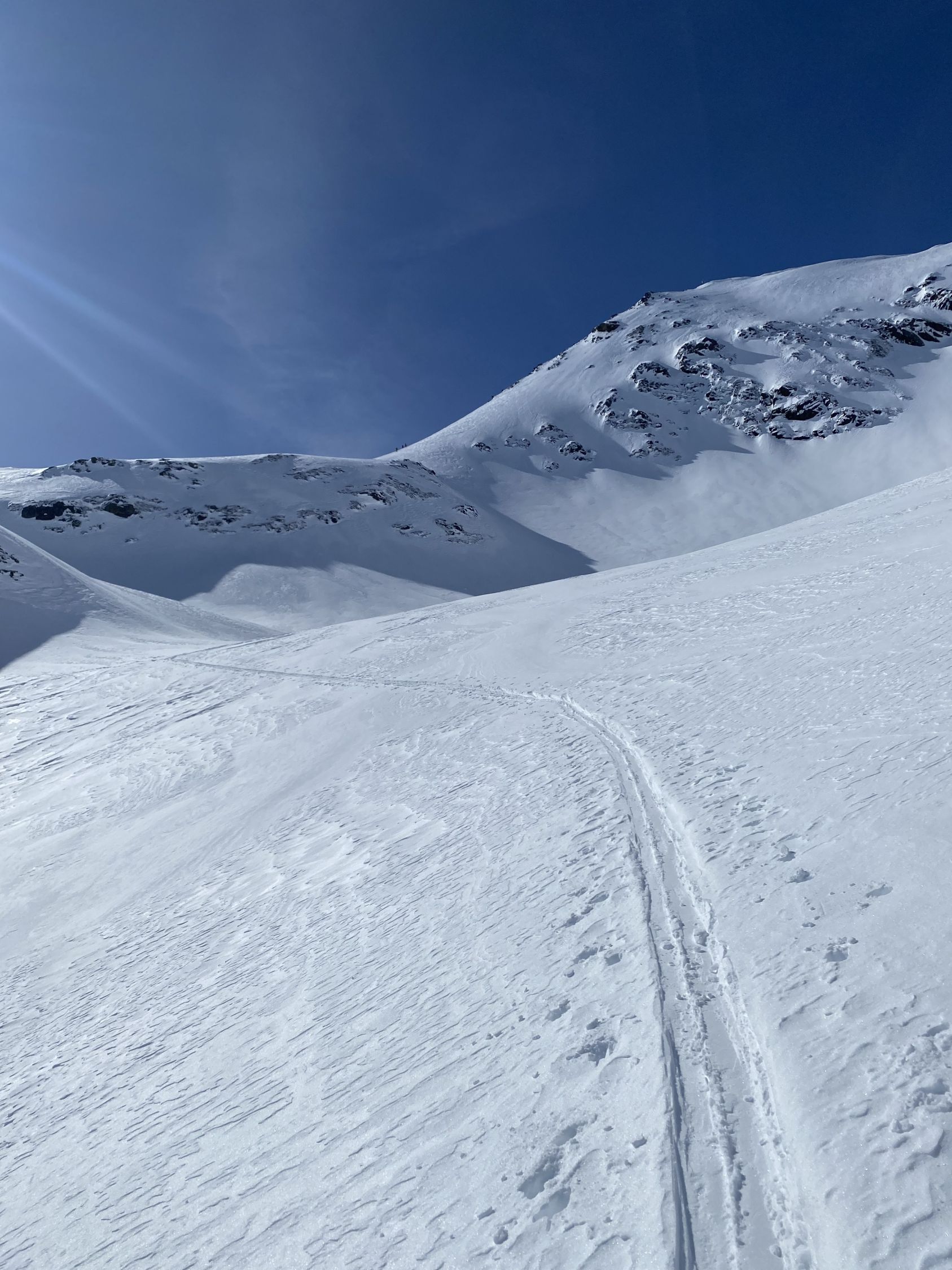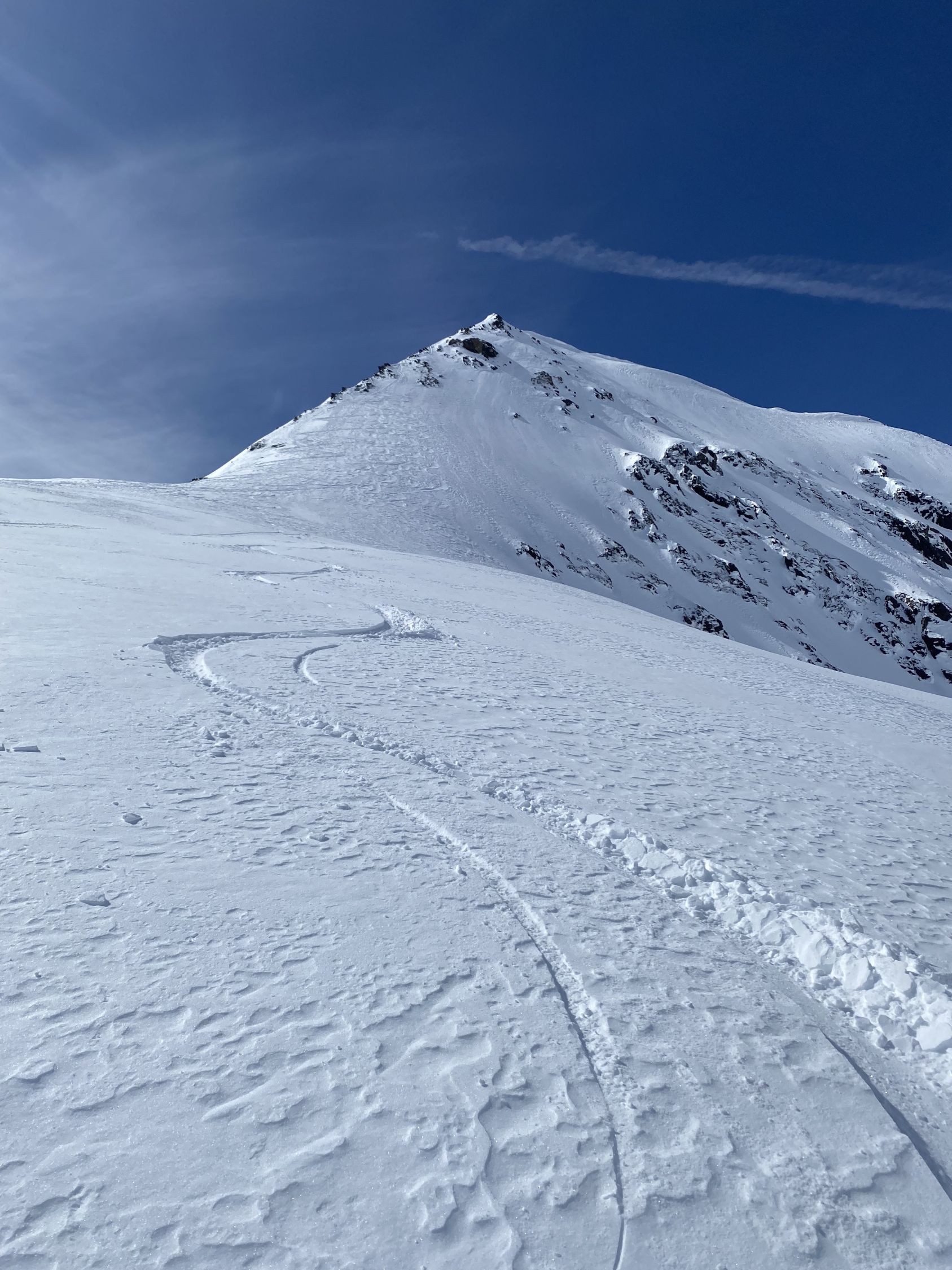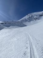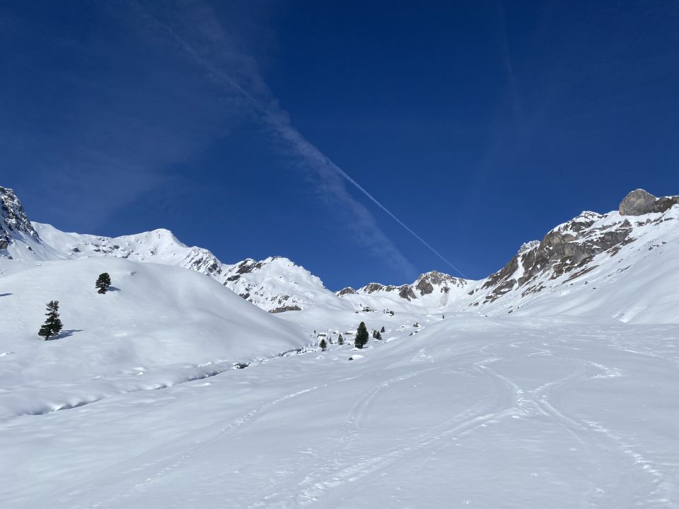 Zum Ausgangspunkt der Tour in Naz kommt man derzeit nur mit der Bahn bis Preda (ab Bergün Abfahrt jeweils 14 min nach voller Stunde). Es hat viel Schnee im Wald durch das Val Mulix - wunderschöne Landschaft macht den Aufstieg durch das Val Tschitta kurzweilig. In der Südflanke der Tschima da Tschitta zum Teil noch recht viel Schnee und bei steigender Temperatur und Tageszeit genauer im Auge zu behalten. Heute waren um 11:30 Uhr diese Hänge alle in besten Firnverhältnissen zu fahren. Ab Skidepot Aufstieg unproblematisch und gute Tritte führen zum Gipfel. Die ersten 400 Hm Abfahrt dann Pulver. Zwischen 2.700 und 2.500 Hm mal etwas anspruchsvoll und dann genussvoll zurück bist Naz bzw. Preda Bhf. (hier gibt es leider keinen Getränkeautomaten)