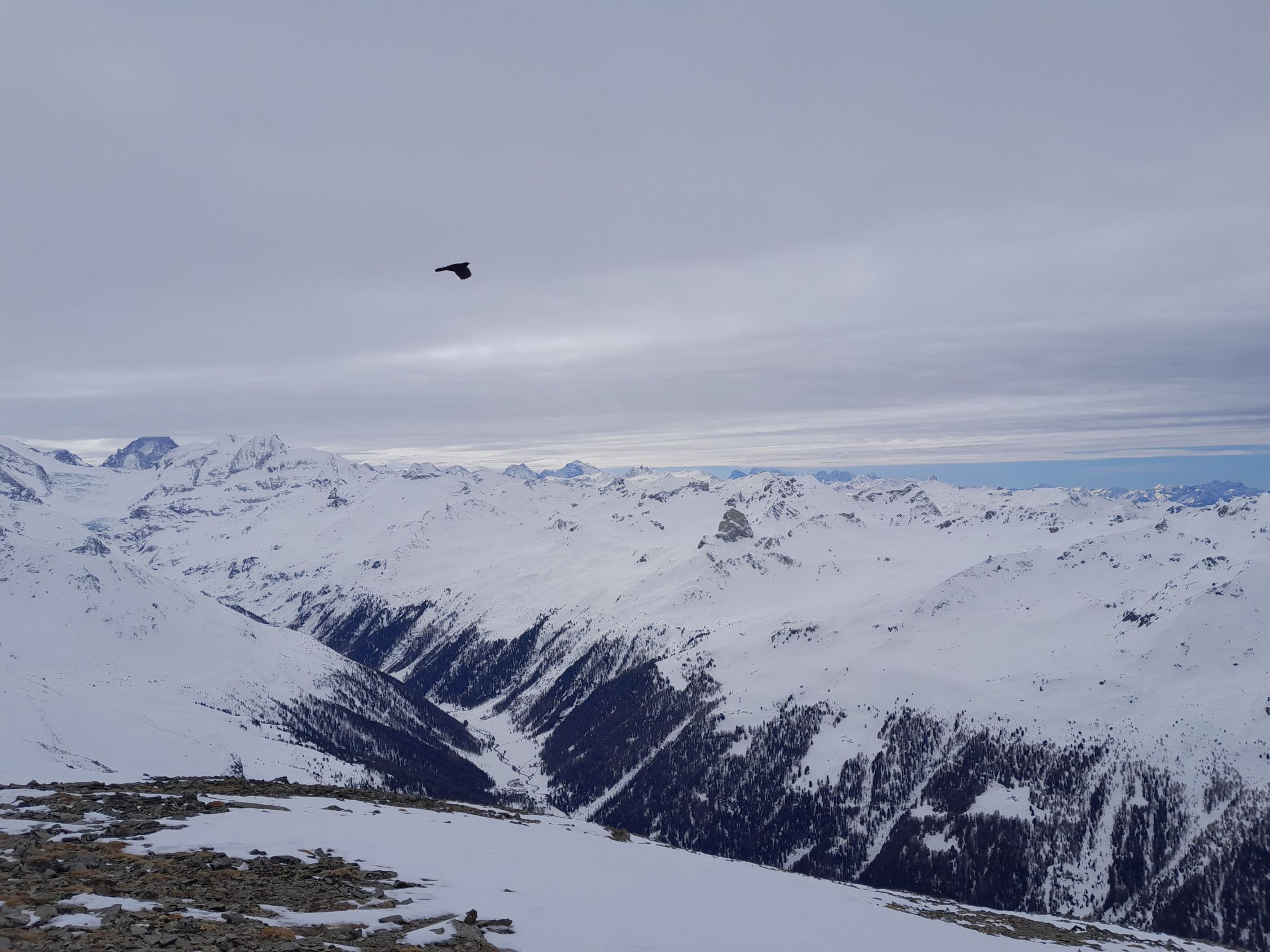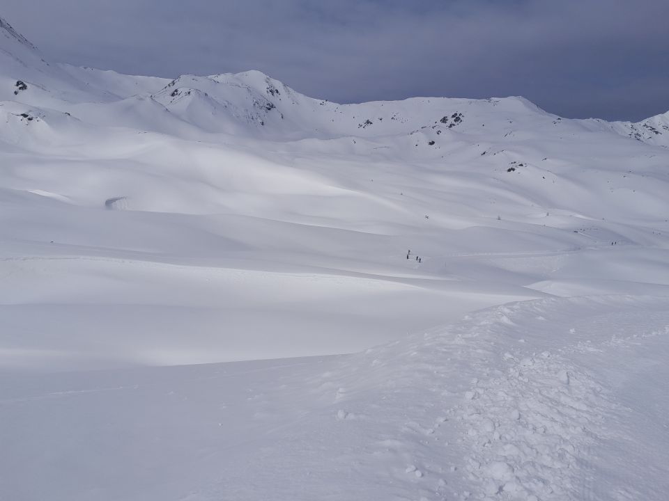 Der Schnee war durchwegs fahrbar auch wenn alle möglichen Schneearten vorkamen. Morgens und am späteren Nachmittag sehr gute Fernsicht. Gut angelegte Spuren auf alle drei Gipfel. Jeweils mehrere Gruppen unterwegs, auch Richtung Augstbordhorn.