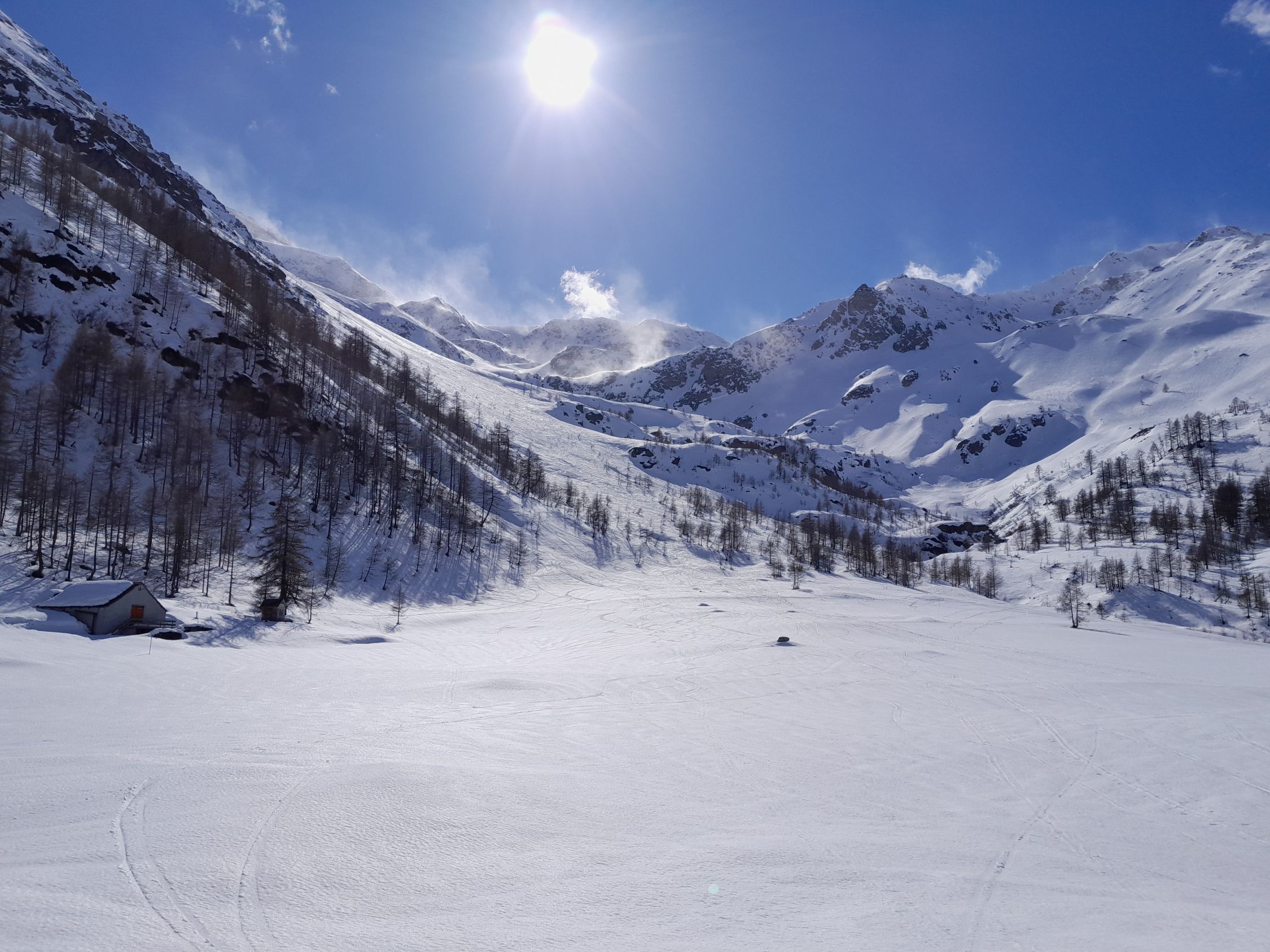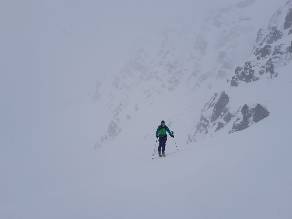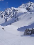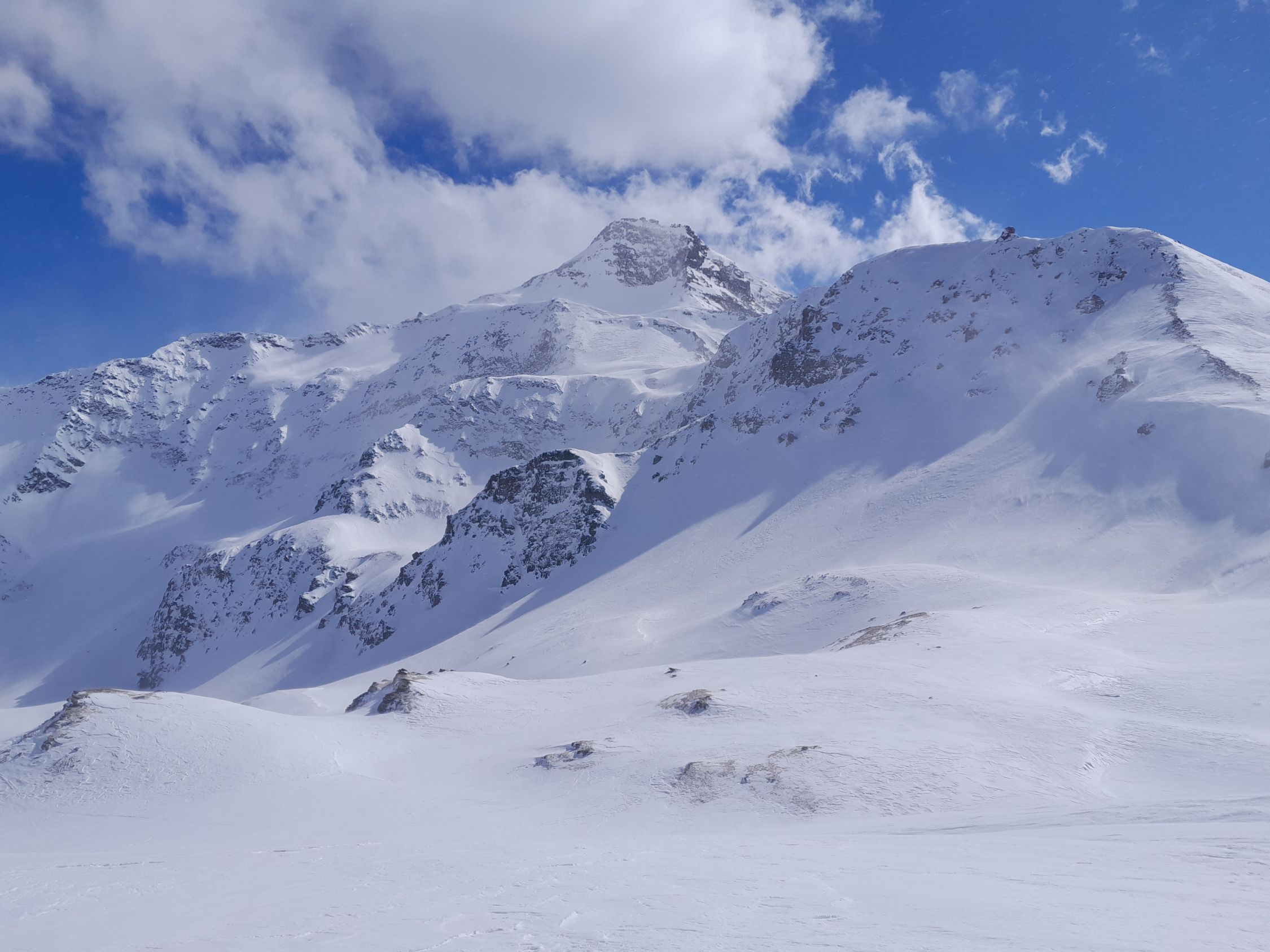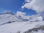 Sehr windig vor allem weiter oben. Jetzt bis auf ein paar kleine Triebschneefeldee auch nur noch harter Schnee. Später Start hat sich gelohnt, da gegen Nachmittag die Sicht viel besser wurde. Die ca. 30 Skitourengeher, die uns entgegen kamen, hatten vermutlich keine gute Aussicht. Umgekehrt bei Sirwoltupass, da ab dort noch stärkerer Sturm.
