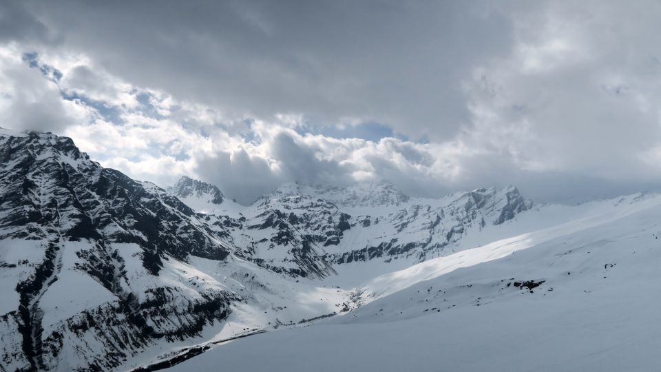 Am Morgen war das Wetter tipptopp. Leider zogen, wie vorausgesagt, bald Wolken auf, es begann zu schneien und die Sichtweite reduzierte sich markant. Die Abfahrt im oberen Teil gestaltete sich daher schwierig und erfolgte grösstenteils im Stemmbogen, entlang der Aufstiegsspur. Im unteren Teil, oberhalb der Guwhütte, wurde die Sicht besser und die Neuschneeauflage ermöglichte ein paar Schwünge auf den Ski. Im Bereich des Turrahauses beträgt die Schneehöhe noch ca. 20-30 cm. Fazit: Eine schöne Skitour unter widrigen Bedingungen.