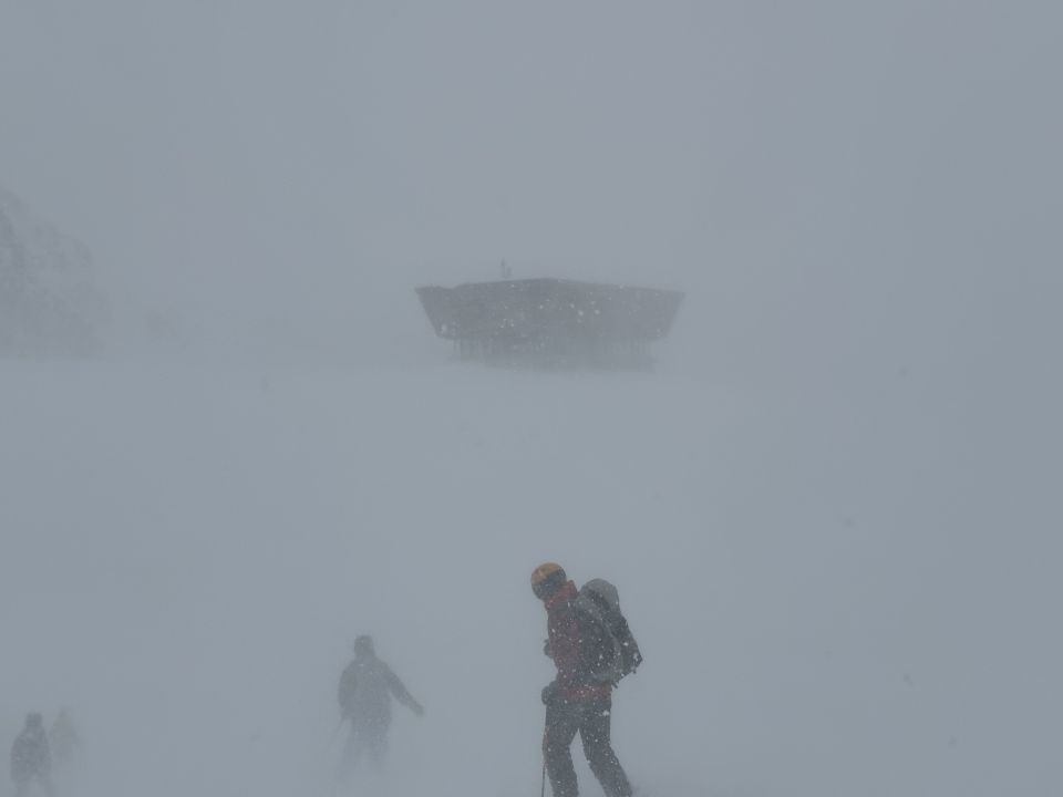 Leider zu viel Wind und zu schlechte Sicht am frühen Vormittag. Aufgrund des Schneefalls und des starken Winds vom SA auf SO haben sich grössere Triebschneeansammlungen gebildet.