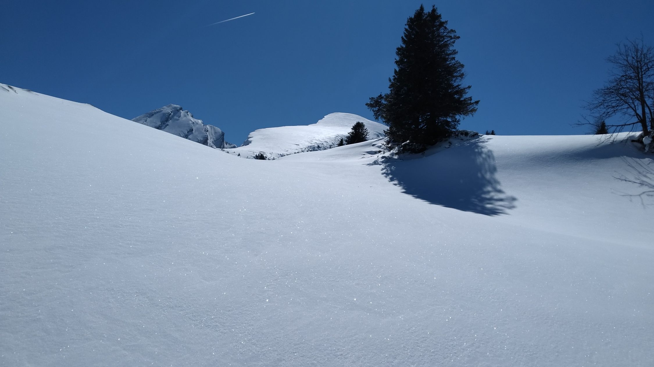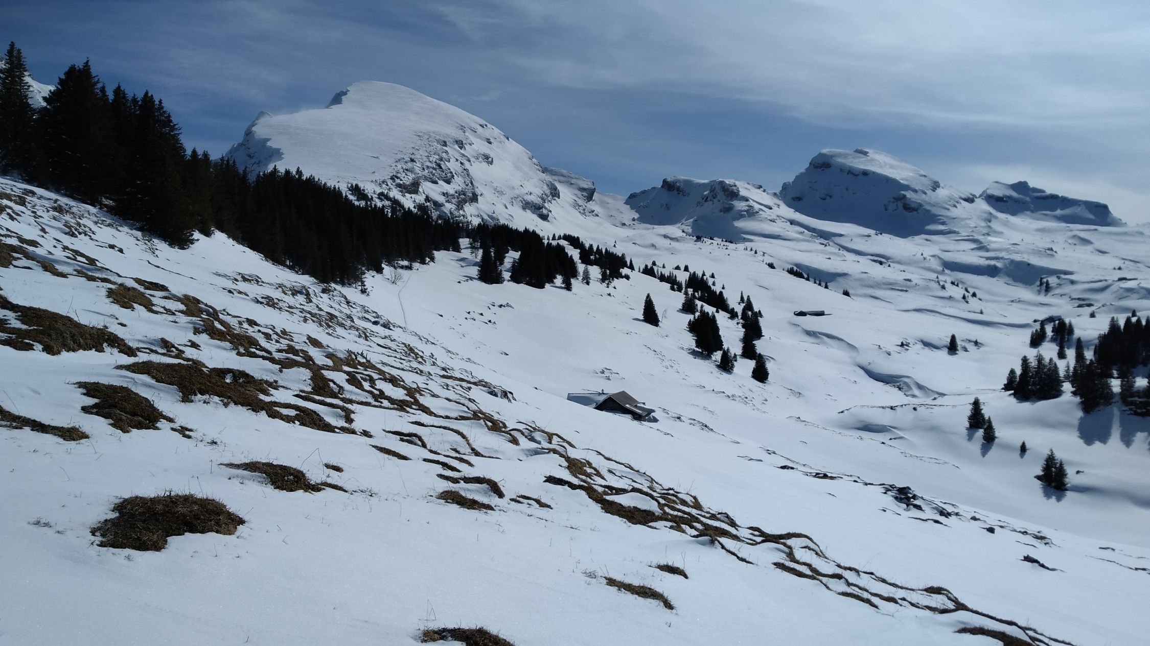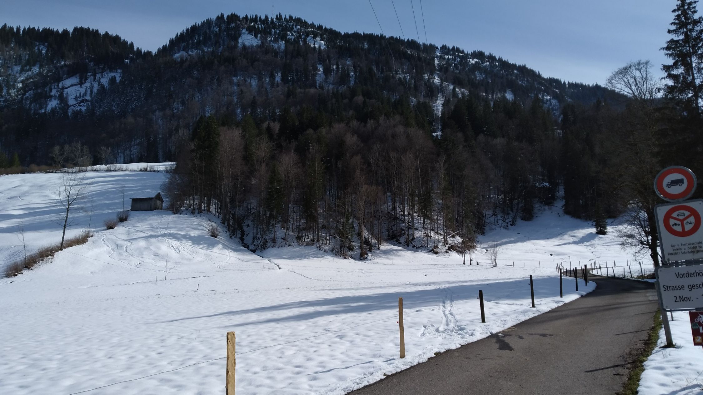 Dank 20cm Neuschnee Ski in Starkenbach montiert. Für Aufstieg reichte Schnee Tip Top. In der Abfahrt auf Waldstrasse untere Hälfte rupig mit Steinen. Habe meine alten Ski genommen zum Glück dann geht's gerade noch. Über Matten dann wieder gut.