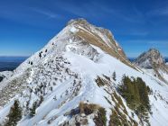 Aufstieg im feuchten Schnee entlang dem Wanderweg zum Schibespitz Grat, dann kurz zu Fuss dem Grat entlang in Richtung Gantrisch und dann im ersten grossen Couloir (entlang dem Fussweg) links runter ins Gantrischchummli. Einstieg ins Couloir stark vereist (zum Glück habe ich meine Kanten geschliffen) und dann wenig Pulverschnee auf harter Unterlage, aber schön zu fahren.