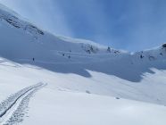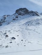 Der Aufstieg zum Leiterepass war problemlos, aber auch dort hat es viele eisige Stellen. Abstieg vom Leiterpass im nassen Sulzschnee, dort am Südhang war es sehr warm.