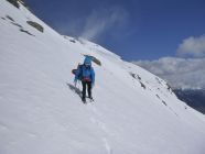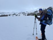 Das Gebiet wird bestimmt nicht von vielen Wintertouren-Gängern benutzt. Auf- und Abstieg zur / von der im Winter offenen Hütte ist lang und führt höhenintensiv durch den Wald, womit Schneeschuhgänger sicherlich besser zurechtkommen. Skitourengänger haben allerdings in den steilen freien Flanken am Berg ihre Vorteile, wo wir Ss-Gänger dann entweder mehr Zeit brauchen, auf Steigeisen umsteigen müssen, oder gar die Segel streichen.