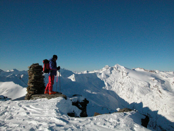 Auf Abfahrt über Westhang und Guraletschsee Pulver.