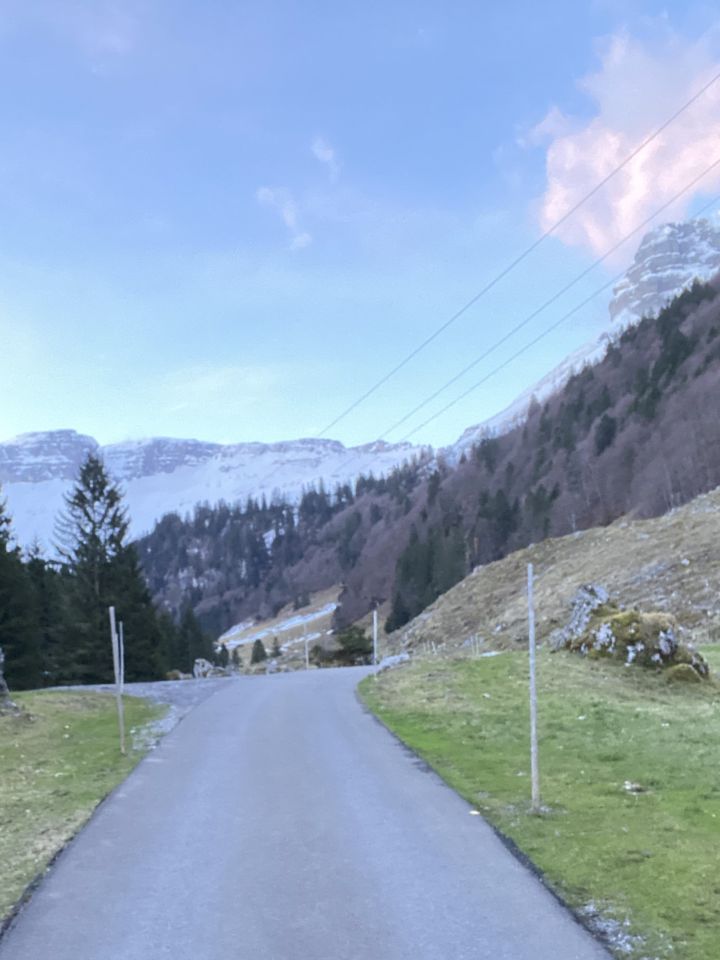 Die Fahrstrasse ist ab dem Parkplatz Gruebiwald gesperrt (Barriere, Vorhängeshloss und gerichtliches Fahrverbot). Berechtigte können ohne weiteres bis zum Sahli bzw. bis zur Abzweigung zur Glattalphütte hoch fahren. Durchgehende Schneeauflage ist er beim Austritt aus dem Ruosalper Wald auf 1330 m vorhanden. Ab dem Gross Gade liegt eine Neuschneeauflage von 5 - 15 cm auf einer harten Unterlage. Der Wind wehte lokal aus allen Richtungen - im Steilstück hatte ich angenehmen Rückenwind. Unterhalb vom Balmer Grätli weht mich der Föhnsturm um, weshalb ich die Tour abgebrochen habe.