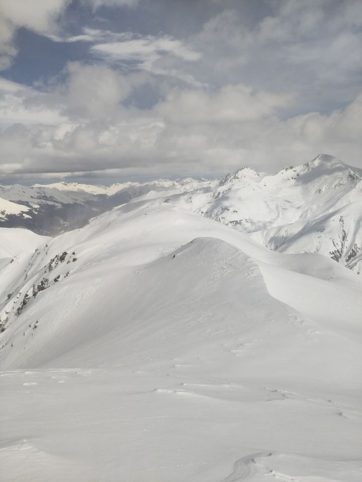 Start bei Monstein um 0830. Zu beginn vereinzelt Regentropfen, danach gute Sichtverhältnisse. Aufstieg im Wald mit drei kurzen Tragestellen. Wie angekündigt föhnig und sehr warm. Wind bis auf den Grat eigentlich noch im Rahmen - meist eine willkommene Abkühlung. Es war wirklich sehr warm bis nach oben. Bis ca 2400m Schnee komplett durchnässt und anspruchsvoll zu fahren. Gipfelhang besser, aber auch von der Wärme geprägt. Zusammenfassend dank spannender Wetterstimmung und genussreicher Einkehr im Veltlinerstübli doch ein lohnender Tag!
