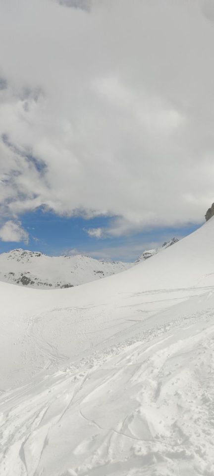Im Windschatten sind wir aufgestiegen. Gegen kammnähe hat uns dann der herrschende Südföhn fast aus den Skiern geblasen. Die Abfahrt im nassen Schnee beanspruchte unsere Balancierfähigkeiten vom feinsten. Alles in allem aber eine sehr gelungene Tour - noch früher aufzustehen hätte sich wohl in einer besseren Abfahrt ausgezahlt.