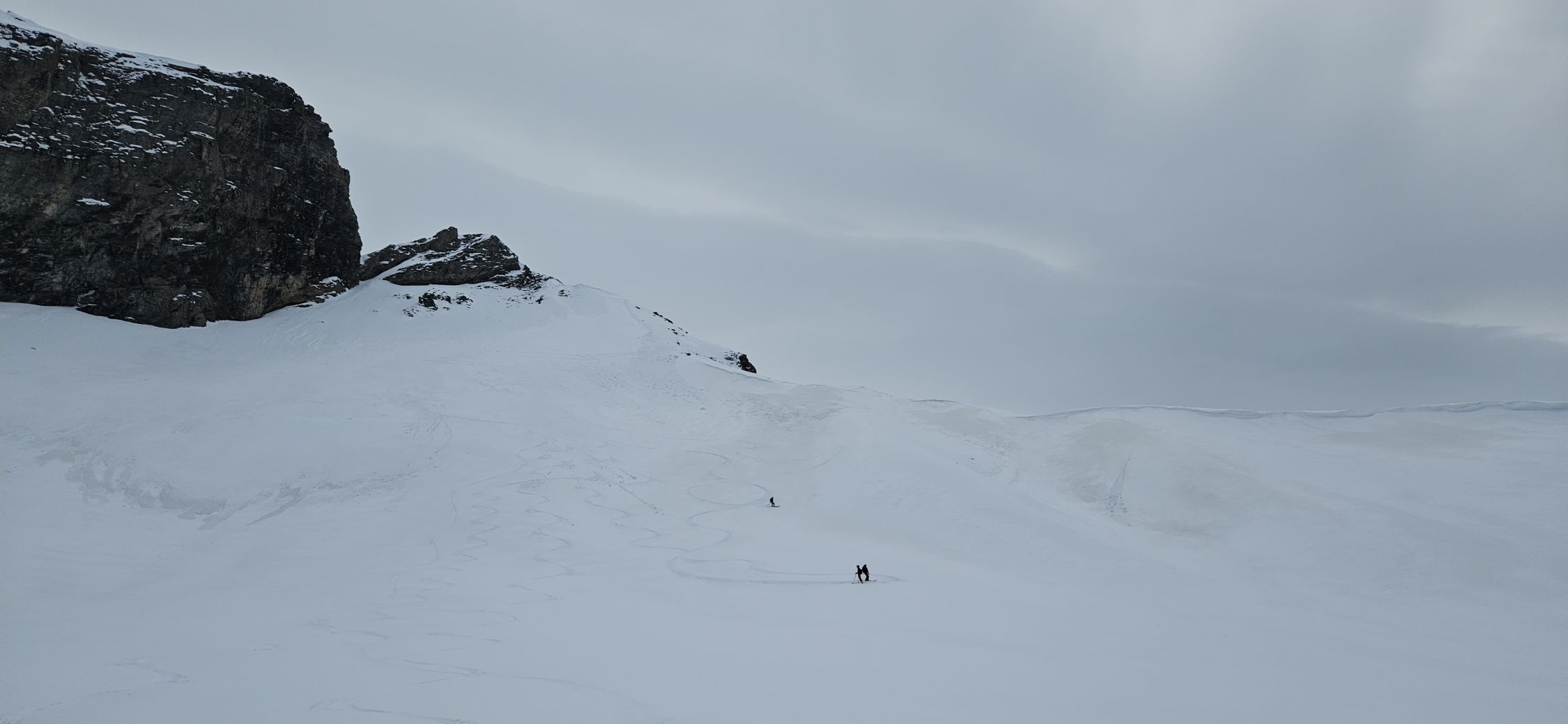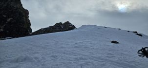 Schnee schon um 9:00 eher feucht. Der Aufstieg war grösstenteils windstill bis zum Latejengrad mit kurzen Böen zwischendurch. Am Latrejengrad dann kurz starker Wind bis zum Gipfelhang. Dort sind wir dann auf 2222m umgekehrt.