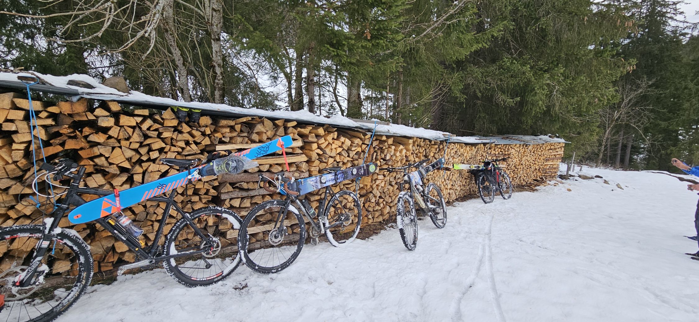 Mit dem Velo bis Untere Obersuld. Schneedecke war ab dann mehr oder weniger deckend.