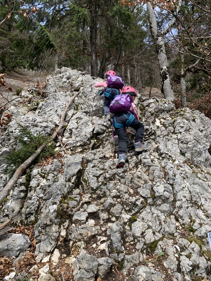 Klettertour mit meinen Girls, welche eine Riesenfreude hatten. Selbstredend, dass Sechsjährige bei solchen Unternehmungen am Seil gesichert sind. Es funktioniert eigentlich recht gut mit einem 10 m Strick und die Kindern jeweils an den Enden direkt eingebunden. Selbst mit Achter in der Mitte eingebunden kann man gut koordinieren. Es ist sehr beeindruckend, wie die Trittsicherheit der Kinder zunimmt. Steil bergab wird praktisch alles gerannt, das (über)fordert mittlerweile fast meine nicht mehr ganz jungen Knochen!