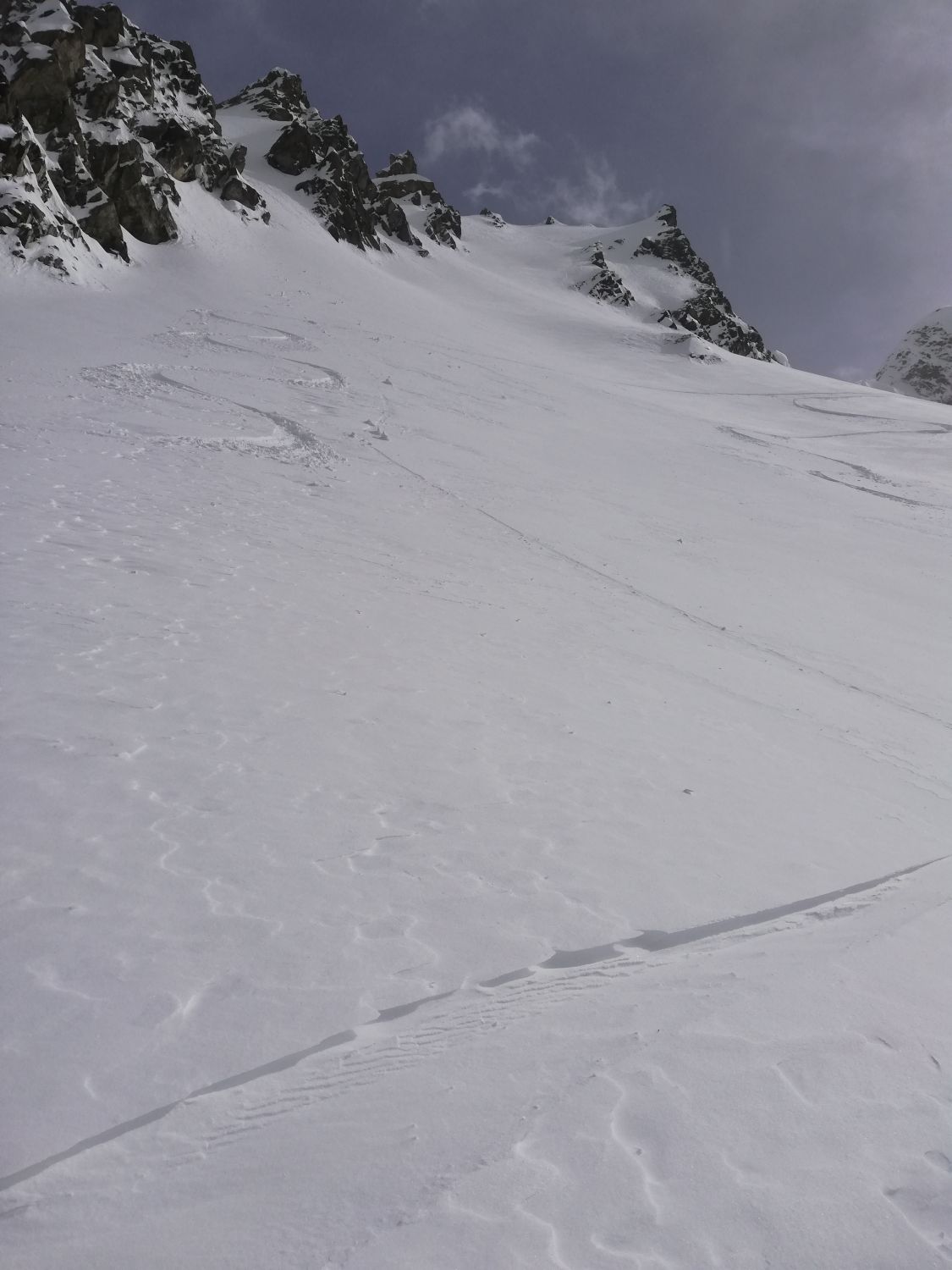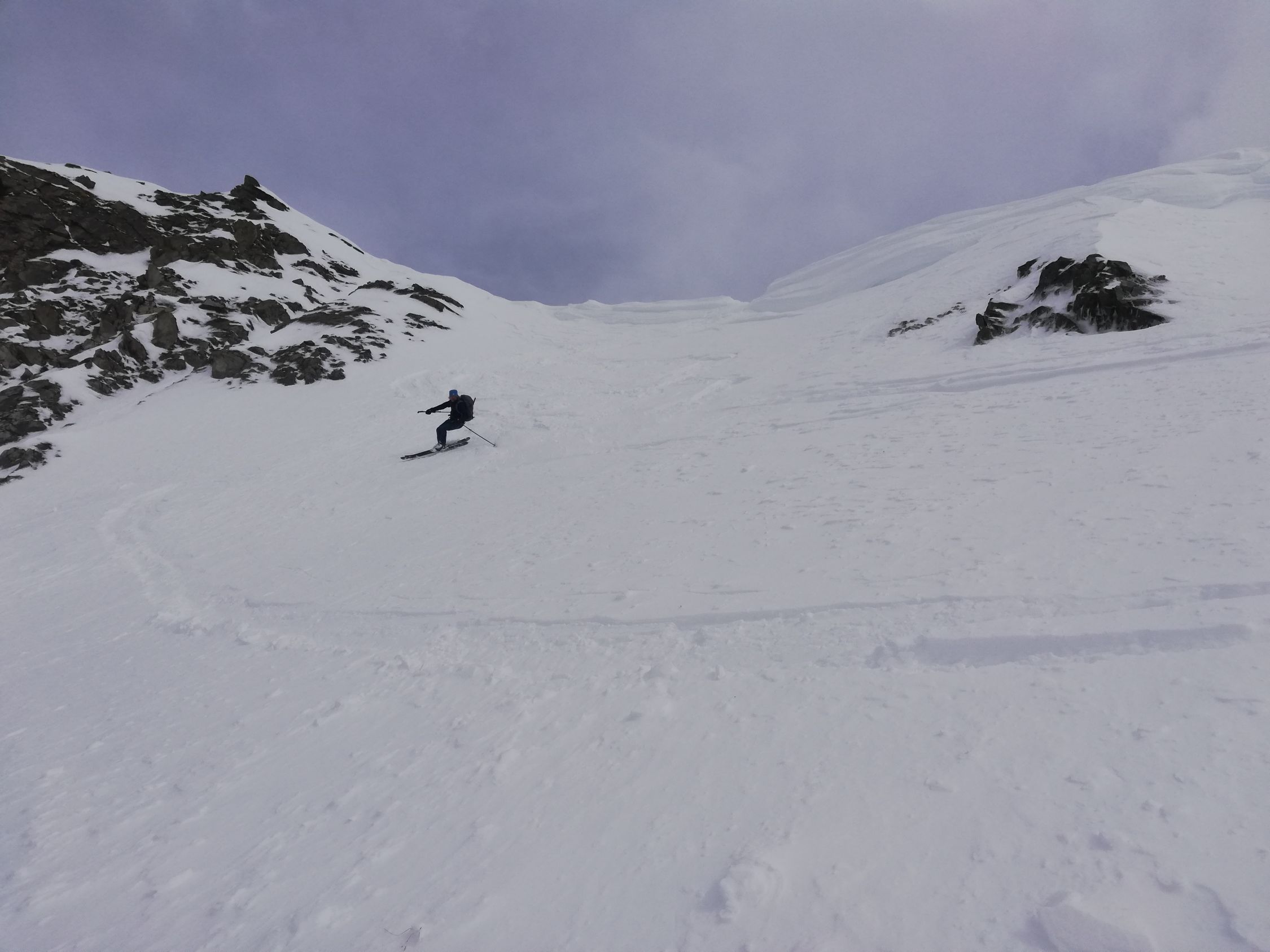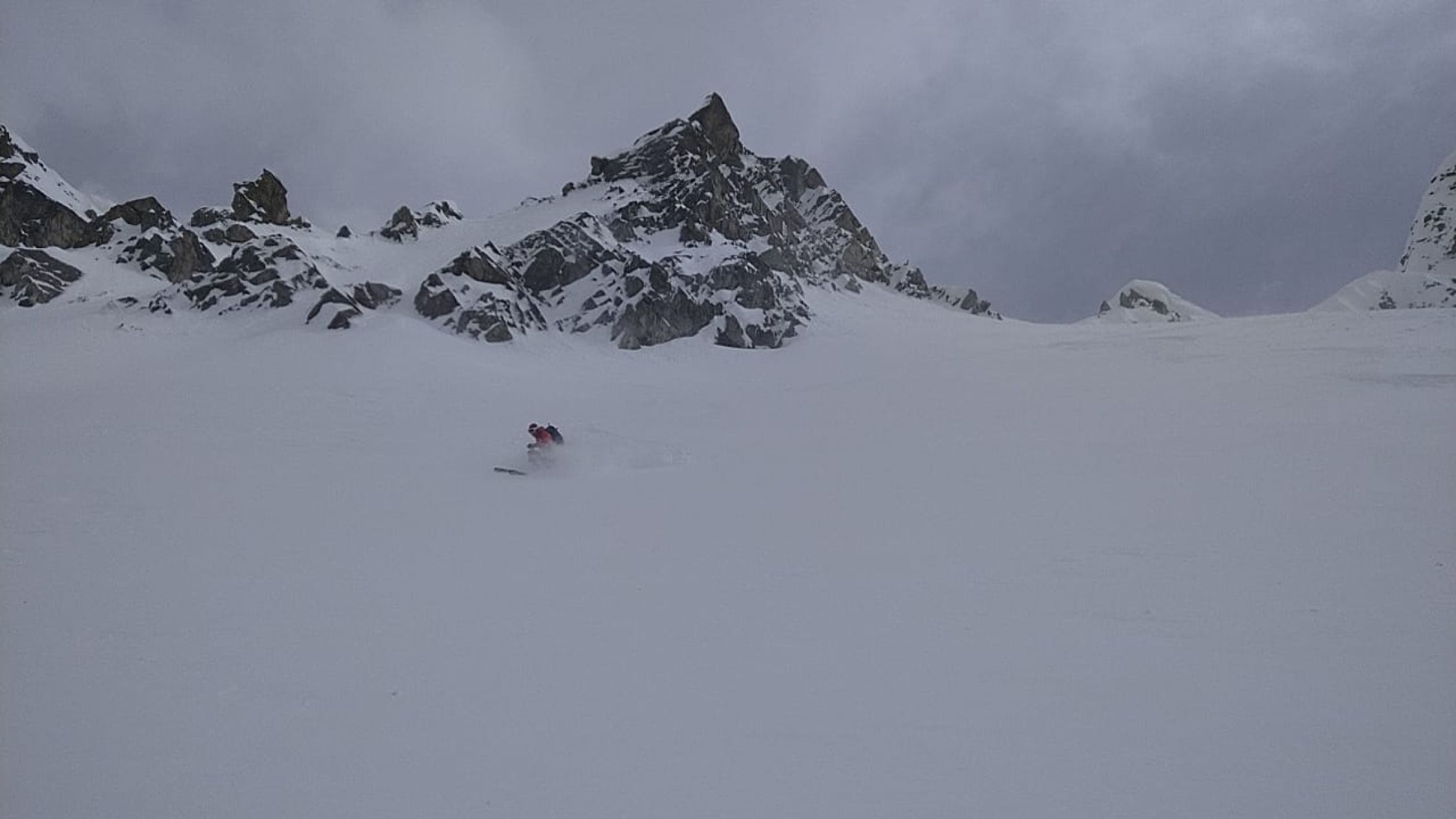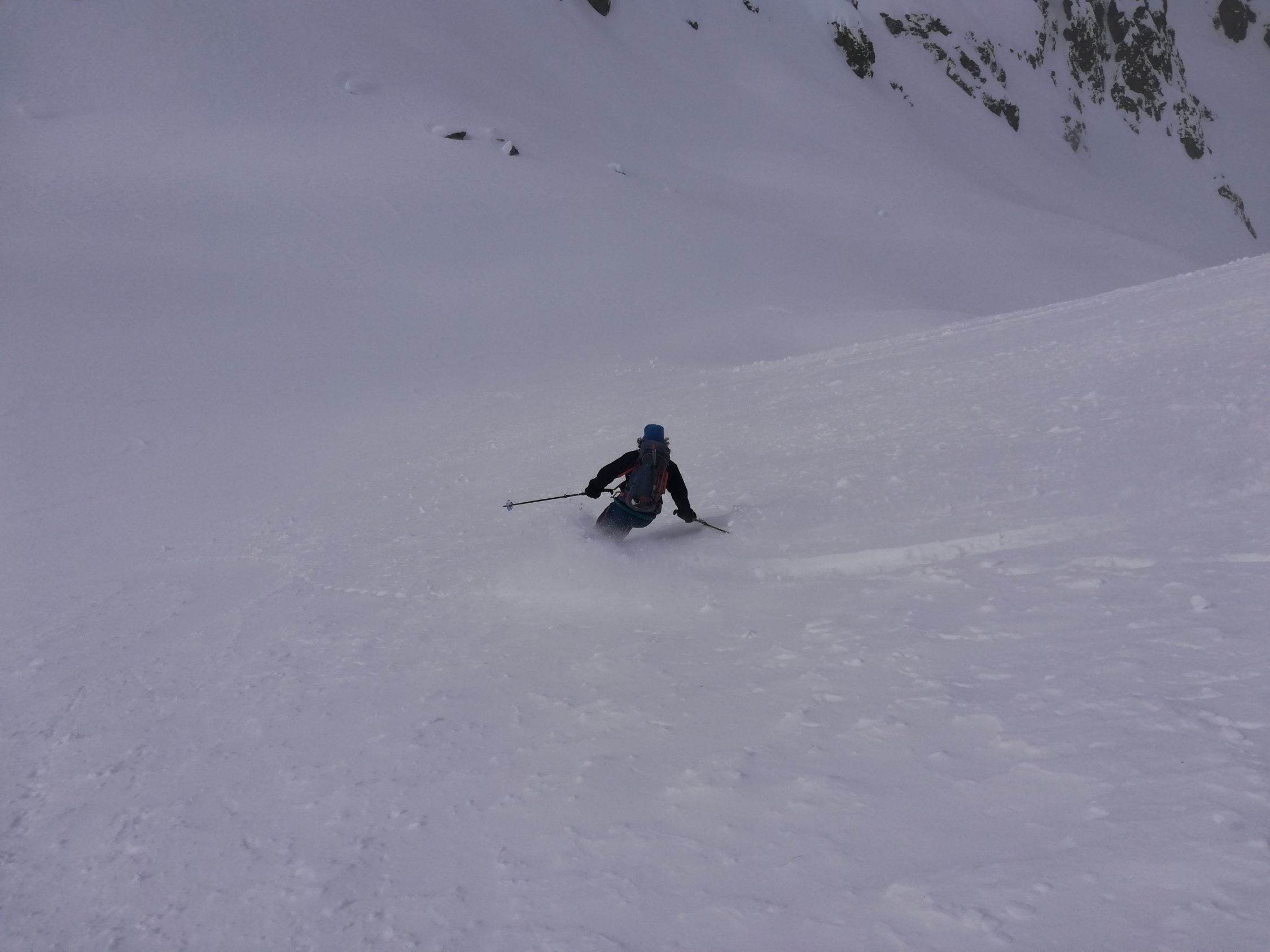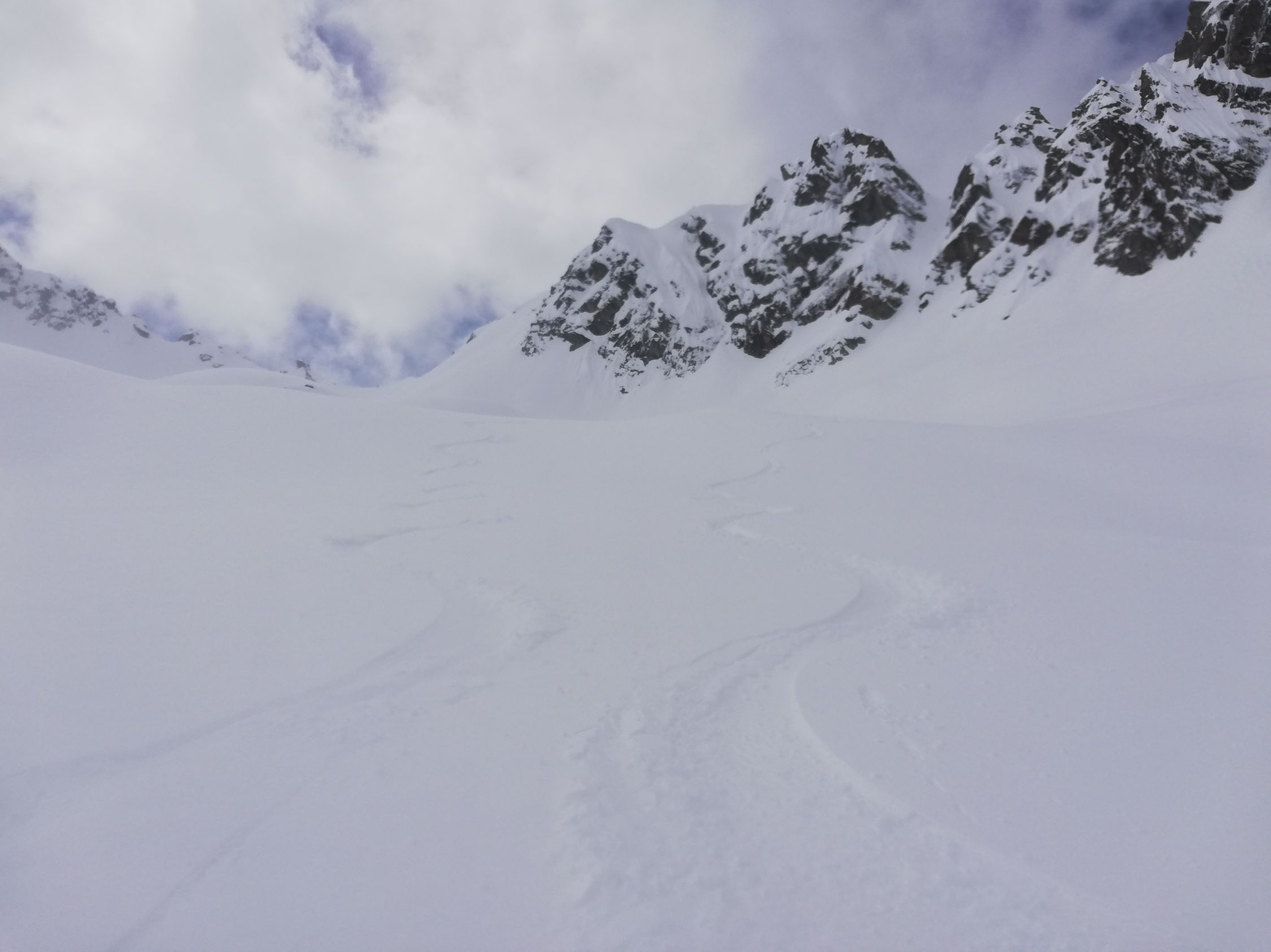 Schneeverhältnisse am Schweizer Gletscher waren ausgezeichnet. Der Schweizer Gletscher war für diesen Wind in etwas geschützterer Lage, darum haben wir diese Route gewählt.