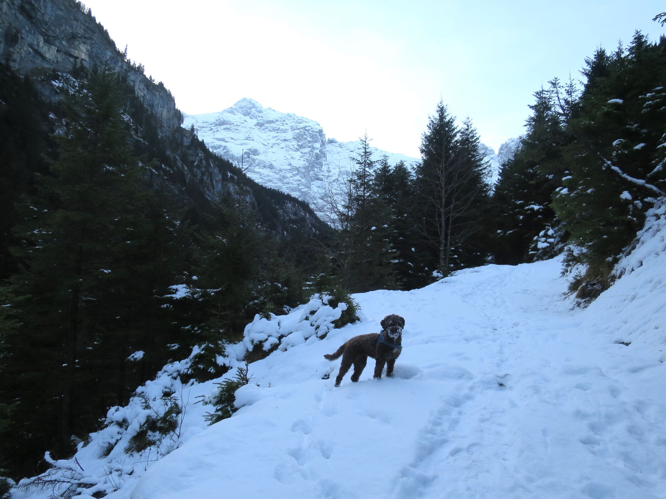 Mit Hund Livi von Unterschächen via Mettlen, Alt Rüti-Lauwi und Umgschlagen Wald nach Brunni. Weiter durch den Gross Wald zum Ruchenhüttli in Nider Lammerbach. Die Wanderroute war schneebedeckt. Zurück über Brunni, Rüti, Lissleren und Ueligschwand nach Unterschächen.