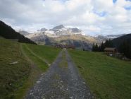 Mit dem 11.00 Uhr Bähnli nach Gampelen. Der Bergstrasse entlang via Hinteren Rustigen und Ober Lauwi zum Sittliser Boden. Über die Grundplanggen und Eggen zum Flösch hinauf. Weiter bis ins Vorder Griesstal dort umgekehrt. Abstieg über Pfaffen und Chärschelen zur Brunnialp. Der Brunnitalstrasse entlang via Rüti, Lissleren und Ueligschwand nach Unterschächen zurück