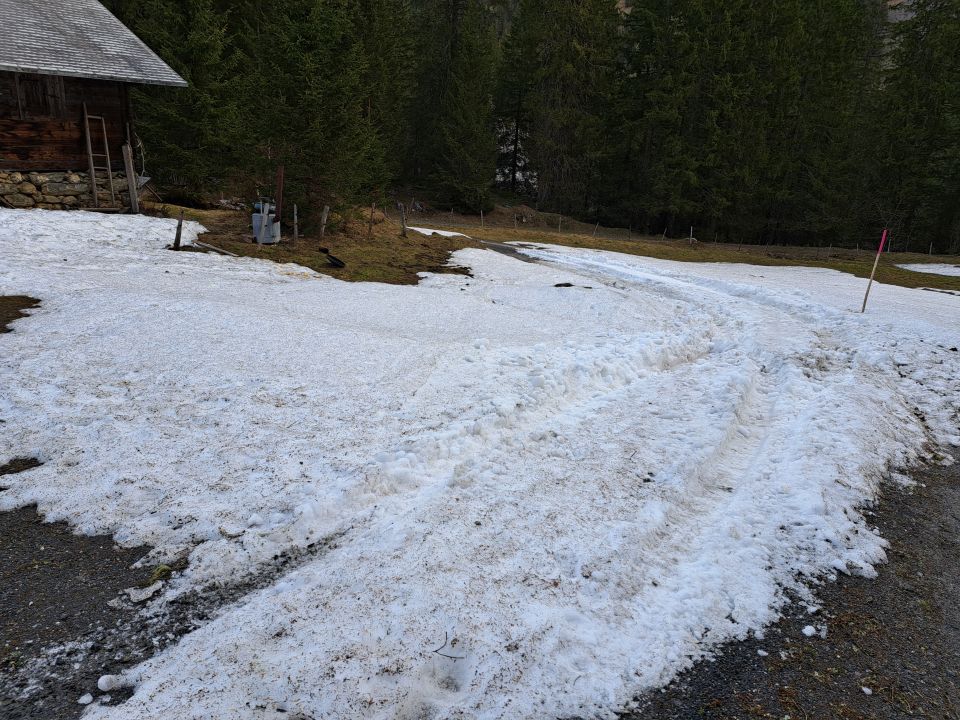 Ich habe das Auto in Kiental Parkiert 5.-Fr und bin mit dem E-Bike auf die Griesalp gefahren und von dort noch der Fahrstrasse über einige kurze Schneefelder bis 1600m.