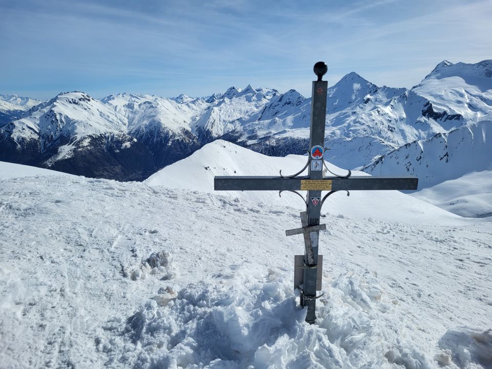 Dort habe ich wieder angefellt und bin über den Grat zum Tochuhorn aufgestiegen. Der Grat ist griffig, es sind keine Harscheisen nötig. Abfahrt über die steile SW-Flanke, der Schnee war leider noch ziemlich hart.