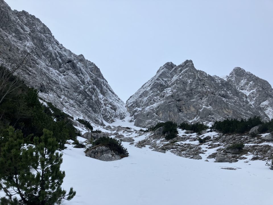aktuell tip top, Mit dem Radl bis Schotterwegende ohne Schneekontakt, dann zu Fuß weiter bis Depot, harter Trittfirn bis EInstieg (nicht faul) oben recht doch erstaunlich viel Schneeauflage, nix blank top