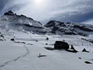 Der Weg zum Jegertosse ist an den kritischen Stellen aper und somit recht gut machbar. Dann meist gut tragend bis zum Gipfel, zuoberst sogar noch etwas Pulver.