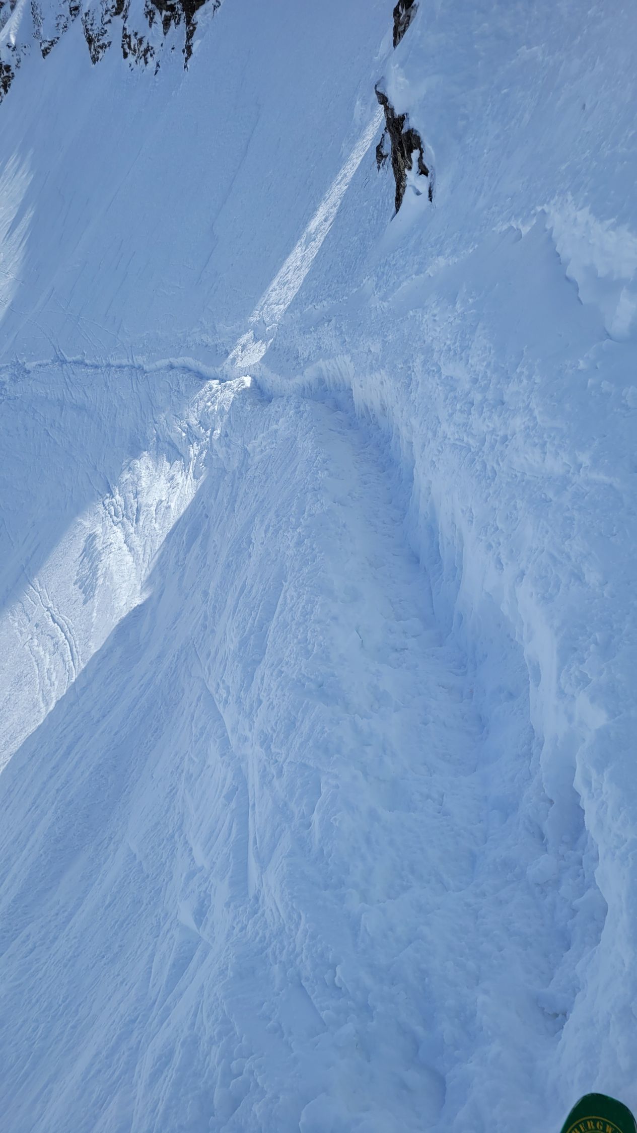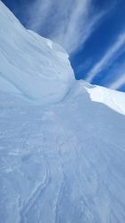 Abfahrt, hart, Bruchharst, Gastrungis, wenig !ulver, wenig Sulz.