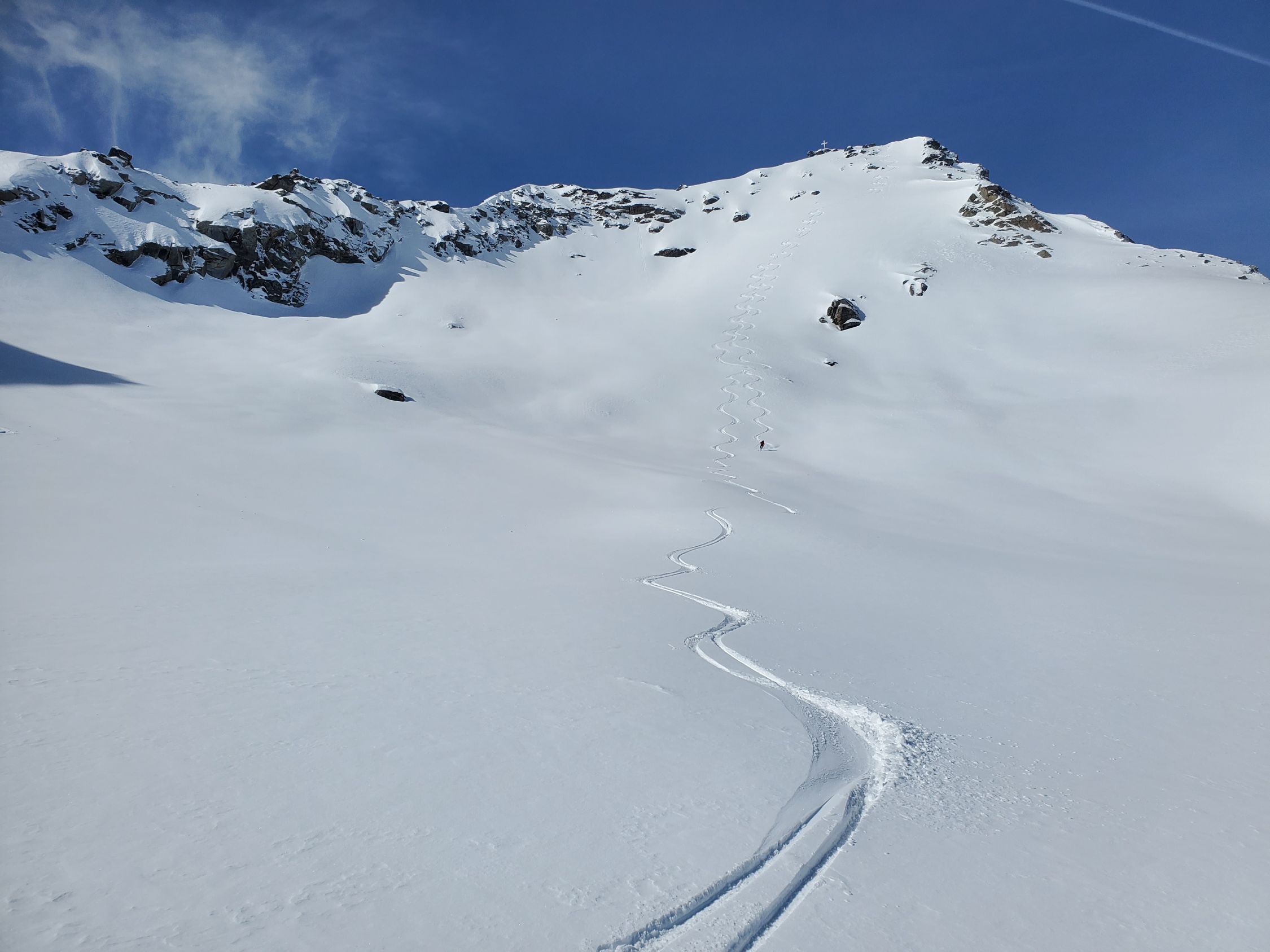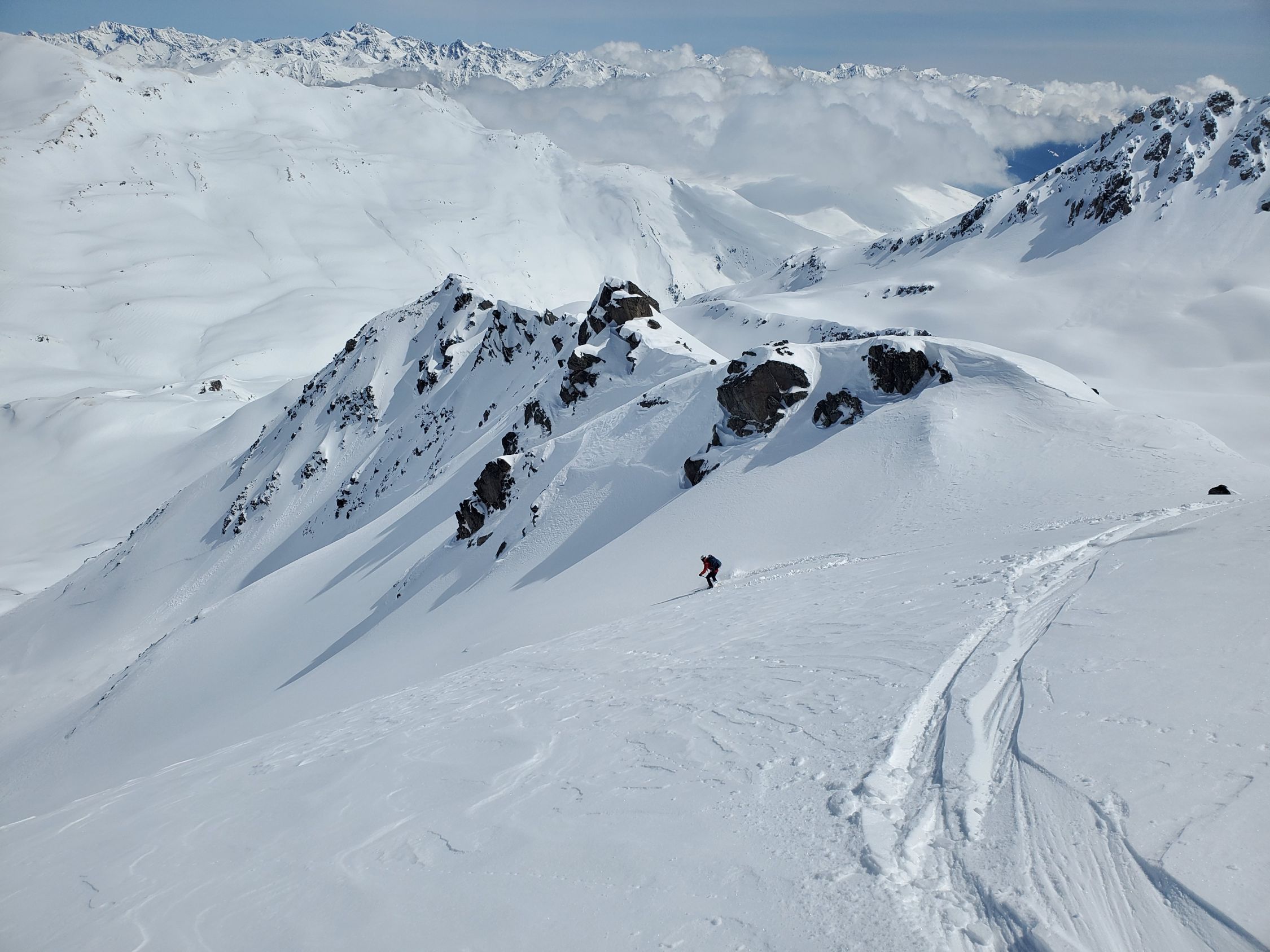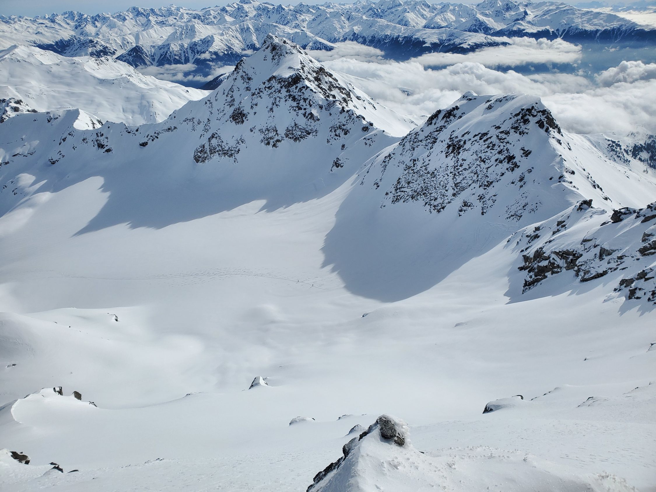 Haben die gute Schneesituation perfekt genutzt: Direktabfahrt vom Gipfel des Piz Sesvenna, dann Nordflanke der Fernerspitze, dann zweimal die Nordflanke vom Schadler abgefahren, jeweils unberührter Pulver! So perfekte Verhältnisse hat man nicht oft;