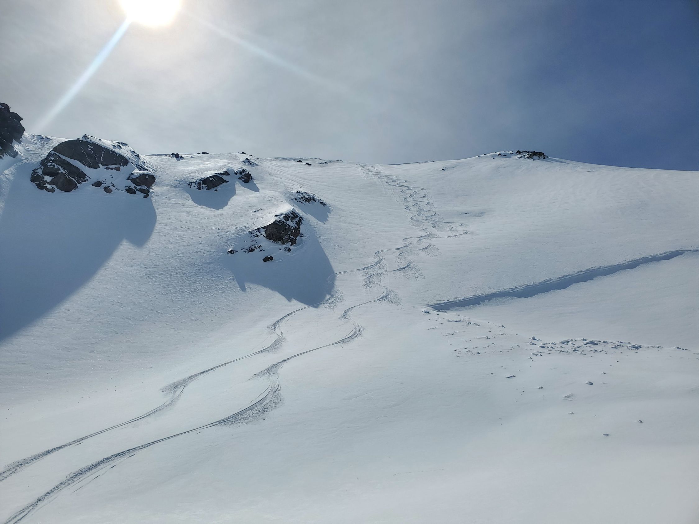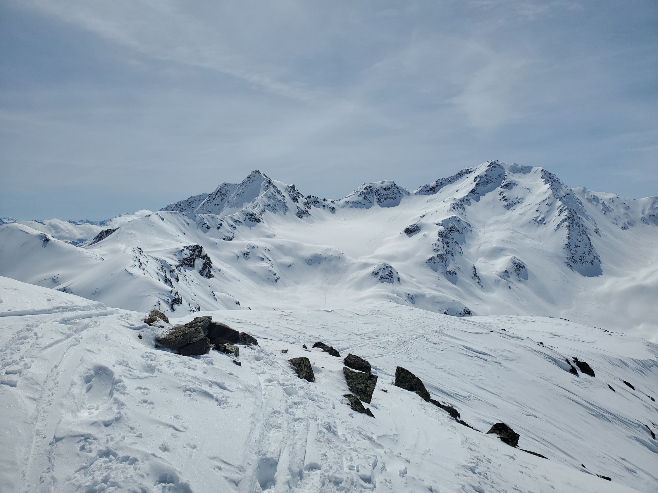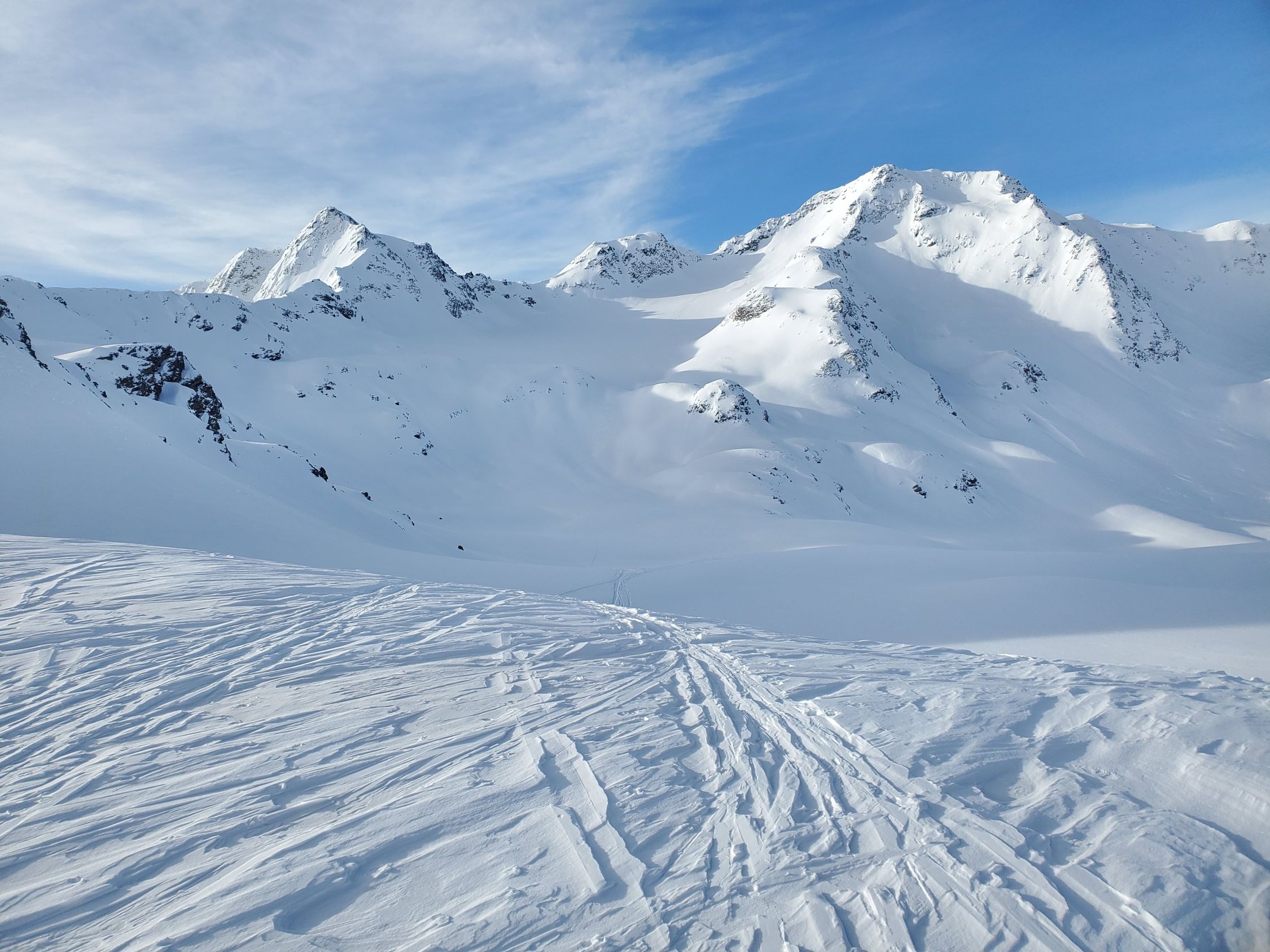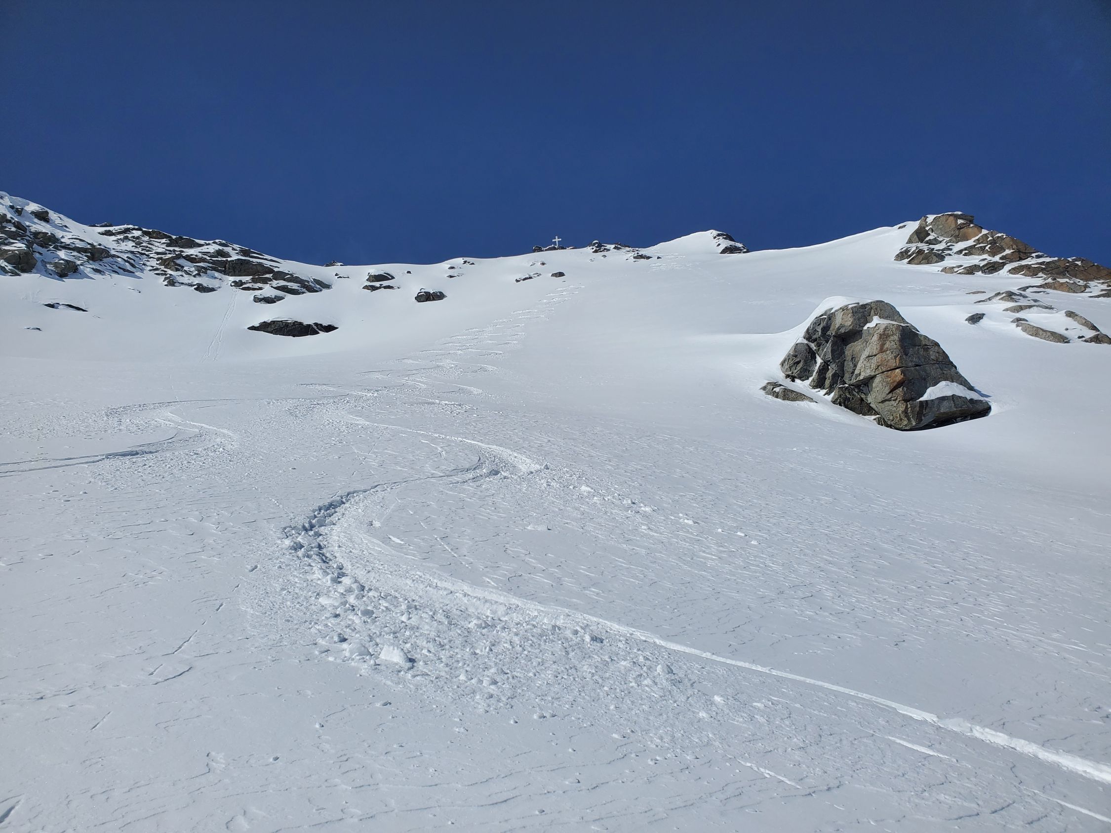 Haben die gute Schneesituation perfekt genutzt: Direktabfahrt vom Gipfel des Piz Sesvenna, dann Nordflanke der Fernerspitze, dann zweimal die Nordflanke vom Schadler abgefahren, jeweils unberührter Pulver! So perfekte Verhältnisse hat man nicht oft;