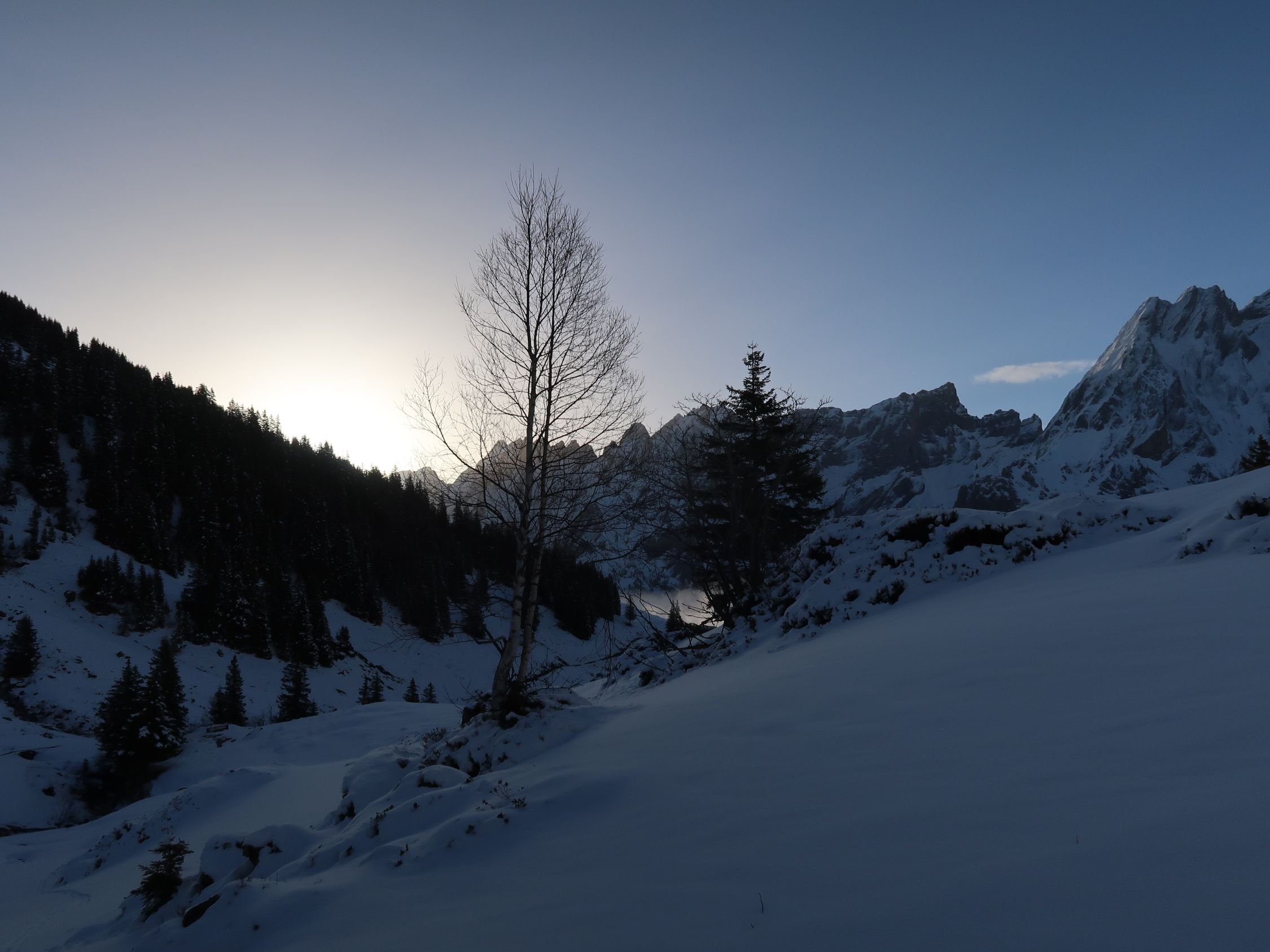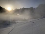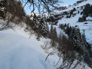 Am Morgen ab Parkplatz Aufstieg auf Neuschnee, Nachmittag alles weg am ArnifurenHang, ab 1700m dann mit Altschneeunterlage, die auch Morgen noch hält. Gipfelhang gut eingeschneit. Feuchter Pulverschnee, dann zunehmend nass und schwer (Bremsschnee!),