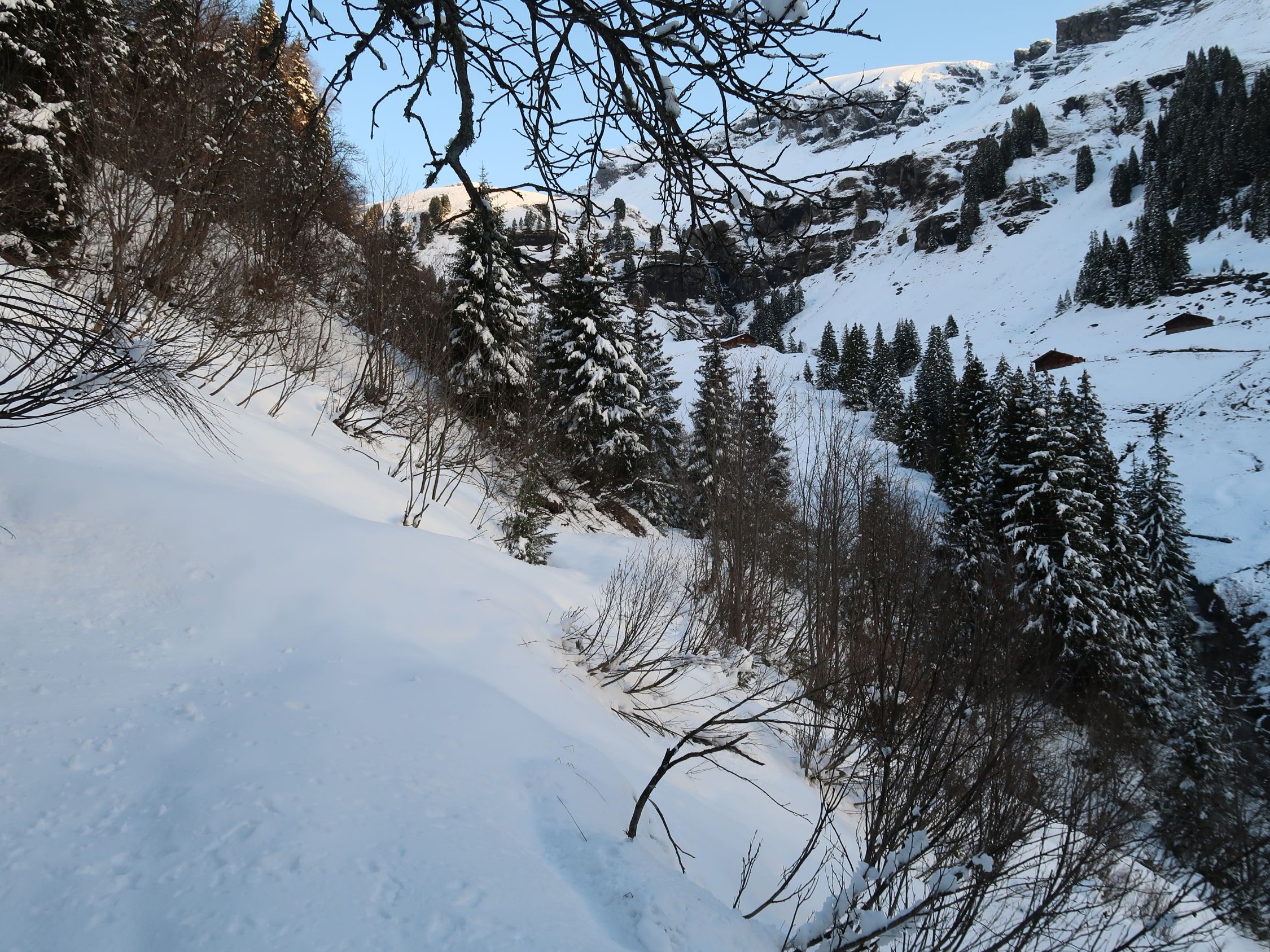 Tragstrecke ab Parkplatz den ersten Hang hinauf und im Schwandboden und vor der Schwarzwaldalp in der Abfahrt. Gibt wohl als Zwischenstufe Bruchharst oder gefriert wegen der hohen Temperaturen kaum mehr in der Nacht im unteren Teil der Tour. Gut war das Gesamterlebnis (Aussicht, Landschaft, Aufstieg, allein im Gebiet. etc)