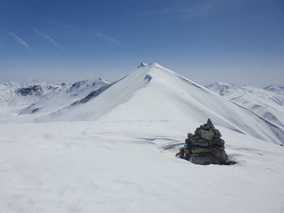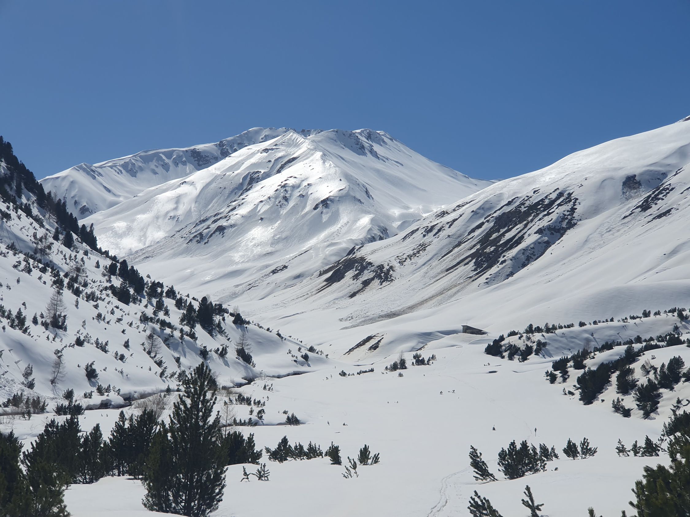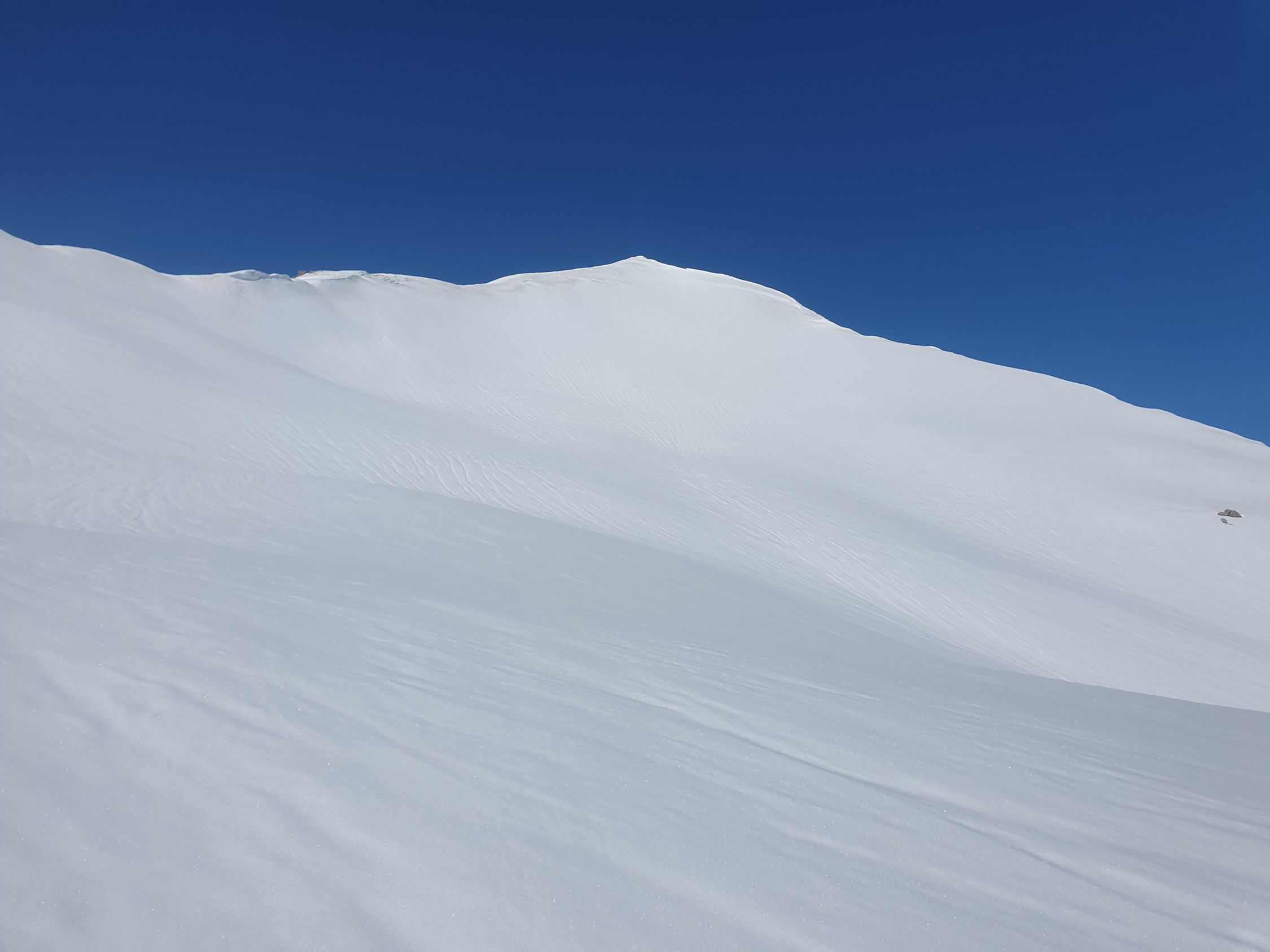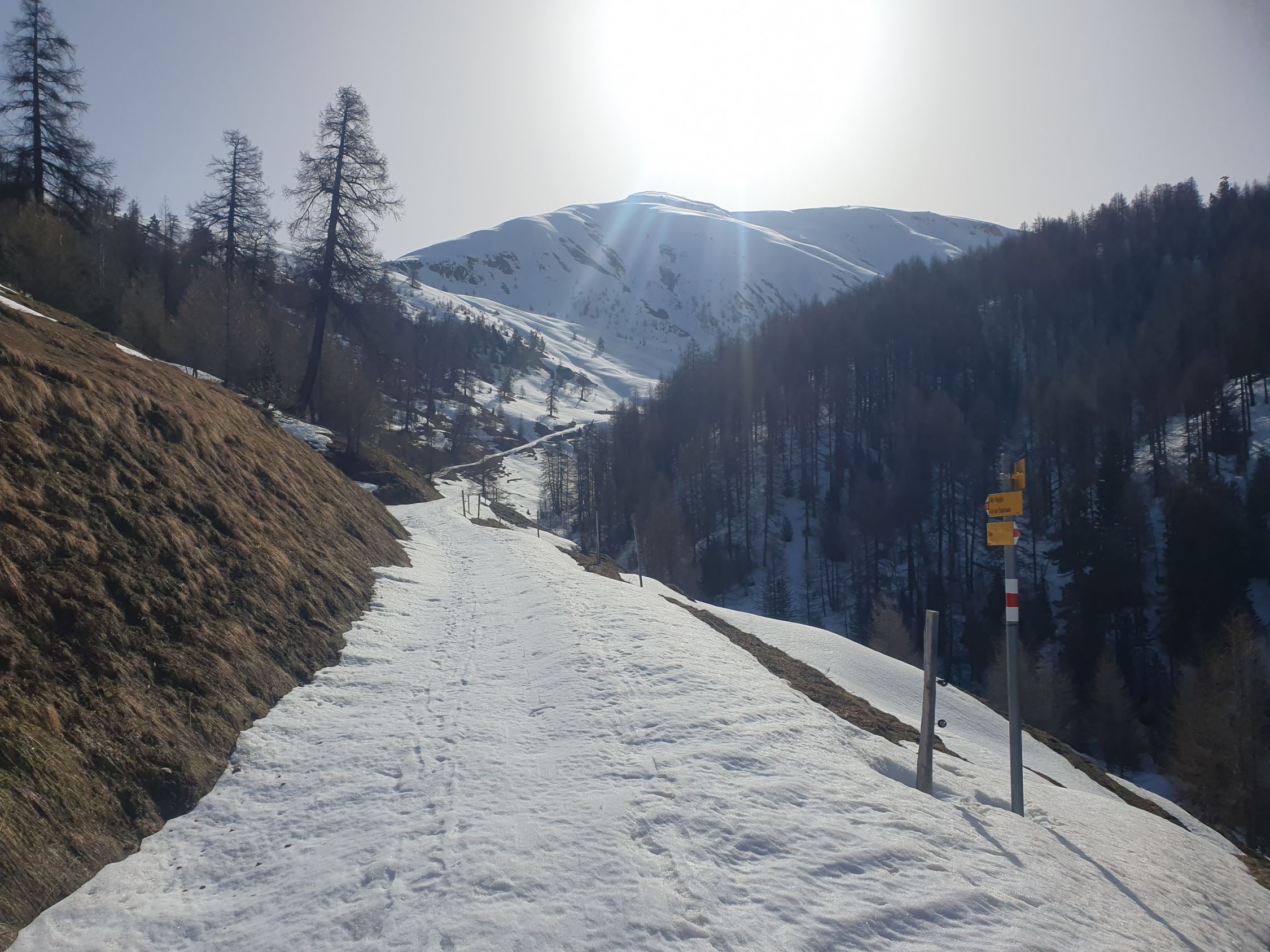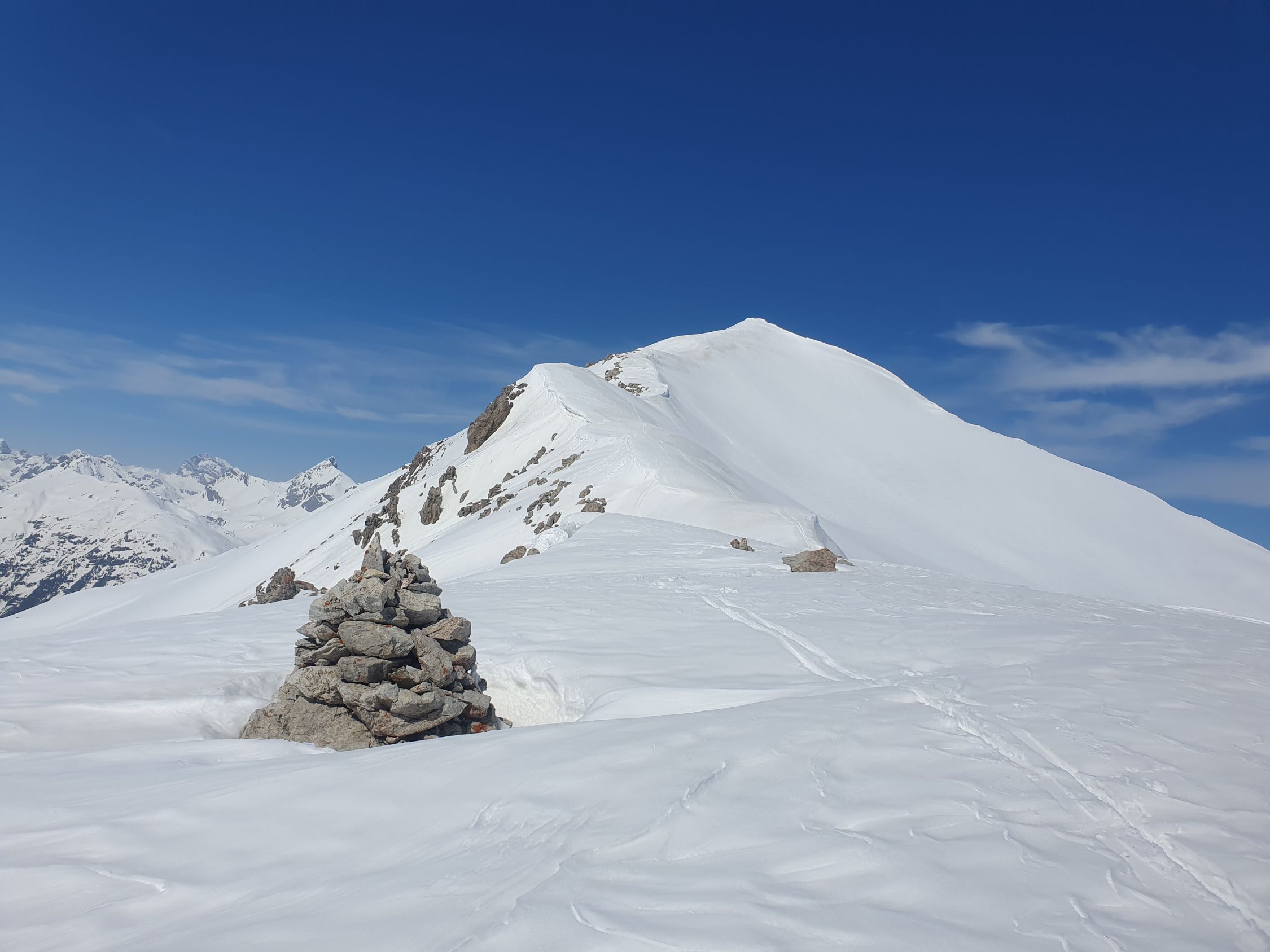 Ab Zuoz Resgia geht's auf einer pistenähnliche Schneedecke hoch in das Val d'Arpiglia. Für rutschunsichere Personen sind hier morgens Harscheisen empfehlenswert. Ab der Alp Arpiglia keine Spuren mehr gesichtet. Kurz danach im Val Peja hatte es für den Aufstieg Bruchharsch und erst im Kessel von Las Plattas war der Schnee aufgesulzt. Mir ist es ein Rätsel, warum die Skitourenroute für den Piz Mezzaun Ostgipfel in der Winterkarte auf der östlichen sonnenexponierten Flanke ausgewählt wurde. Es ist deutlich sicherer auf dem Grat hochzusteigen. Mir ist es ein noch grösseres Rätsel, warum die höchste Erhebung vom Piz Mezzaun, also P3000, nicht der Hauptgipfel sein soll? Der Hauptgipfel liegt auf P2962 tiefer. Ist aber im Winter eher mühsam zu erreichen.