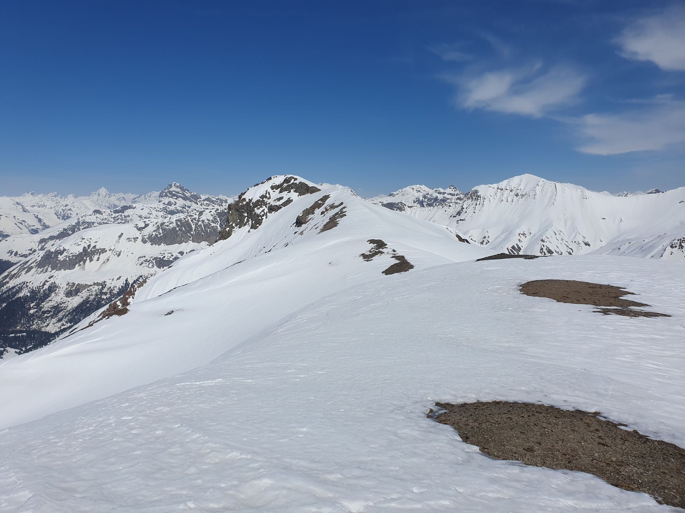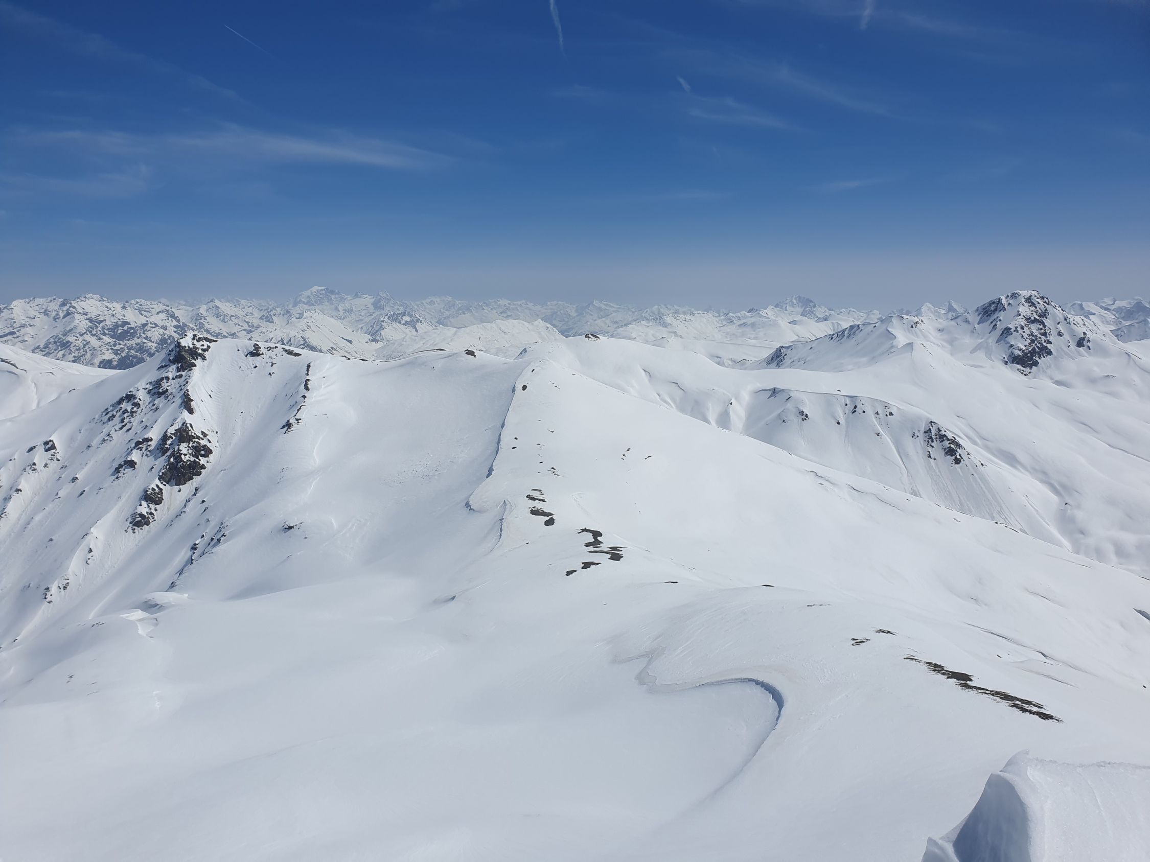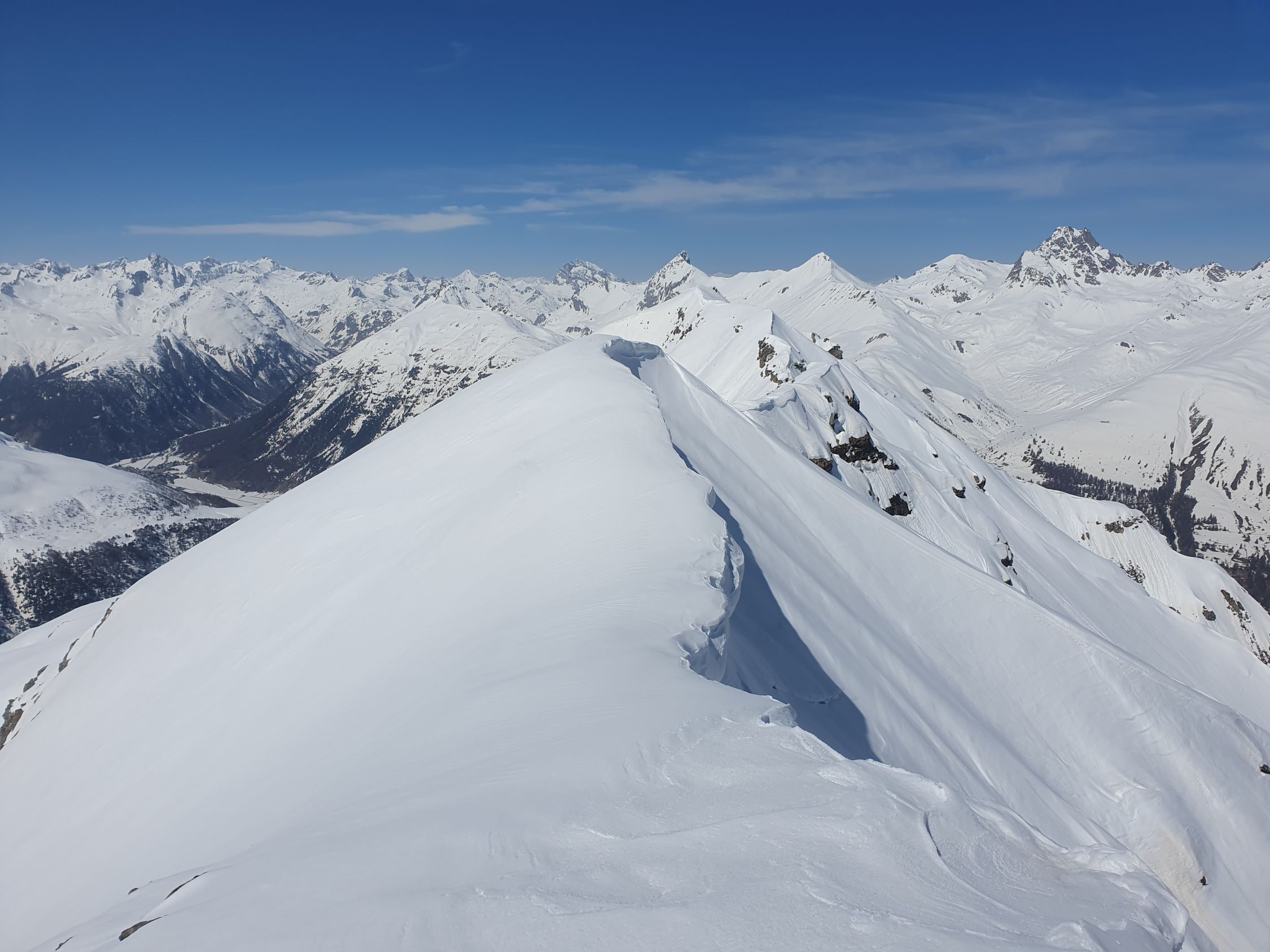 Bis hier habe ich die Felle an den Skis aus zeitgründen dran gelassen. Auf dem Grat lag guter Sulz. Bei der Fuorcla Lavirun können die Felle für alle nun definitiv eingepackt werden.