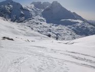 Bei der aktuellen Sonneneinstrahlung schon früh morgens im Aufstieg weich. Im oberen Drittel besser. Auch bei der Abfahrt wenig Genuss, sehr weich unten nass und bremst ohne Ende. Immerhin Fernsicht top!