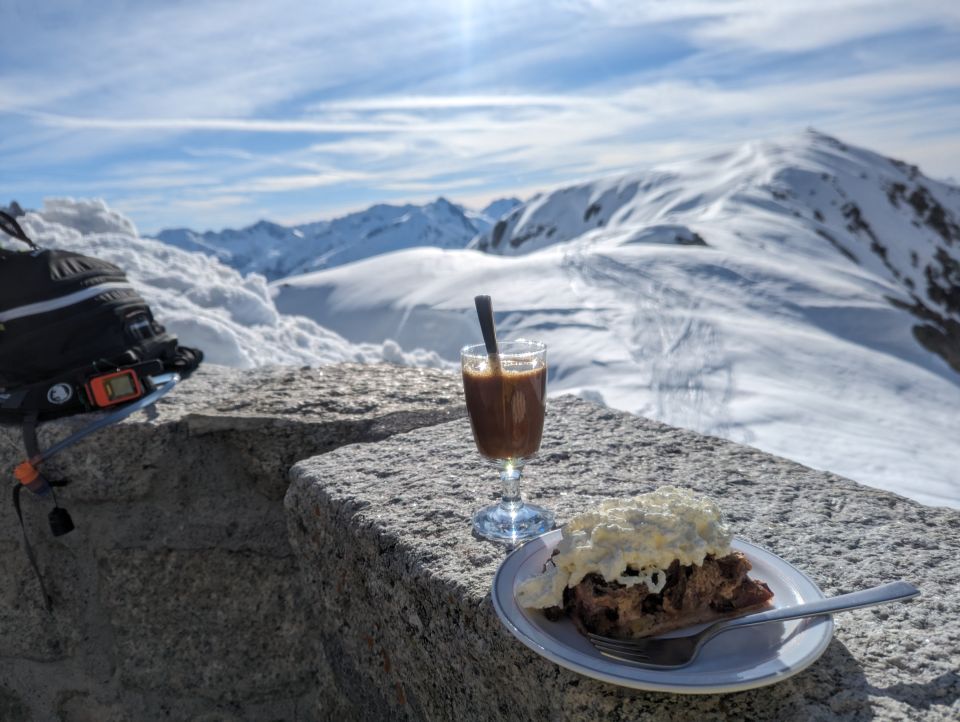 Lange Pause in der Albert-Heim Hütte mit leckerem Kuchen, Kaffe und Sonnentanken.