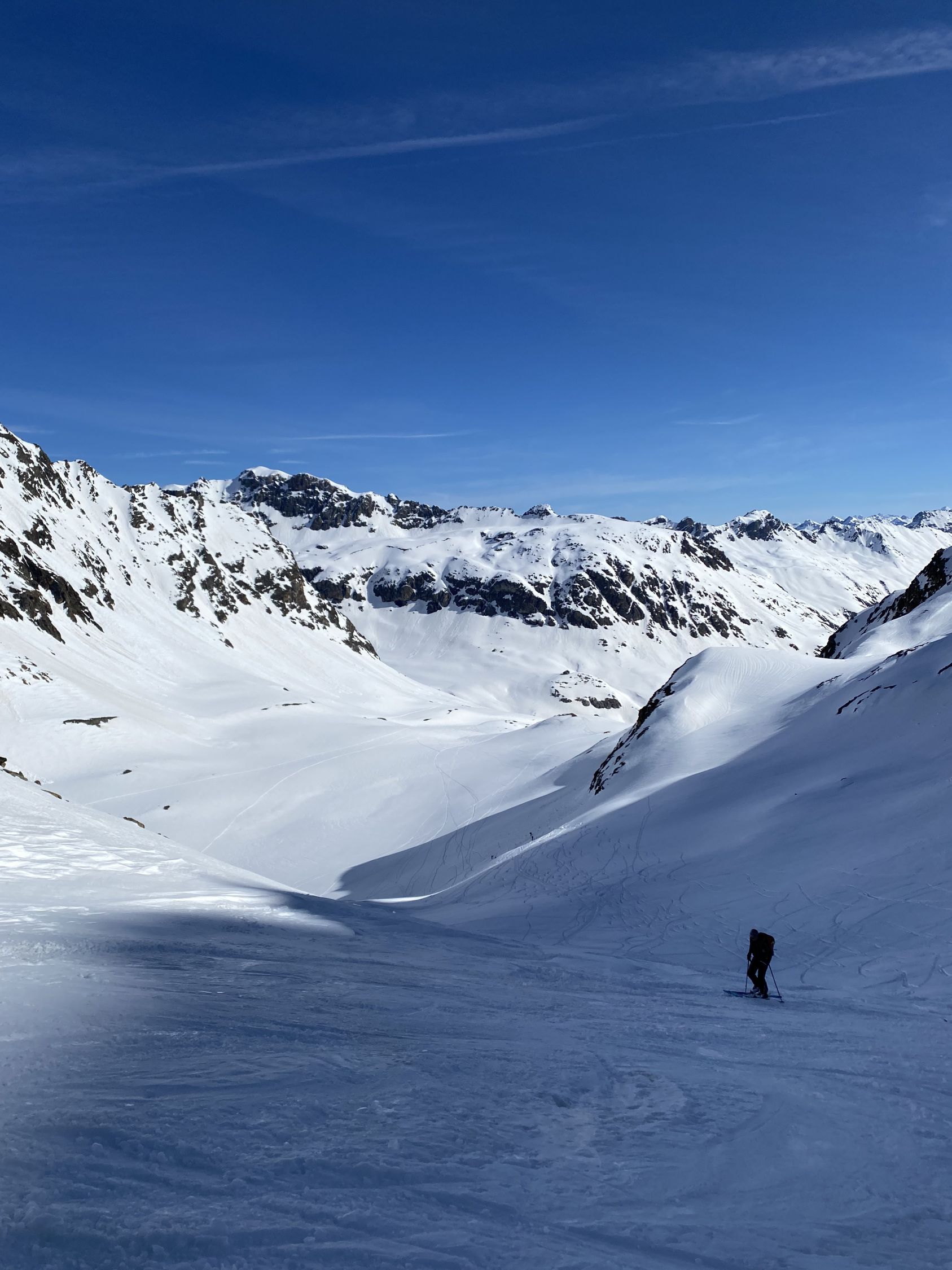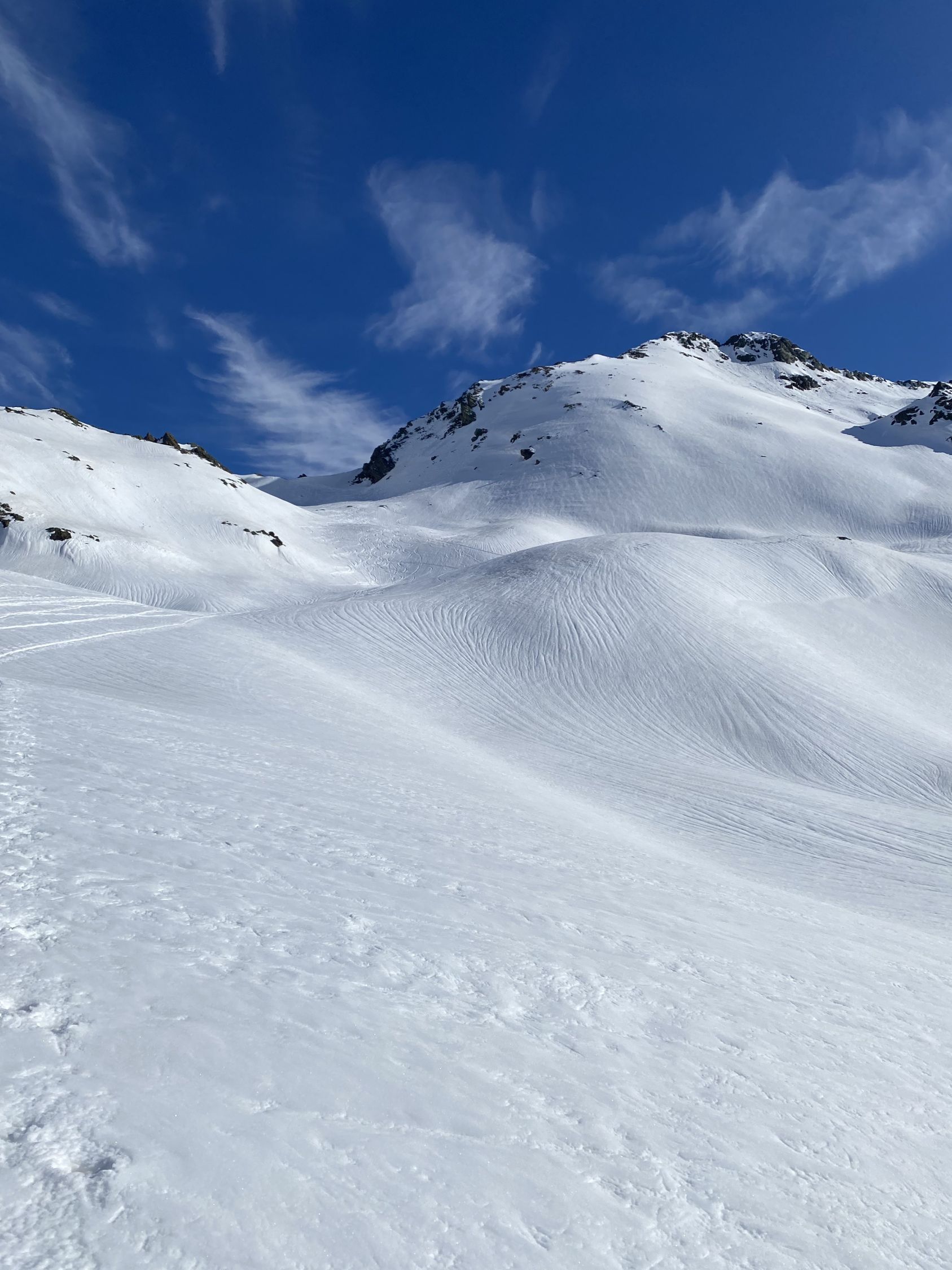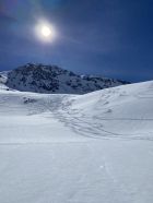 Es hat im Julier-Pass-Gebiet noch ausreichend Schnee und die Abstrahlung in der Nacht sorgte für eine kompakte harte Schneedecke ab Passstraße. Die Abfahrt mit Fellen von der Fuorcla D'Agnel mit etwas Bruchharsch/Pulver/Hartgefroren machte deutlich, dass die Nordseitigen Abfahrten im Gebiet aktuell nicht die freundvollste Wahl ist. Beim Aufstieg zur Fuorcla da flix zeigt die Sonne um 9:30 Uhr schon, dass sie ordentlich was drauf hat. Aufstieg bis zum Gipfel mit Ski (eher nicht so toll) oder Zu Fuß - beides möglich. Die Abfahrt von der Fuorcla da Flix bis auf 2.800 im Talboden bot gerade noch eine herzhafte Firnabfahrt. Von der Fuorcla D'Agnel dann Abfahrt in Richtung Corn Alv und mit kleinem weiteren Gegenanstieg hinüber zur Aufstiegspur bzw. Abfahrt von Piz Surgonda. Von dort nochmals tolle Firnhänge (2-4 cm) um 11:00 Uhr bis zum Hospiz zurück. Im Gebiet recht viel los, bei der Gipfelwahl war ich aber fast allein.