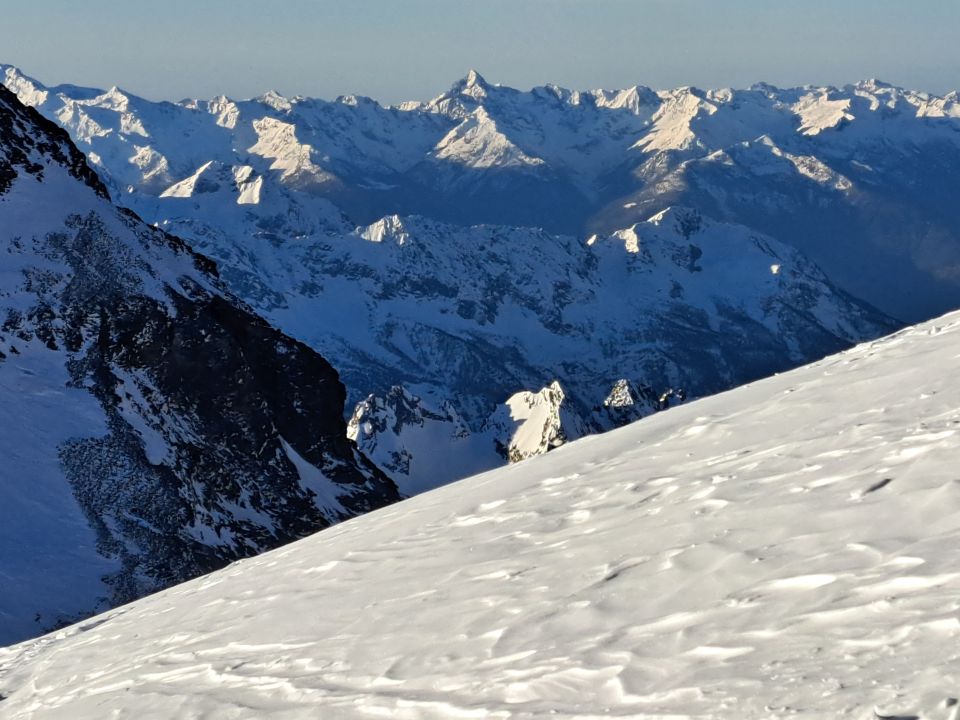 Die Gletscher sind überall sehr gut eingeschneit und daher gibt es kaum offene Spalten