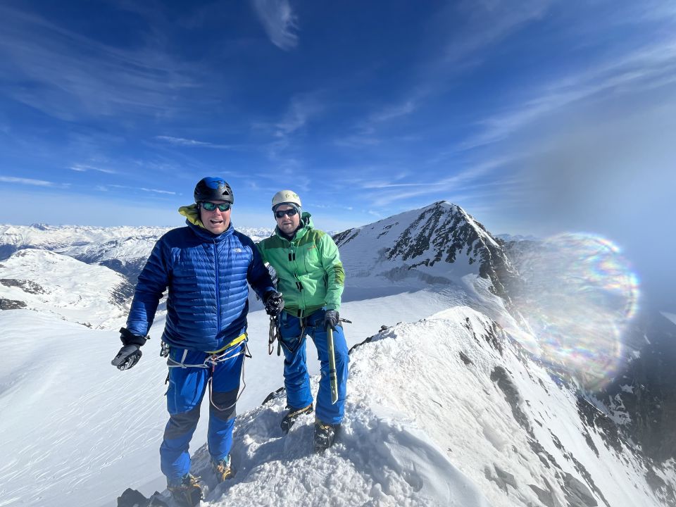 Anschlusstour nach Piz Zupo, wir sind mit Ski zum Nordgrat, Ostgrat hat uns schon etwas eisig ausgeschaut vom Zupo aus, wobei noch eine 15 Gruppe rüber ist für die Überschreitung, samt Ski, rauf scheints also noch gut zu gehen. Nordgrat und Flanke haben noch guten Presspulver, Tritte Gut, auch oben am Fels. Am Gipfel um 10:00
