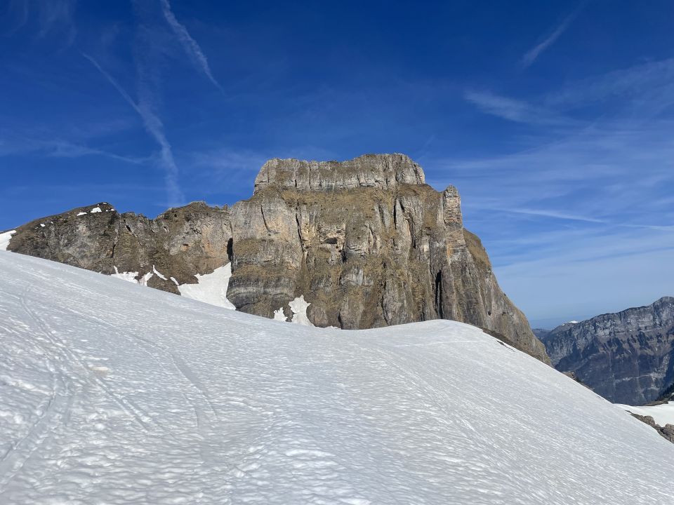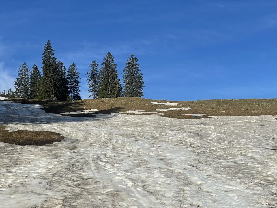 Start um 08.00 ab Tannenbodenalp, gerade noch genug von der Piste übrig. Die Tour begann in einem Krokusmeer und ich sah zwei spielende Gemsen, da war schon alles gut. Aufstieg bis knapp unter den Maschgenkamm, dann unter dem Ziger durch traversiert, das ging heute bei dem weichen Schnee gut, bei hartem Firn wäre das nicht so einfach gewesen. Weiterer Aufstieg zum Leist ohne Probleme. Schöne Rast bei guter Fernsicht und warmen Temperaturen. Dann Abfahrt bis Grueb und Wiederaufstieg zum Maschgenkamm, leider (aus Tourengehers Sicht) ist die Alpstrasse bis Maschgenkamm diese Woche teilgeräumt worden, sieht nicht soo toll aus und stört beim Aufstieg. Blieb aber der einzige Wermutstropfen. Weitere Abfahrt den Pisten nach. Schnee durchgehend nass, oben sowas wie tiefer Sulz, unten der alte Kunstschnee, der war bestens fahrbar.
