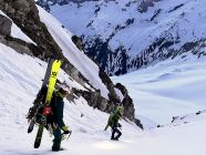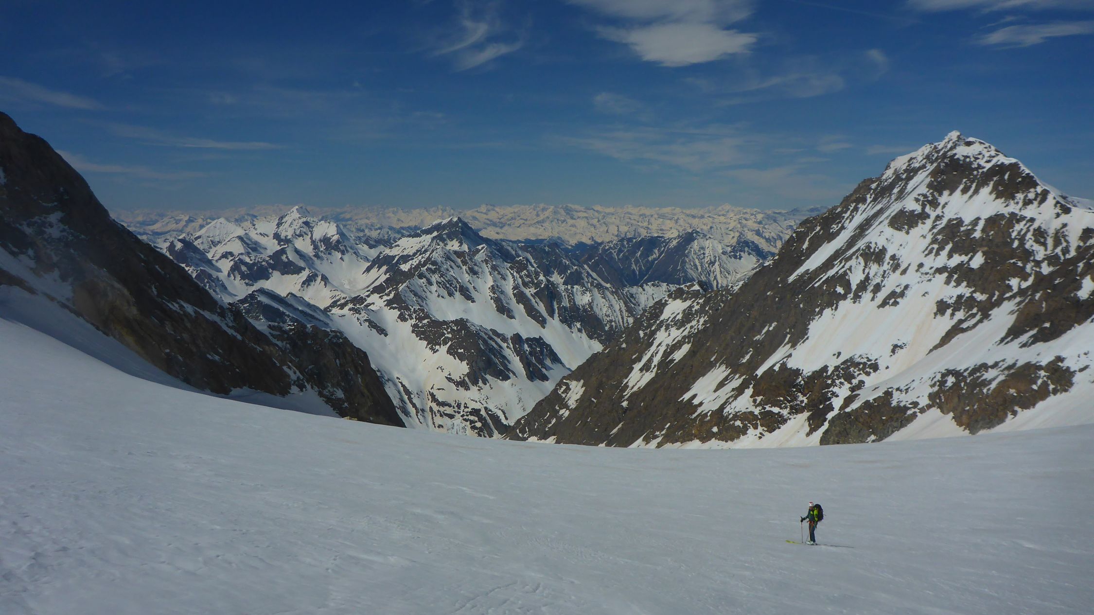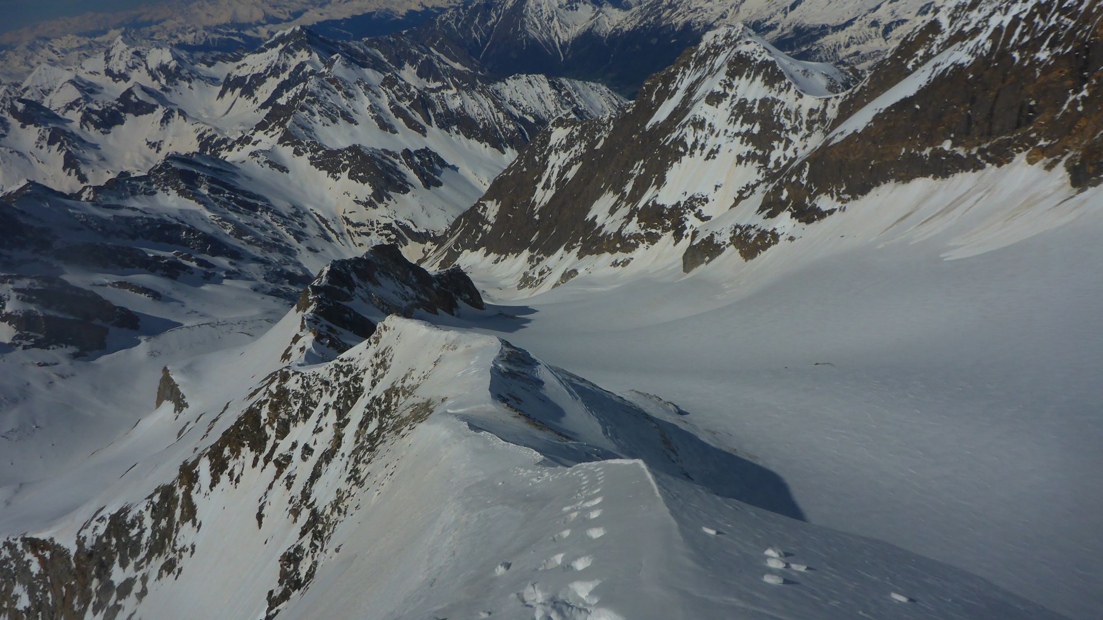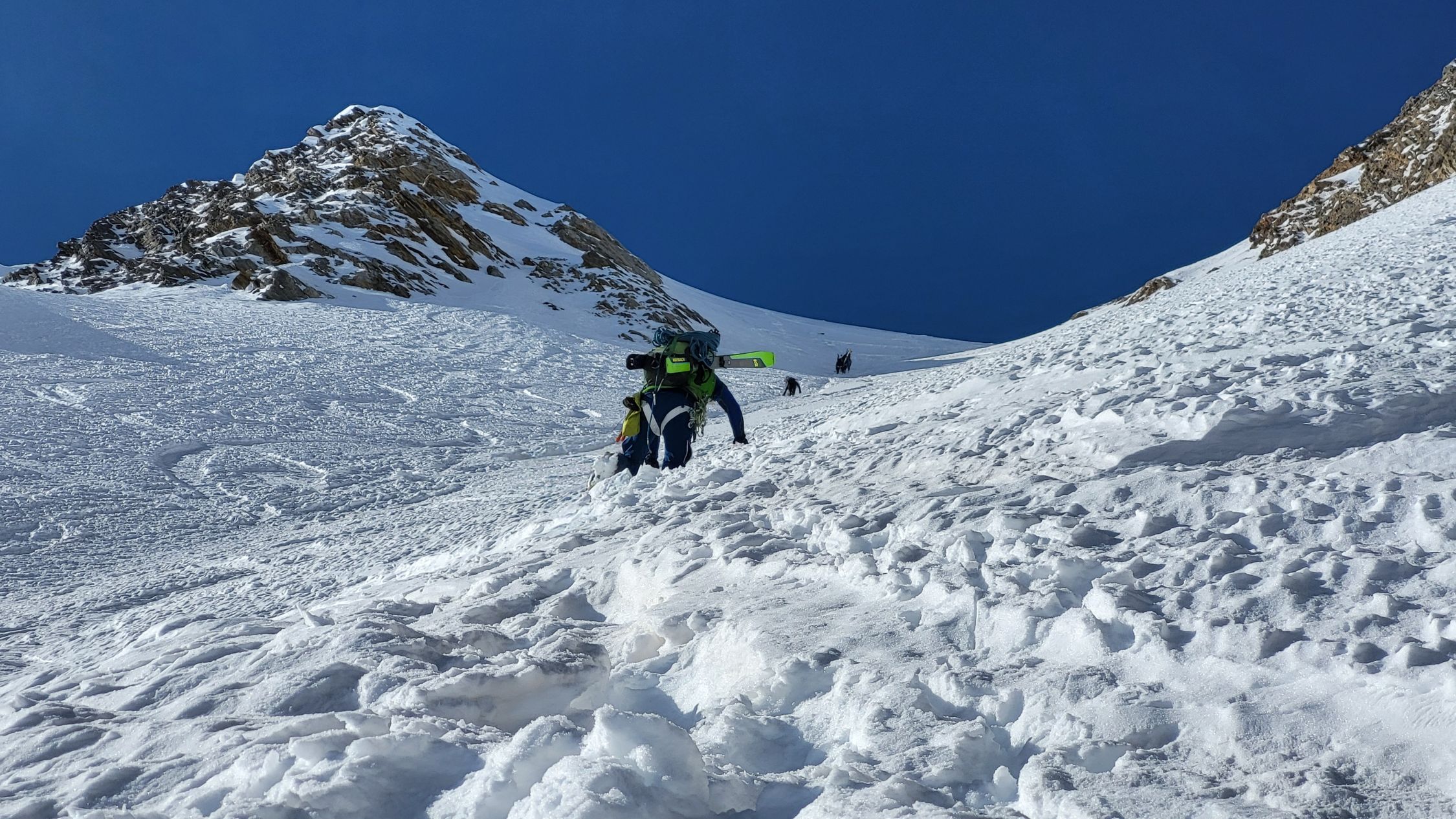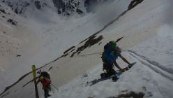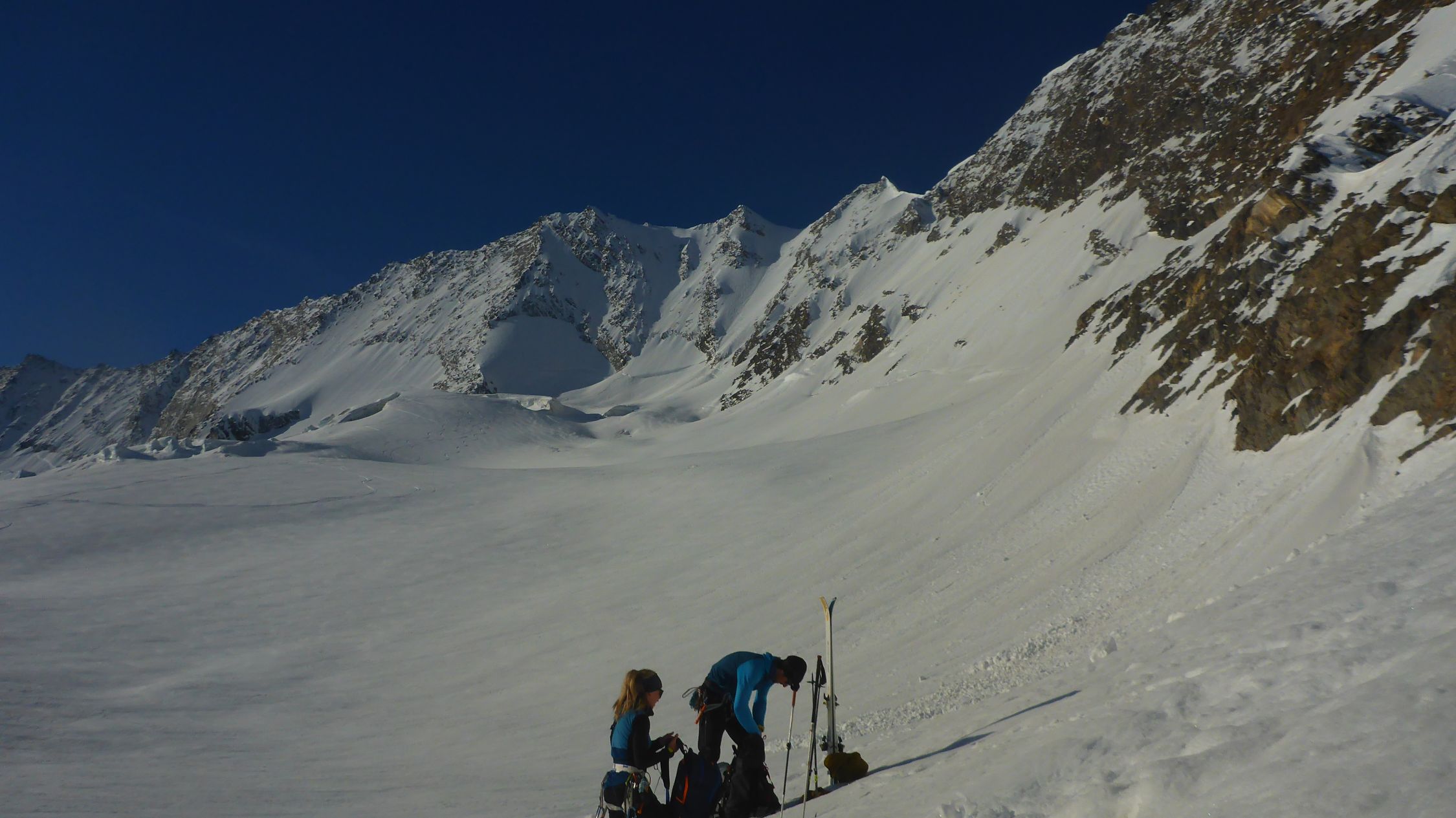 einfach ein Traum, bester Stapfschnee in der Nordwand, Randkluft sehr gut zu überwinden, gut angebunden und keine Wächte, Wurde auch von 2 Personen mit Ski abgefahren. Ätzend dann im Abstiege die letzte Aufschwung zur Umgehung der talseitigen Steilstufe (WInterroute)