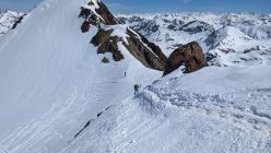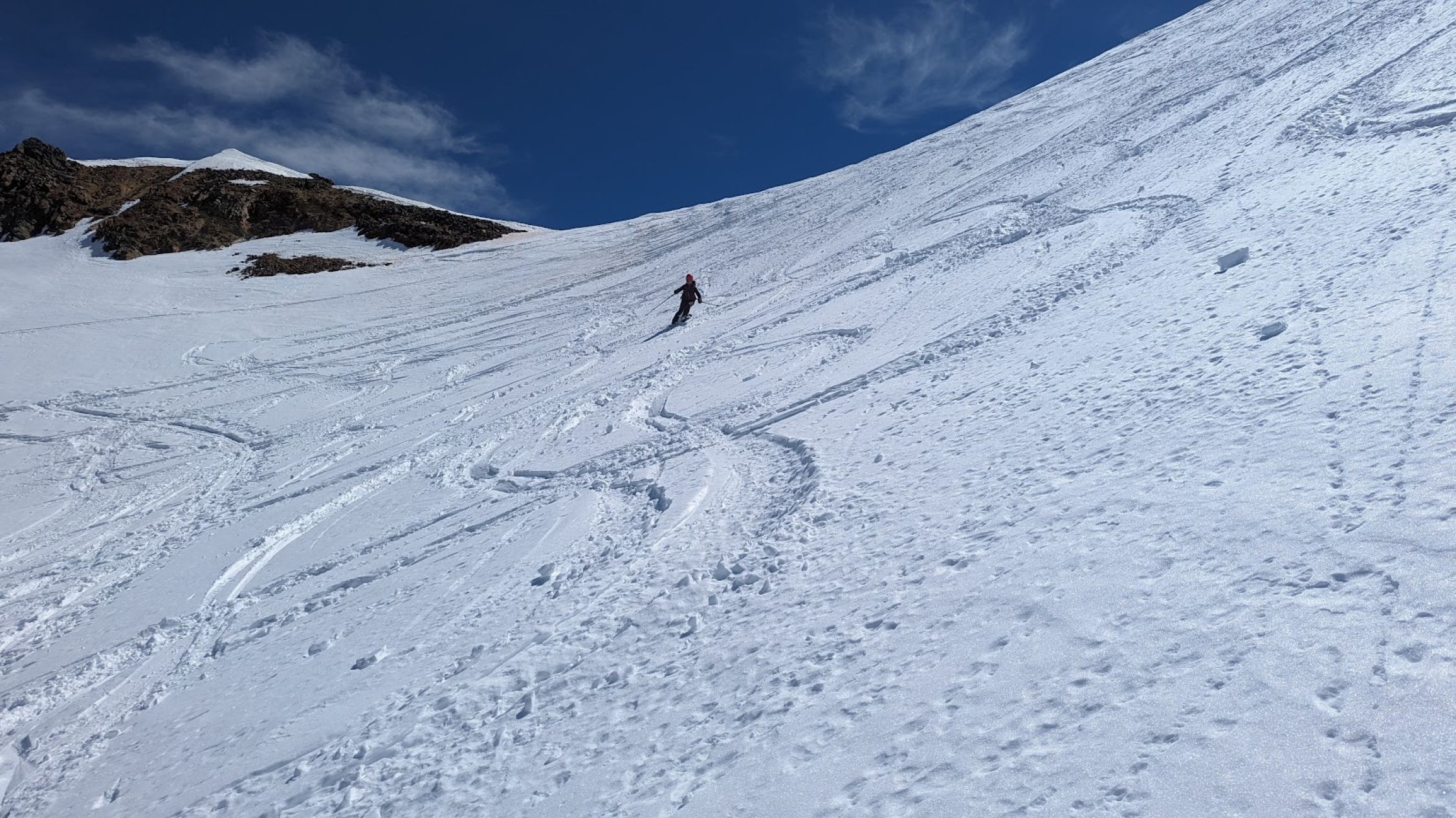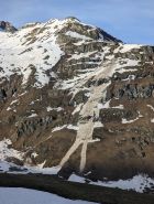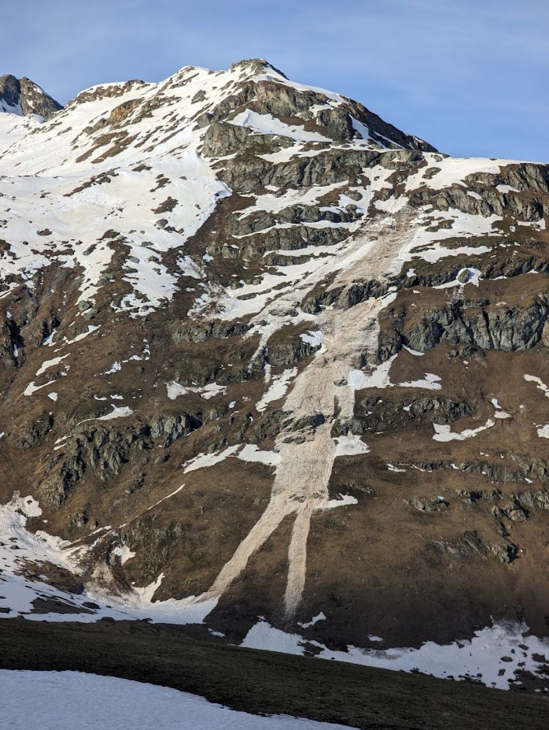 Am Sonntag unterwegs gewesen vom Julierpass zum Tschima da Flix mit Abfahrt vorbei an der Jenatschhütte und Gegenaufstieg über Fuorcla da Flix zurück zum Julierpass. Die Schneebedingungen waren gut, allerdings an den Vortagen einige Nassschneelawinen von steilen Hängen im Val d´Agnel und im Umfeld (s. Bild).