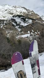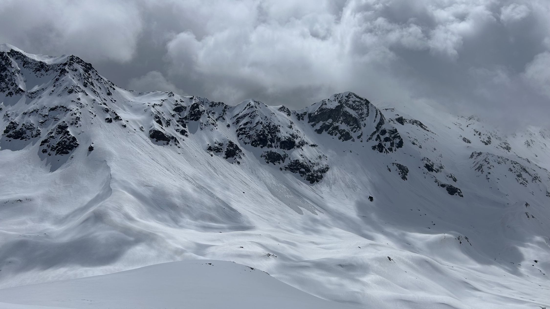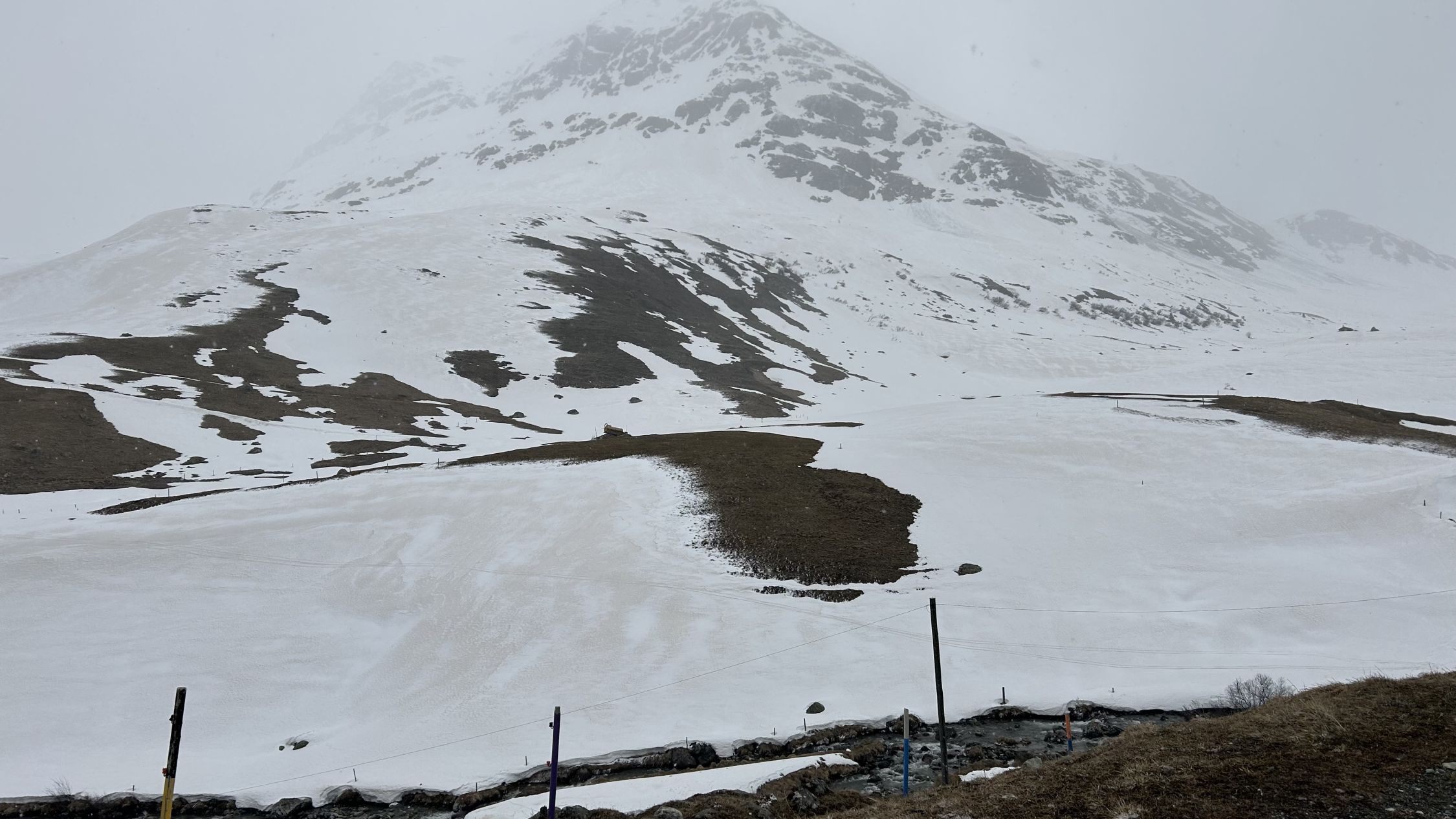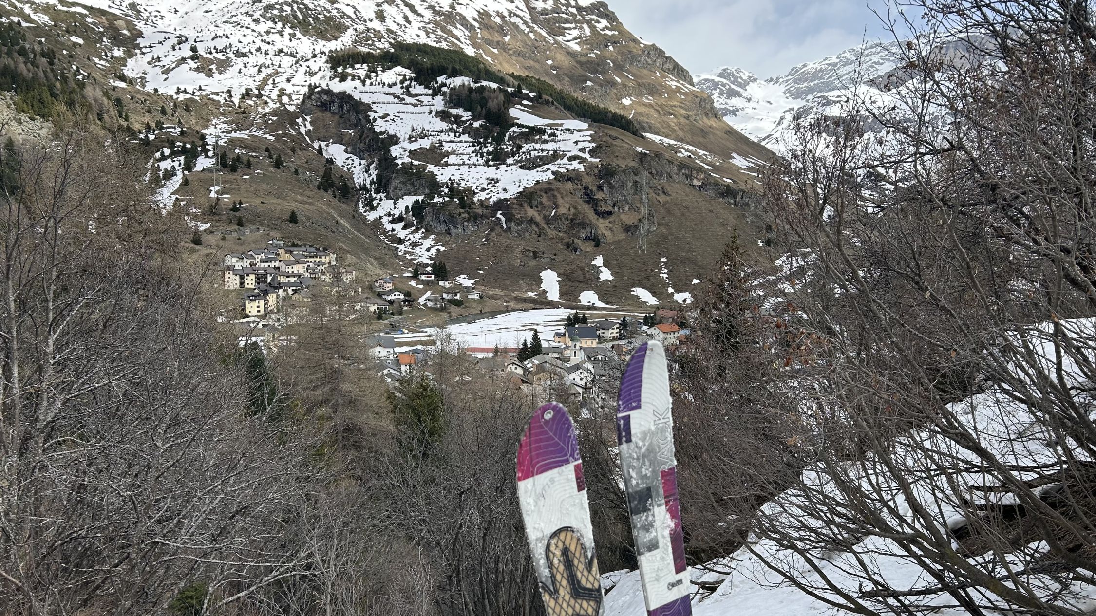 Durchgehende Schneedecke von Skilift Bivio bis zum Gipfel. Wetter heute alles von Nebel, Sonnenschein, Sturm und Schnee, waren alleine auf dem Gipfel. Schnee bei der Abfahr bis unten gefroren.