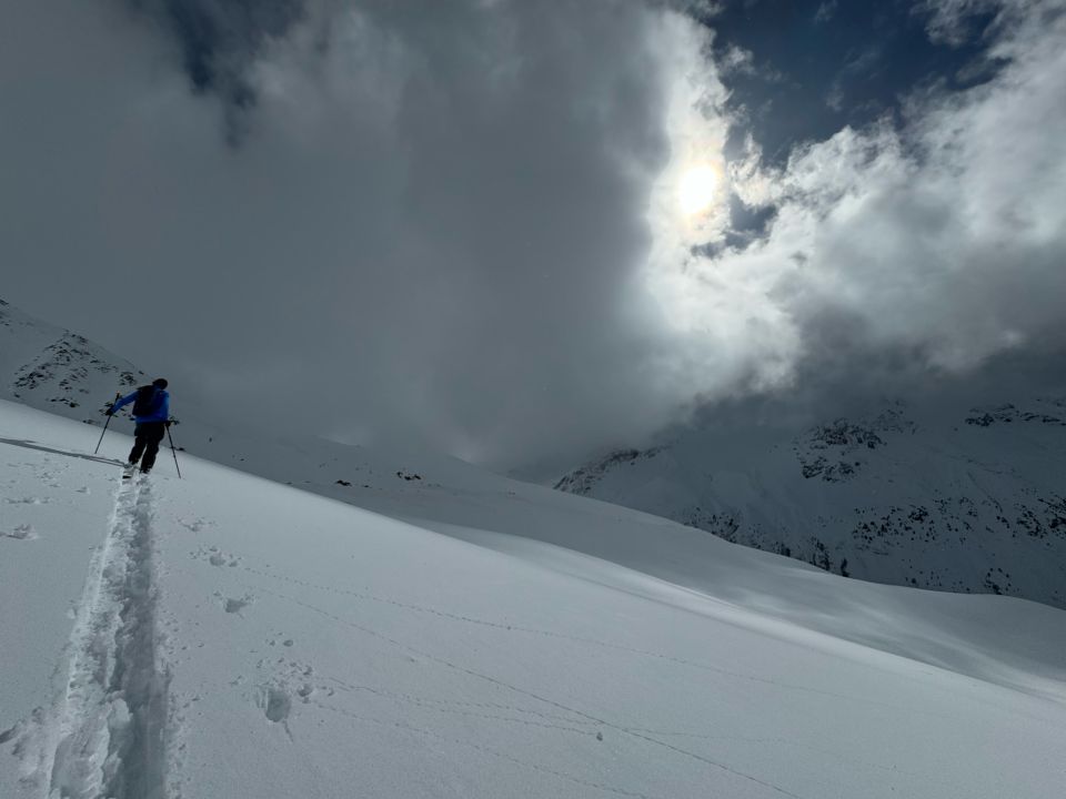 Kurz vorm Skidepot die letzten 15-20hm abgeblasen, sonst perfekte Bedingungen, kein Triebschnee.