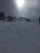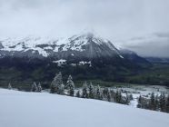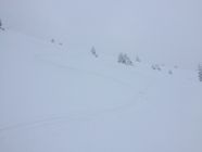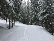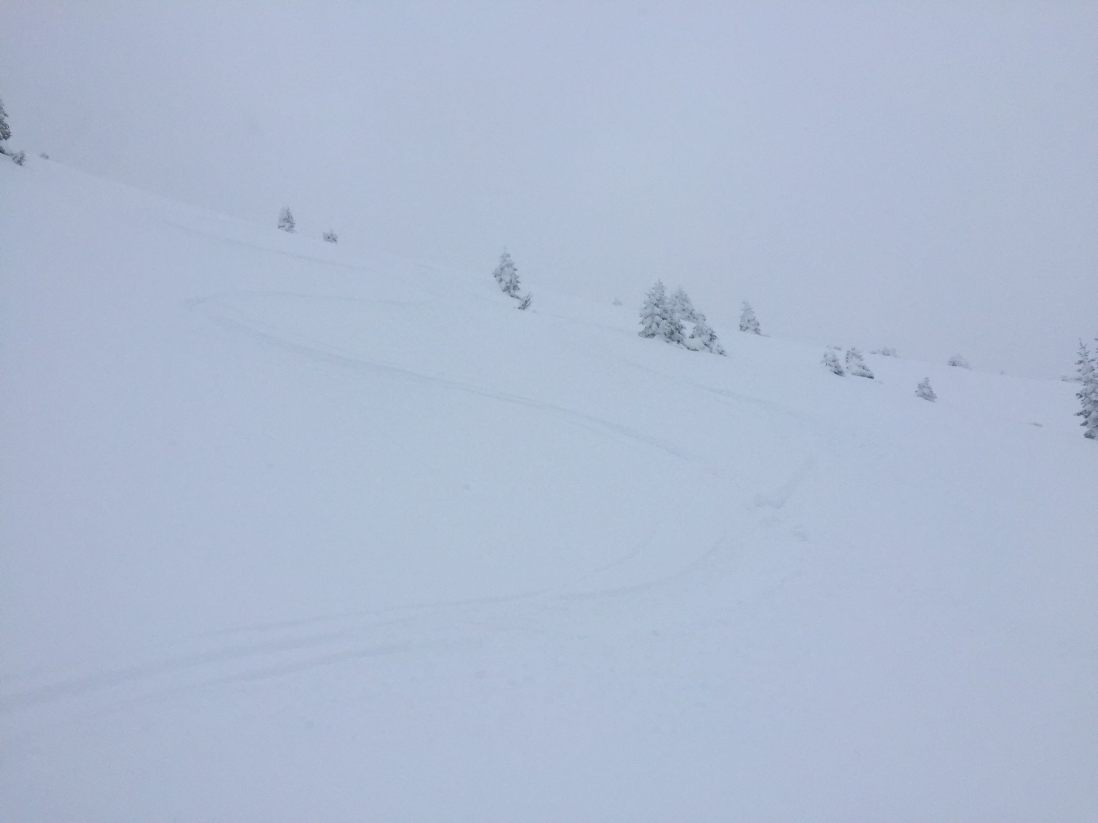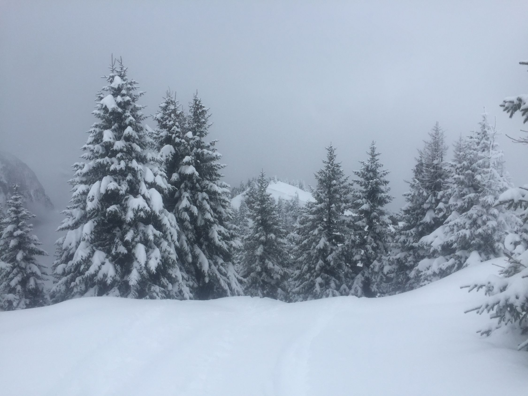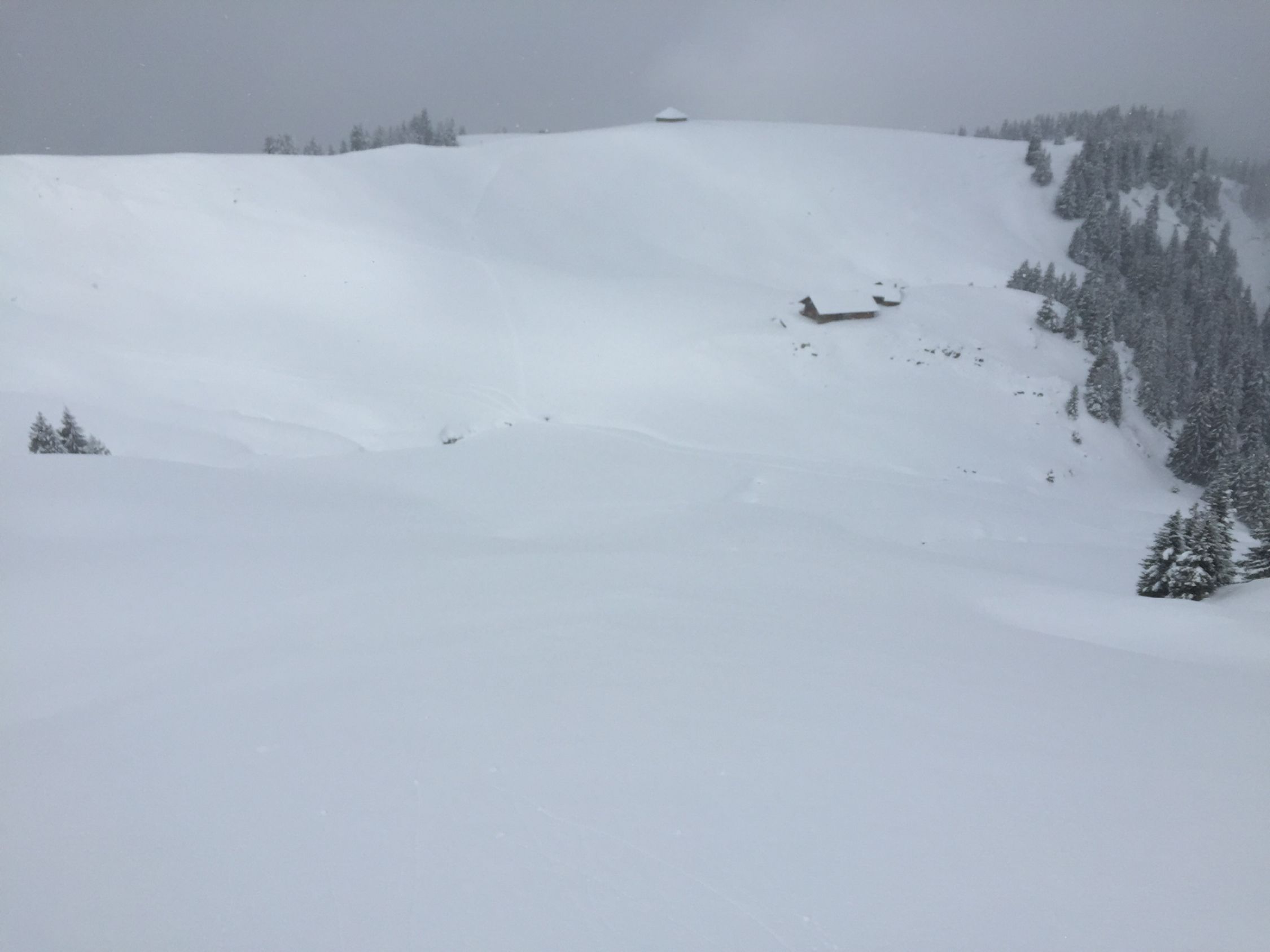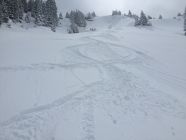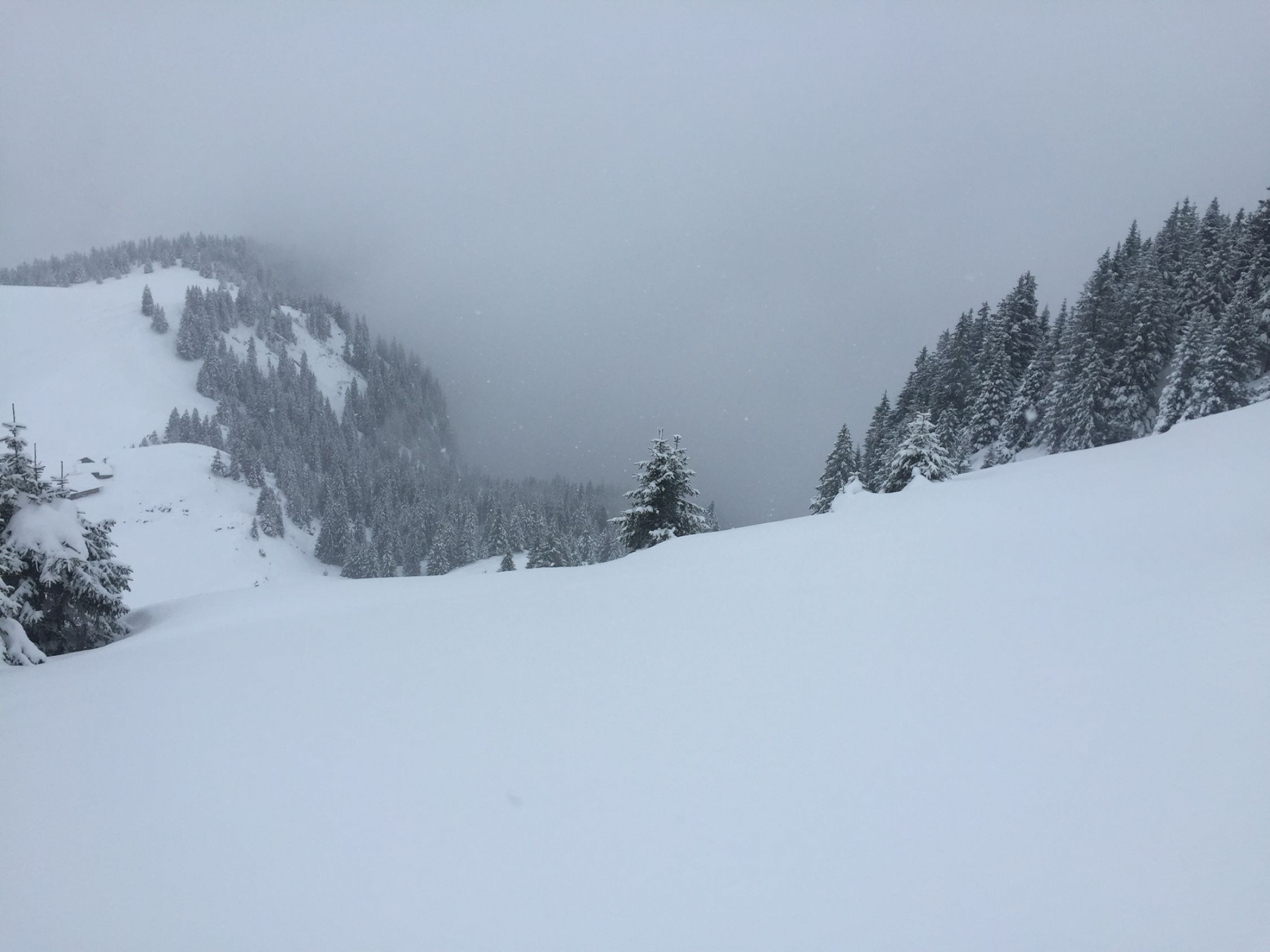 start -3 um 7.30. 30 cm feuchter Pulver in Geissboden. Über Skipiste hoch. Im Wald Forstweg wieder gut eingeschneit. Ab Forsthaus 50 cm Neuschnee der letzten Tage. 8.30 leichter Schneefall ohne Wind. Bei mässigem Schneefall leicht im Nebel obsi . Bald mal gegen 70 cm Schnee. Die Schicht die gestern an der Sonne und vom Licht leicht Nass ist mit 20 cm pow eingedeckt und konserviert worden. Trotzdem sehr schön zum fahren! Vom Wetter her hatten wir Glück, den im Oberen Teil drückte plötzlich die Sonne durch. Gipfelhang direkt mit viel Neuschnee! Beim Forsthaus Gipfelrast nachgeholt am trockenen. Jetzt kam die Front so richtig! Gut eingepackt die Forststrasse runter bis oberhalb Skilift. Die Skipiste ohne Feindkontakt runter bis Geissboden.
