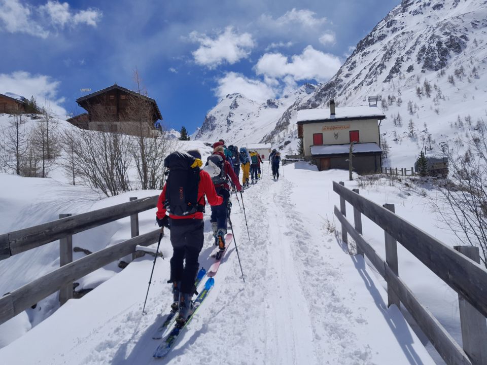 Das Gebiet ist noch bestens eingeschneit, die Tour dürfte noch lange machbar sein. Da es aber auf dem Alphubeljoch sehr kalt, windig und bewölkt war, haben wir uns mit dem Feekopf zufrieden geben müssen. Die Abfahrt über den Mellichgletscher war gut zum Fahren: Oft Pulver, manchmal hart und selten deckelig. Bis Eggstadel (noch) ohne Unterbruch.